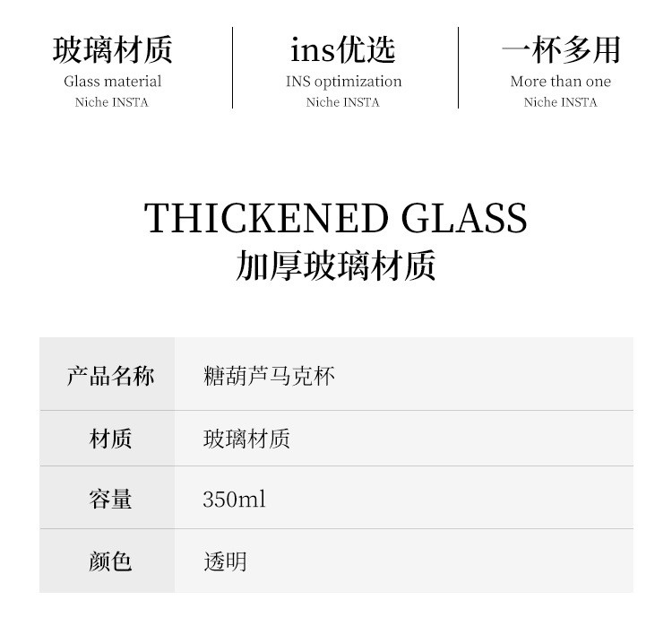 ins风福禄胖嘟嘟玻璃杯糖葫芦手把马克杯牛奶拿铁咖啡杯水杯杯子