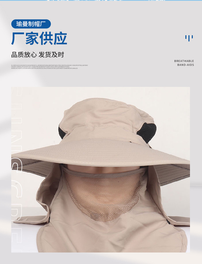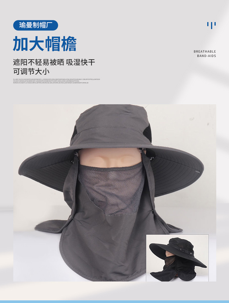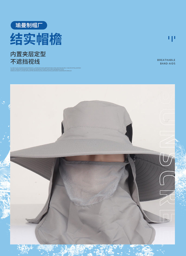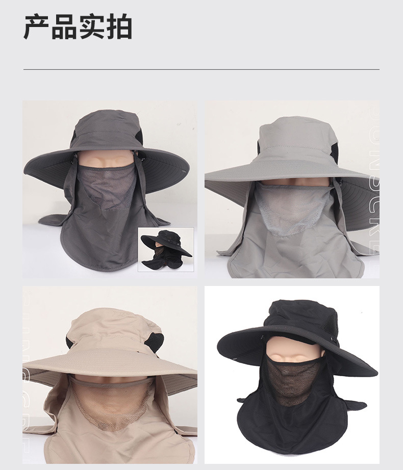 渔夫帽子男遮阳帽夏季户外速干防晒帽钓鱼透气大披肩太阳帽遮脸帽