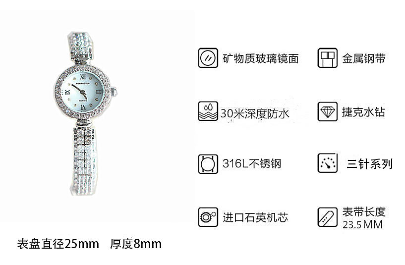 厂家供应新款百搭正品女士手表小巧满天星镶钻石英防水时尚潮腕表