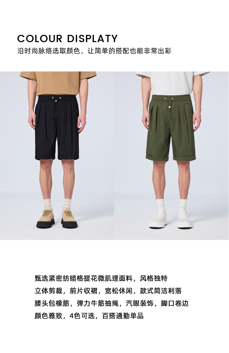 墨麦客男装肌理感五分裤男2023夏季新款松紧腰男士休闲短裤90570