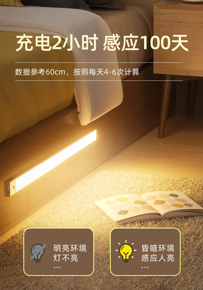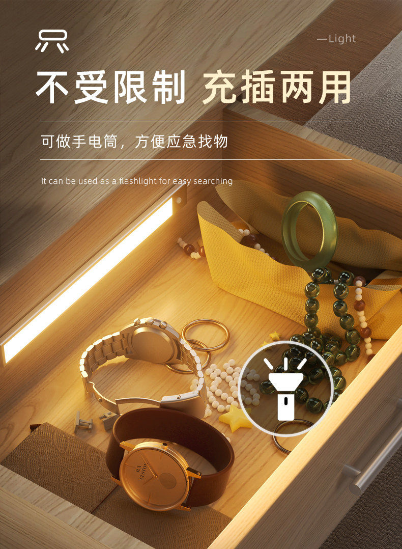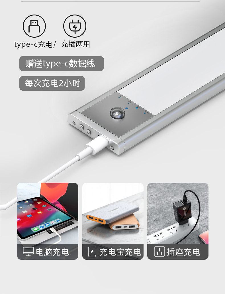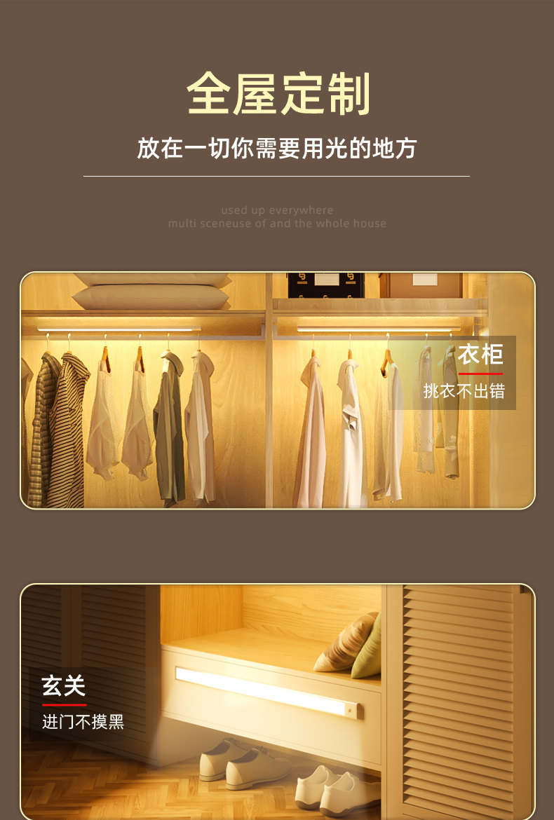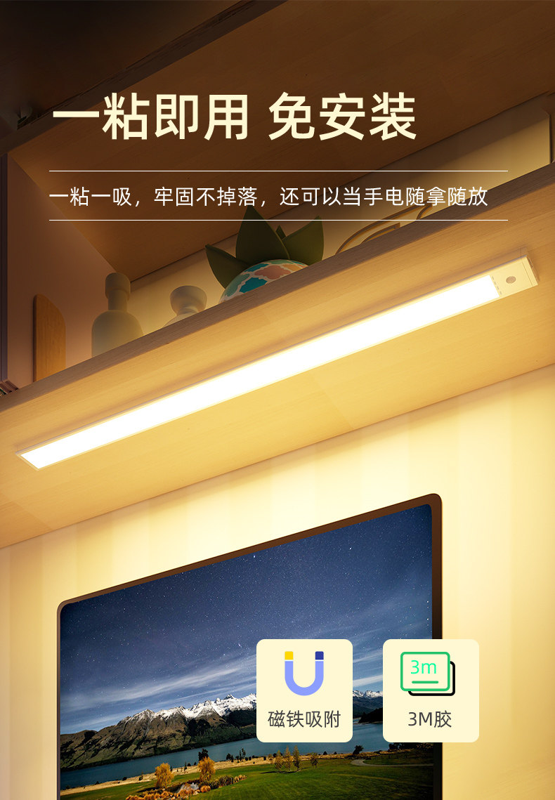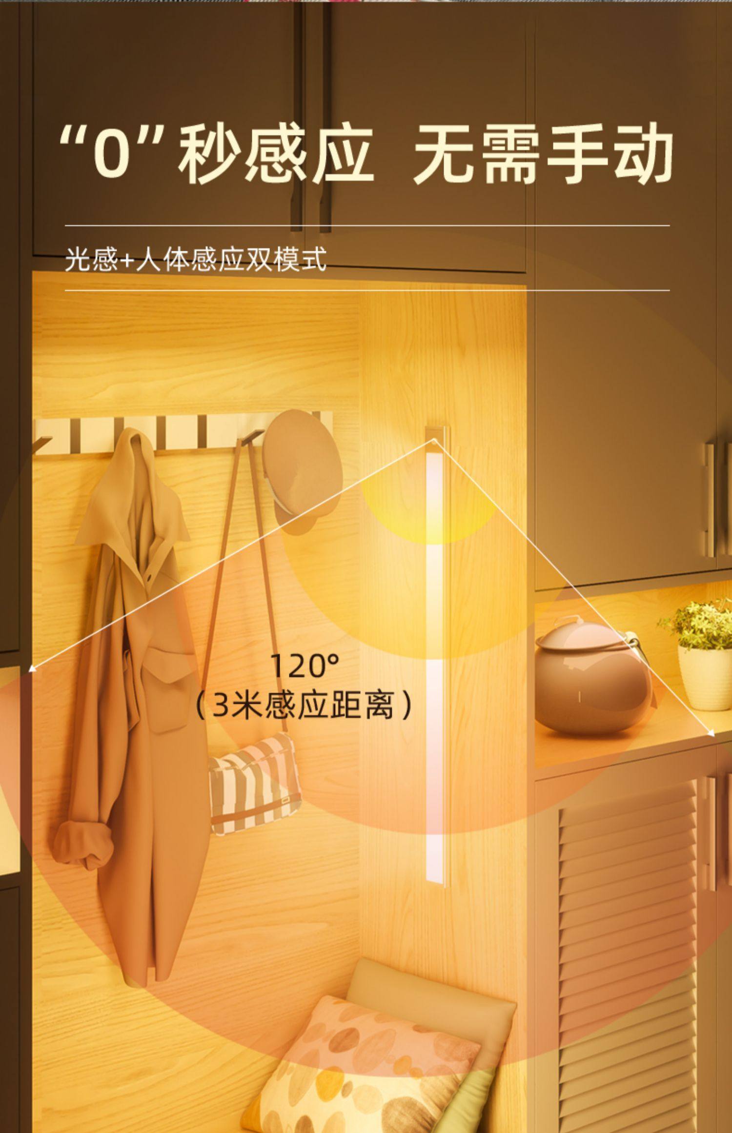 感应灯充电式灯条灯带无线自粘led衣柜灯橱柜玄关智能人体声控长