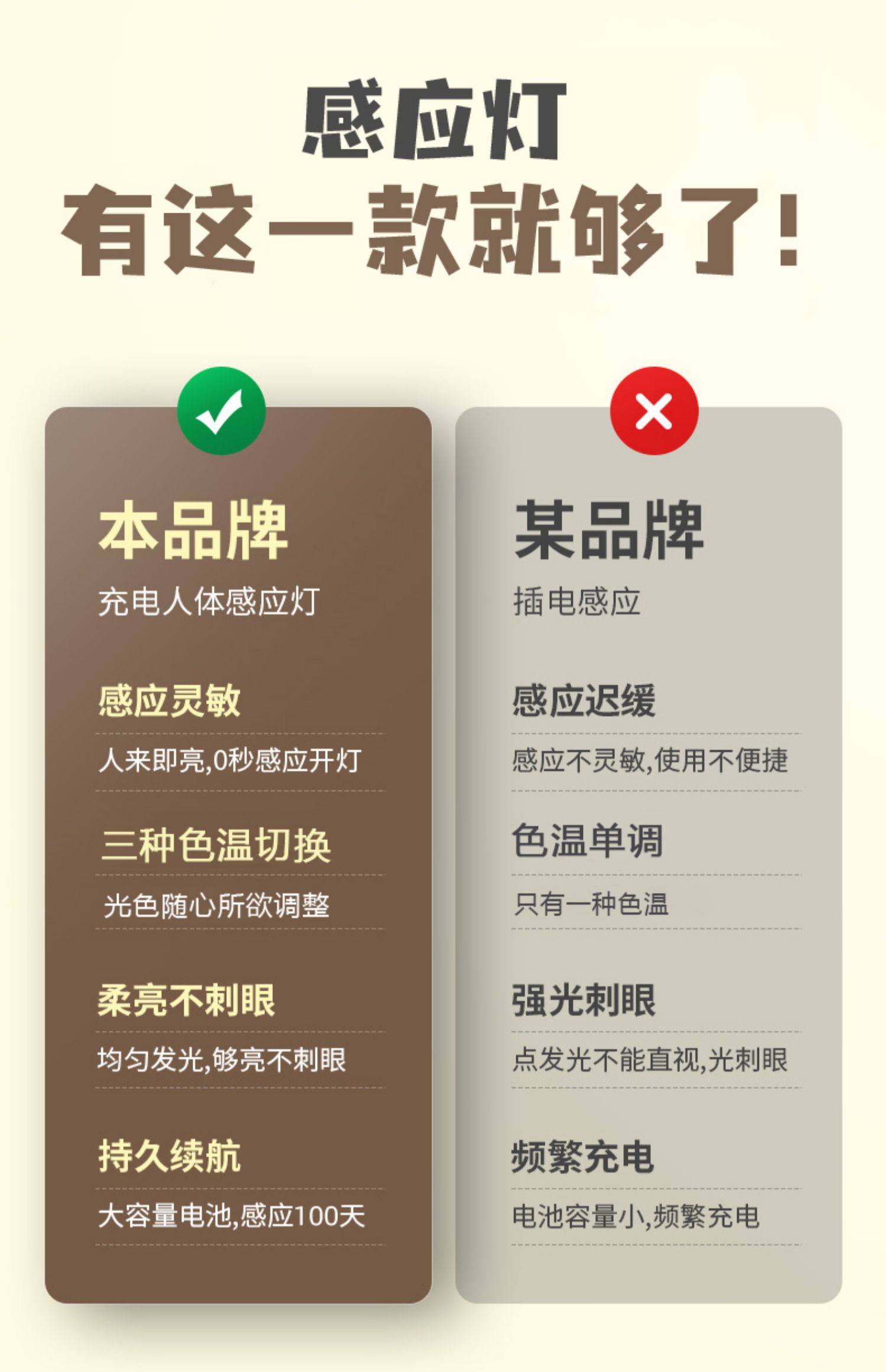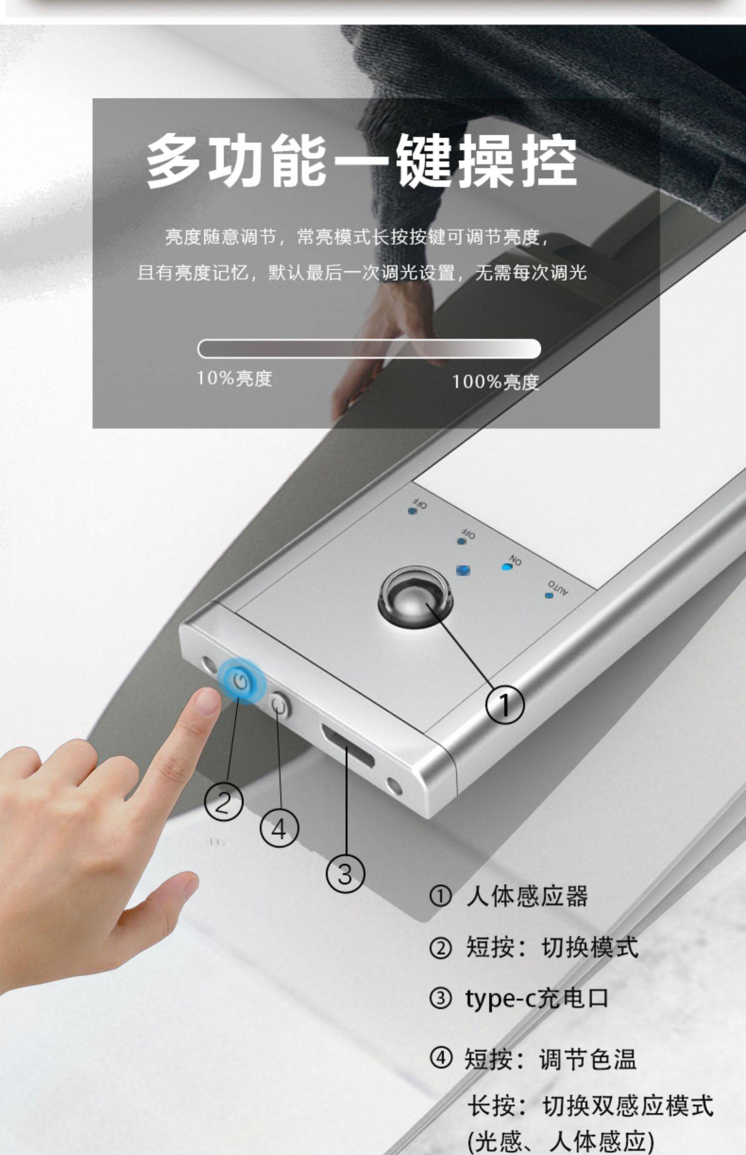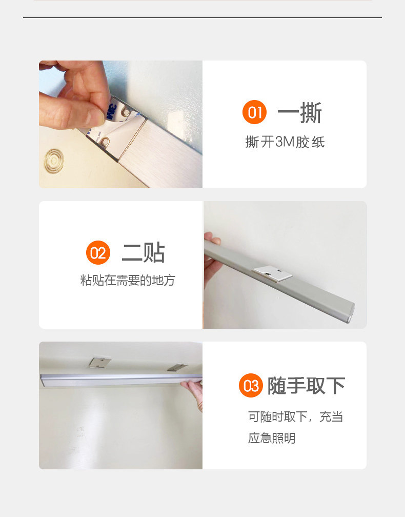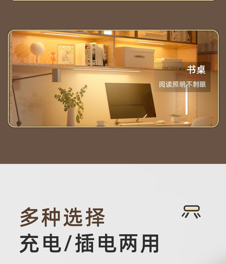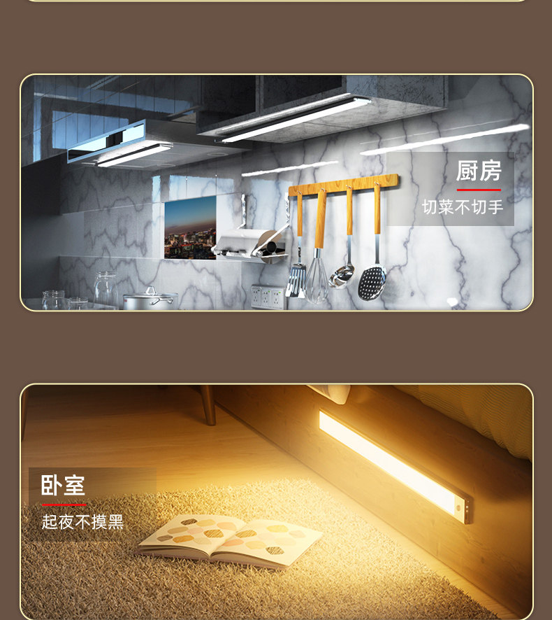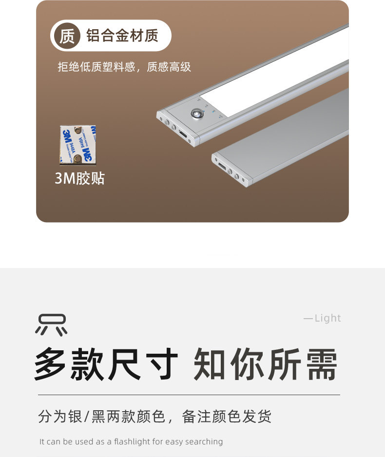 感应灯充电式灯条灯带无线自粘led衣柜灯橱柜玄关智能人体声控长