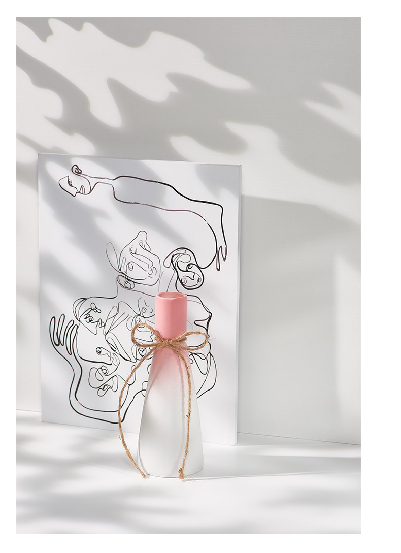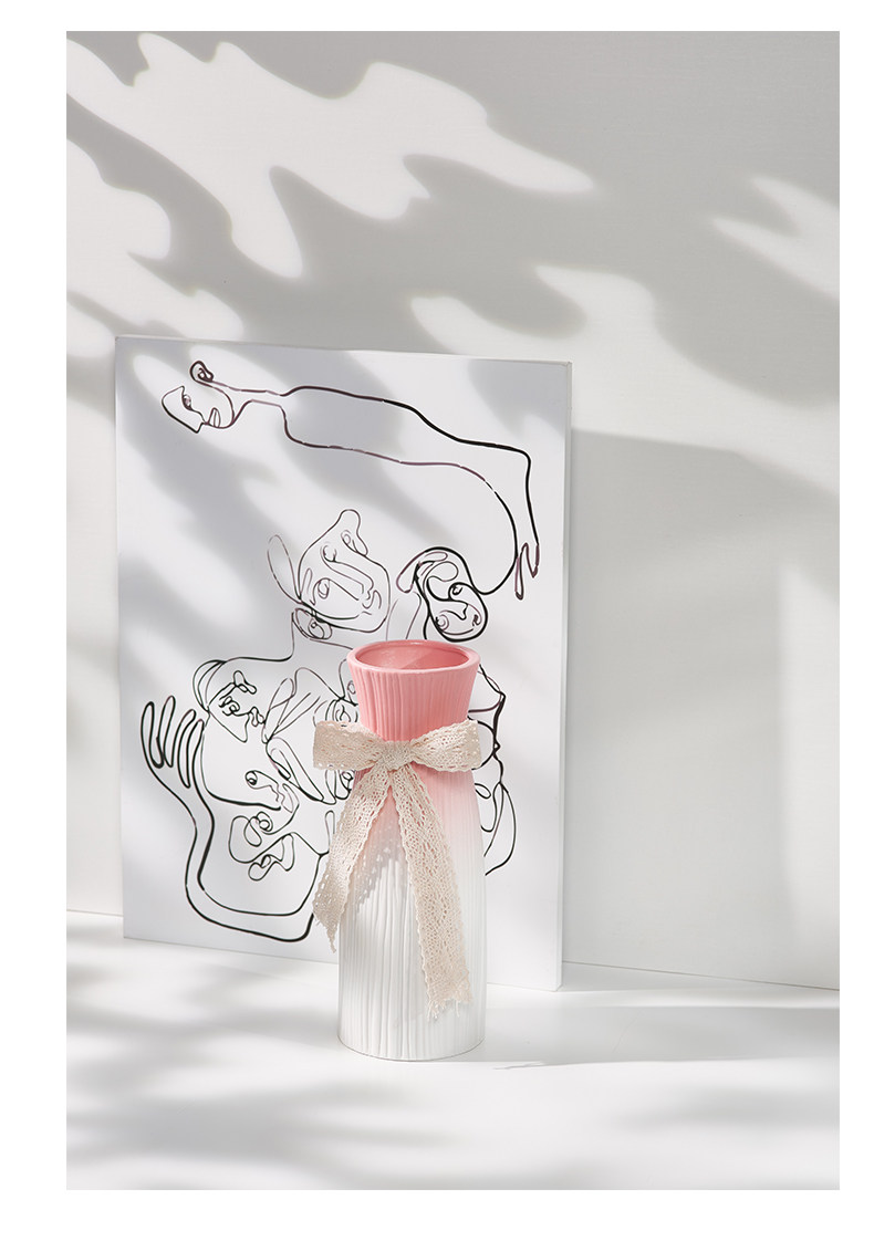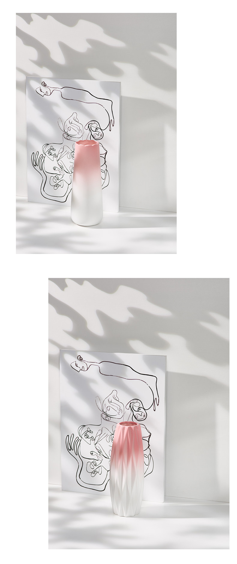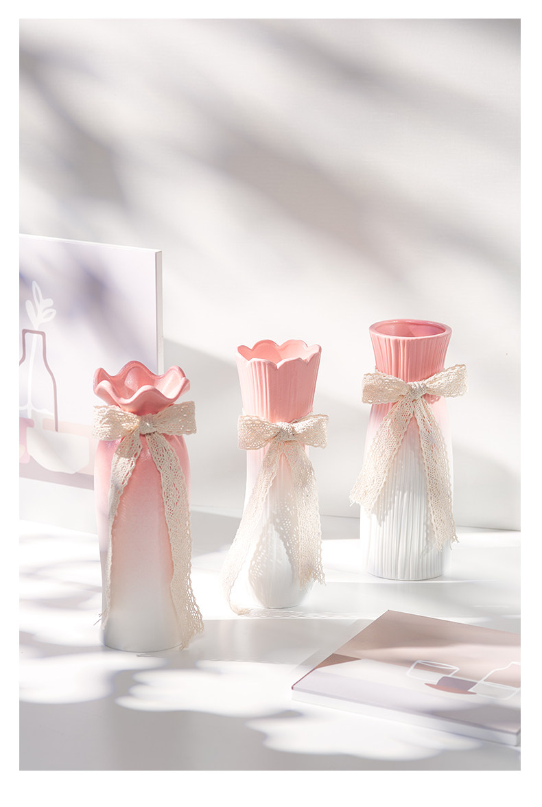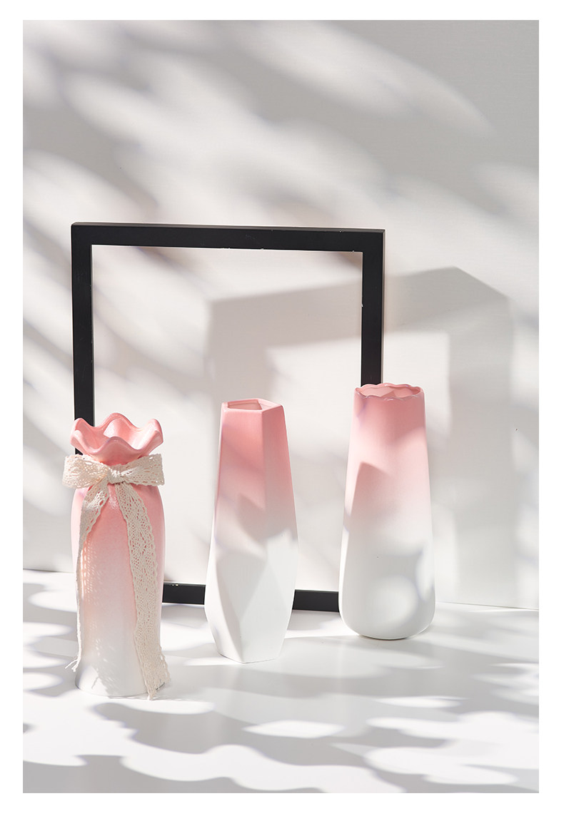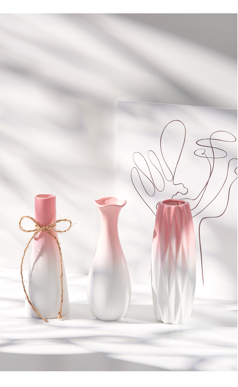 蜀门渐变粉色北欧陶瓷干花花瓶家居装饰玄关摆件摆设道具客厅插花