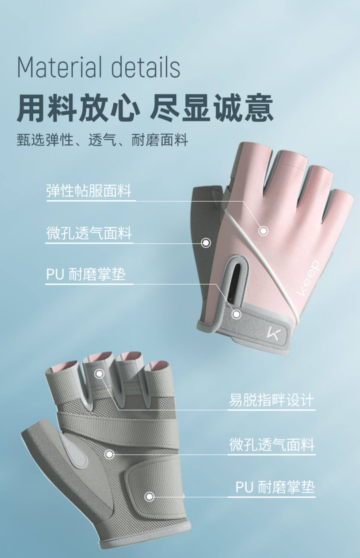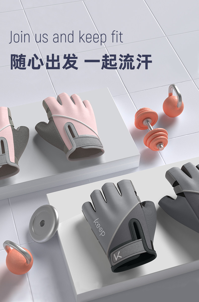 Keep健身手套女防起茧防滑器械训练运动带护腕男骑行引体向上单杠