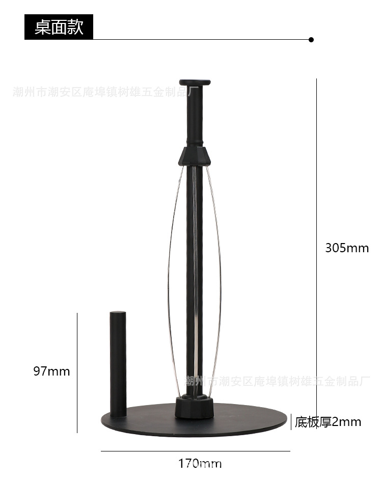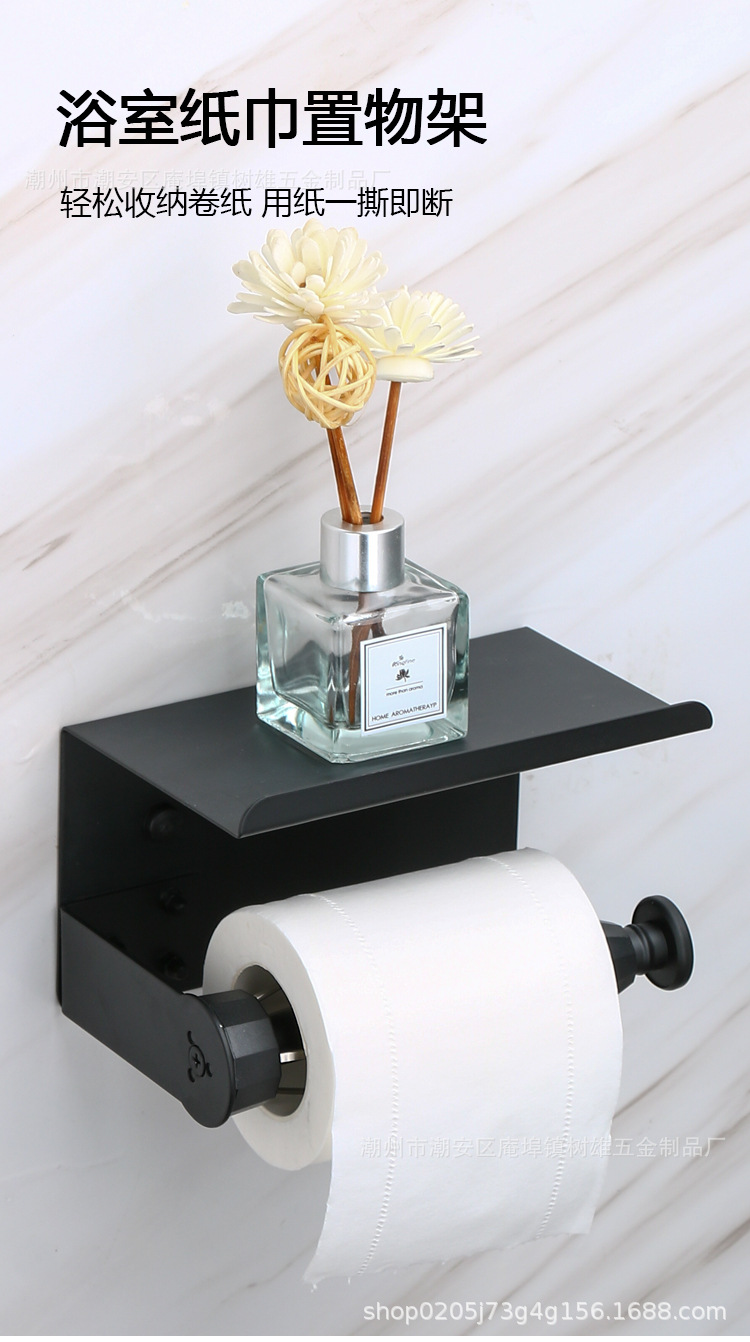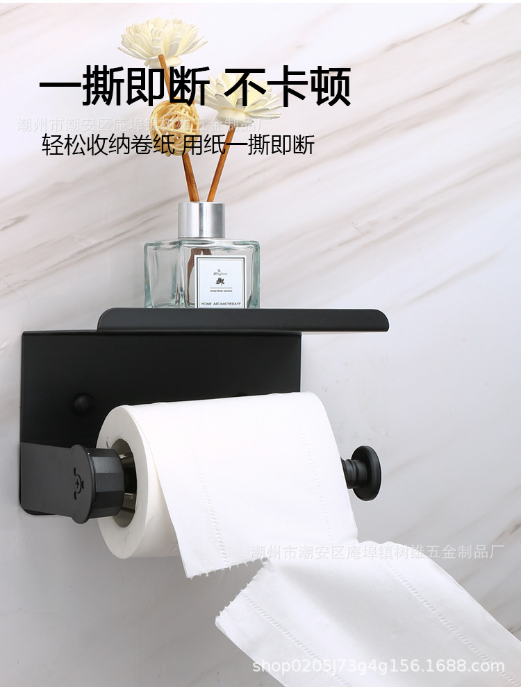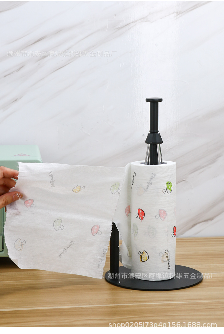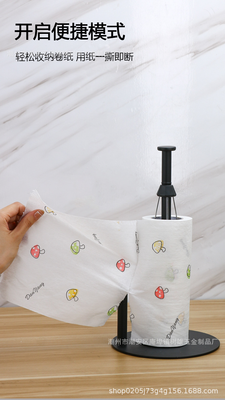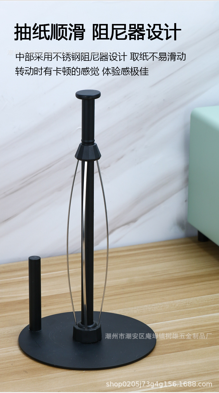 跨境不锈钢黑色免打孔卷纸架落地厨房保鲜膜架阻尼器手机纸巾架