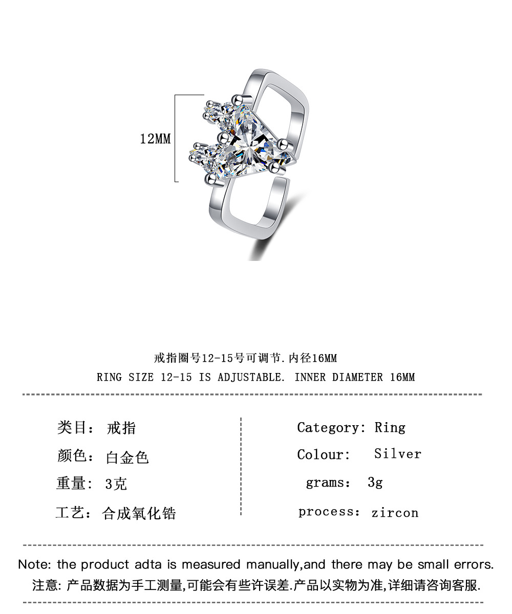 欧美INS小众设计爱心方环戒指开口精镶气质高档手饰