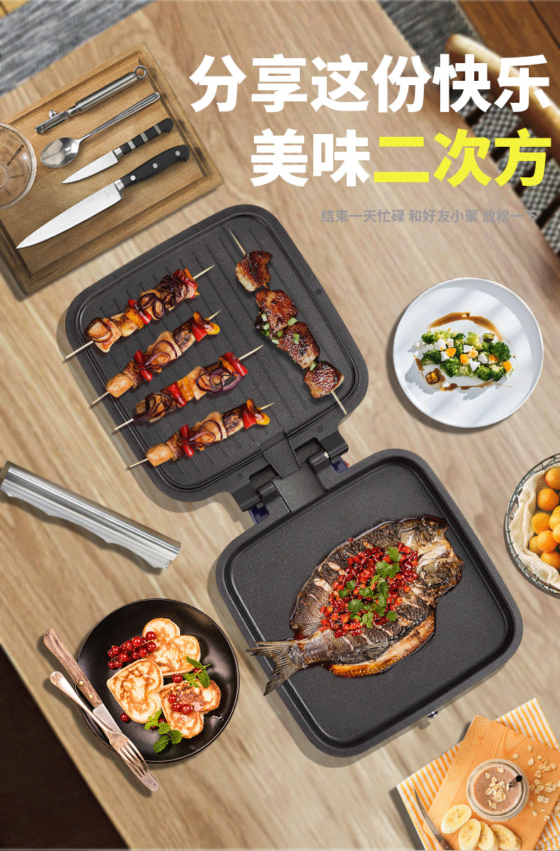 家用电烤盘 电饼铛加深双面加热 悬浮式煎烤烙饼锅薄饼机批发礼品