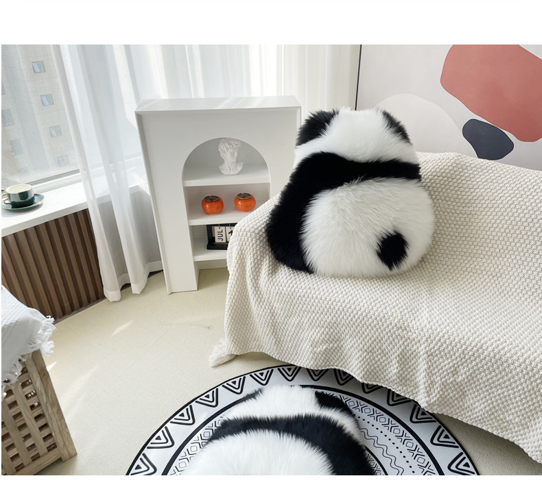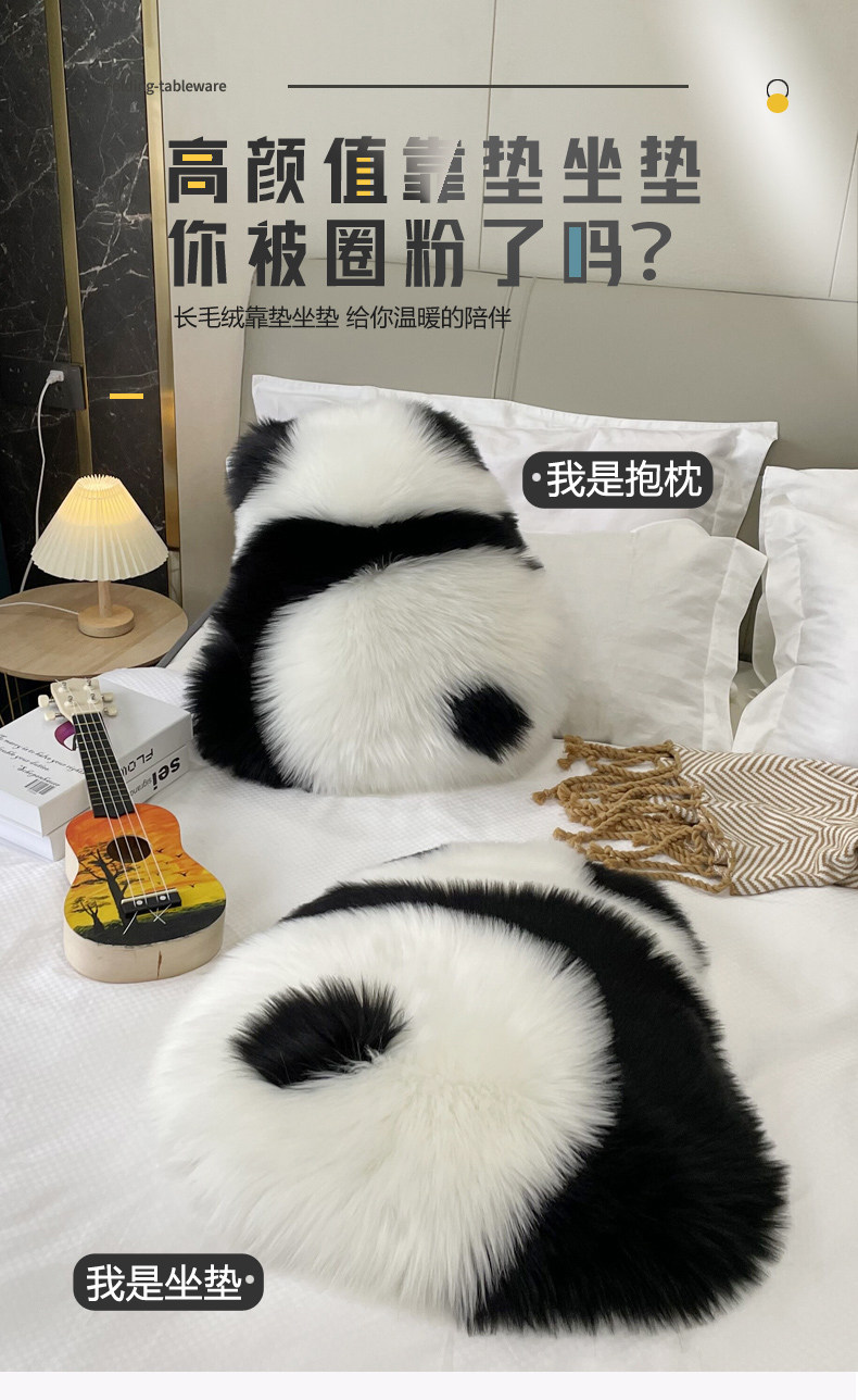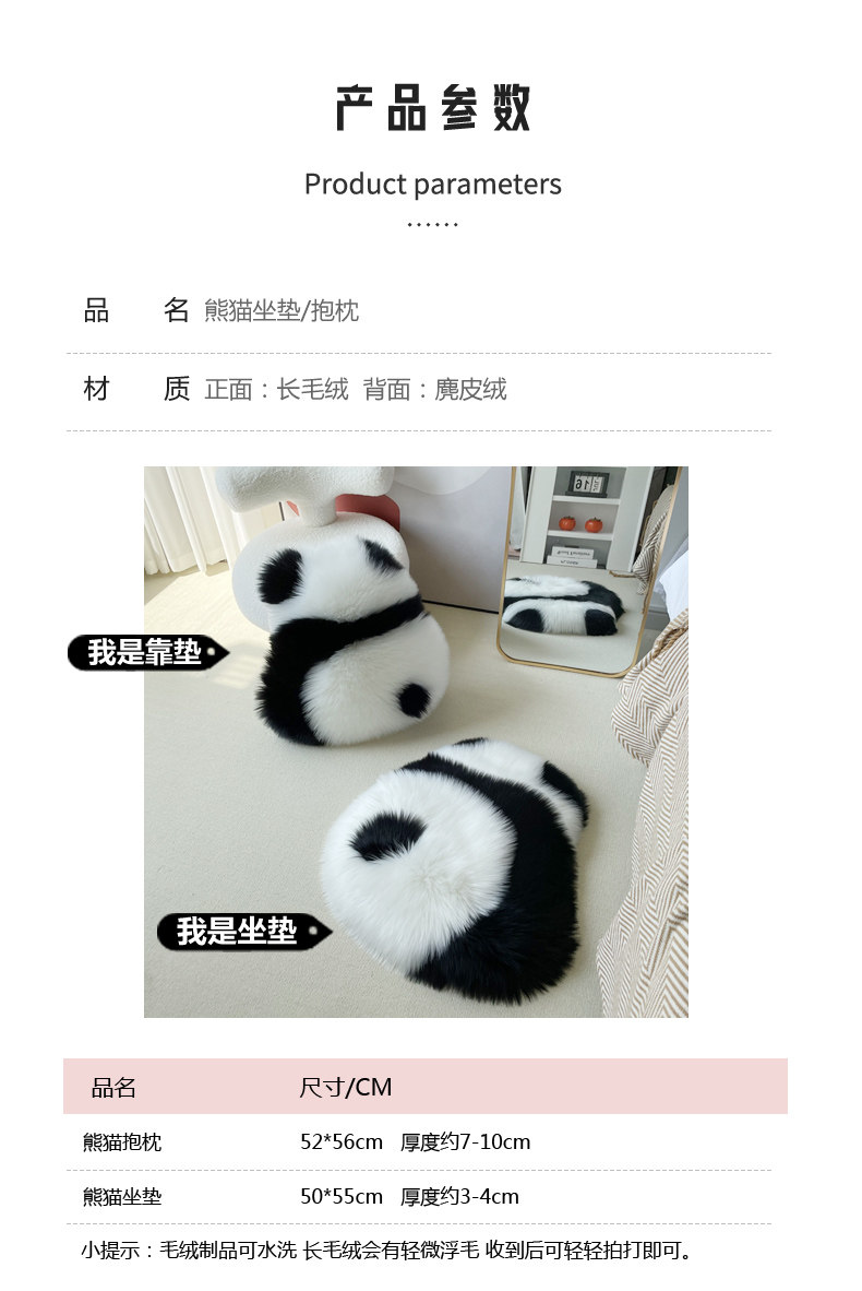 ins风熊猫抱枕仿羊毛坐垫可爱靠背垫毛绒飘窗装饰靠枕垫沙发枕头