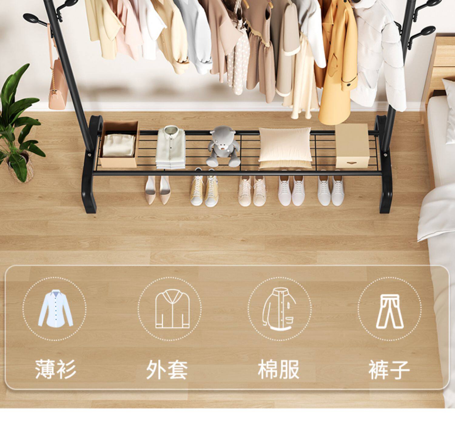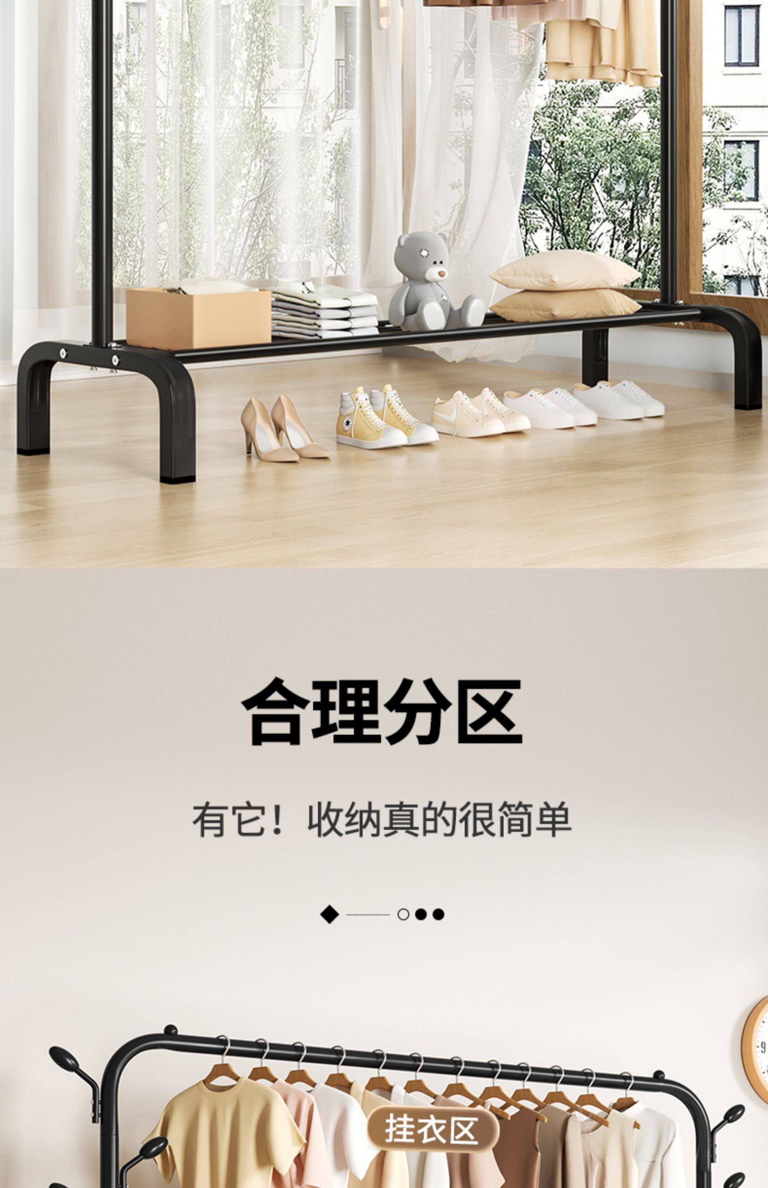 简易晾衣架落地折叠阳台晒衣服架子家用卧室家用晾衣杆折叠挂衣架