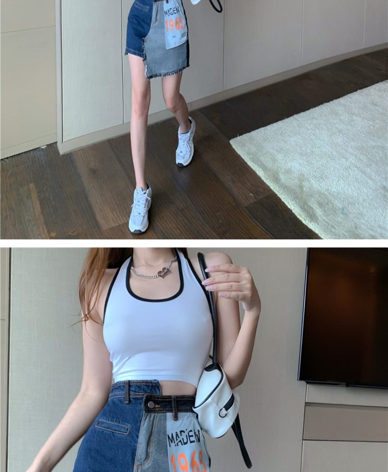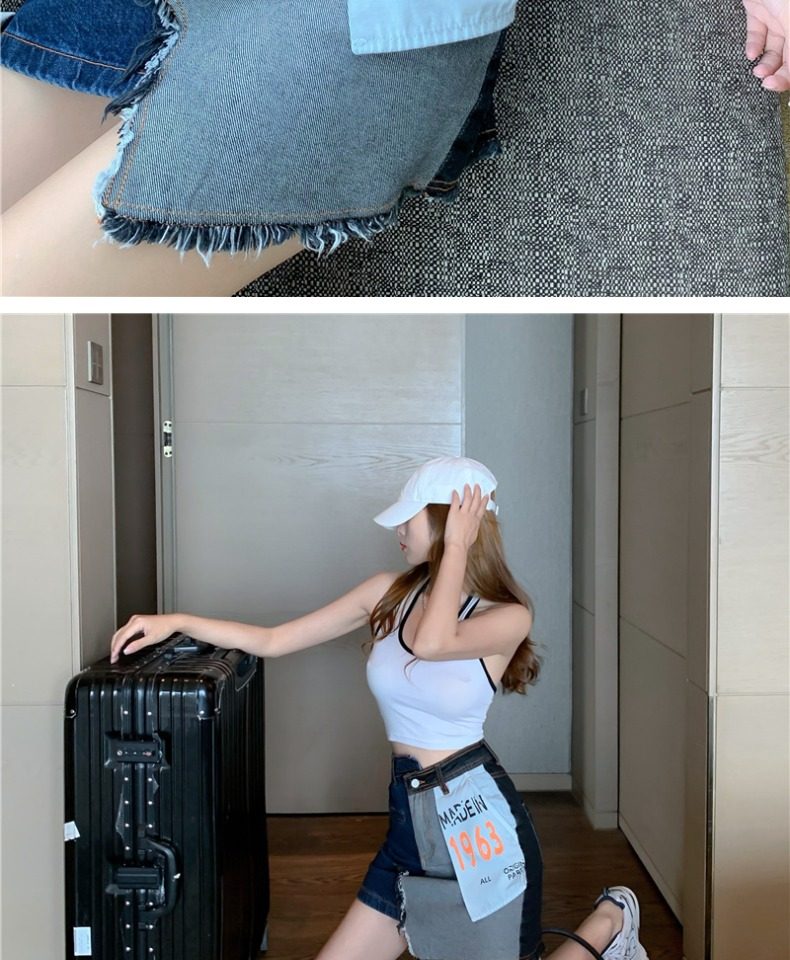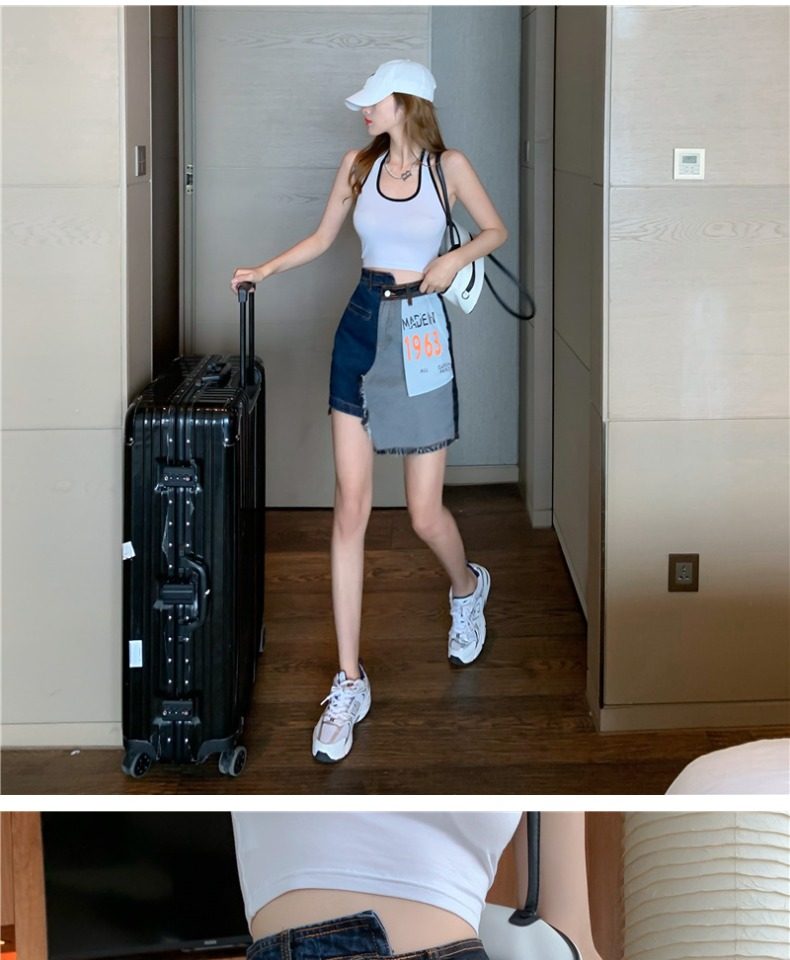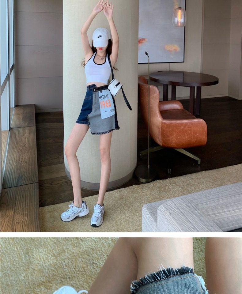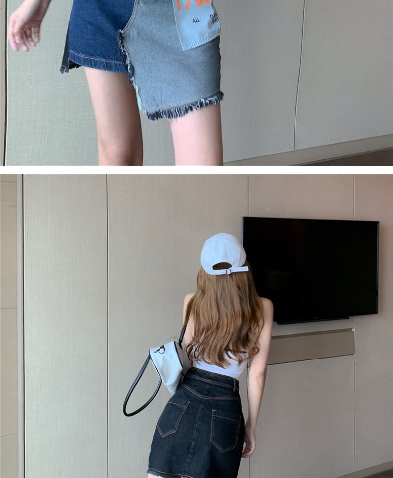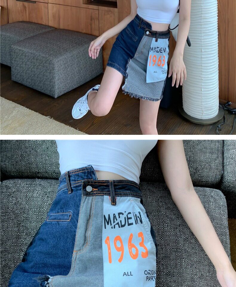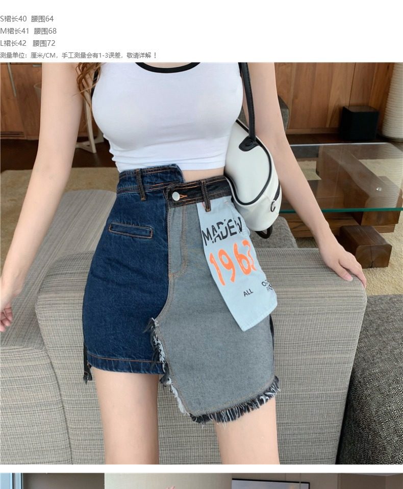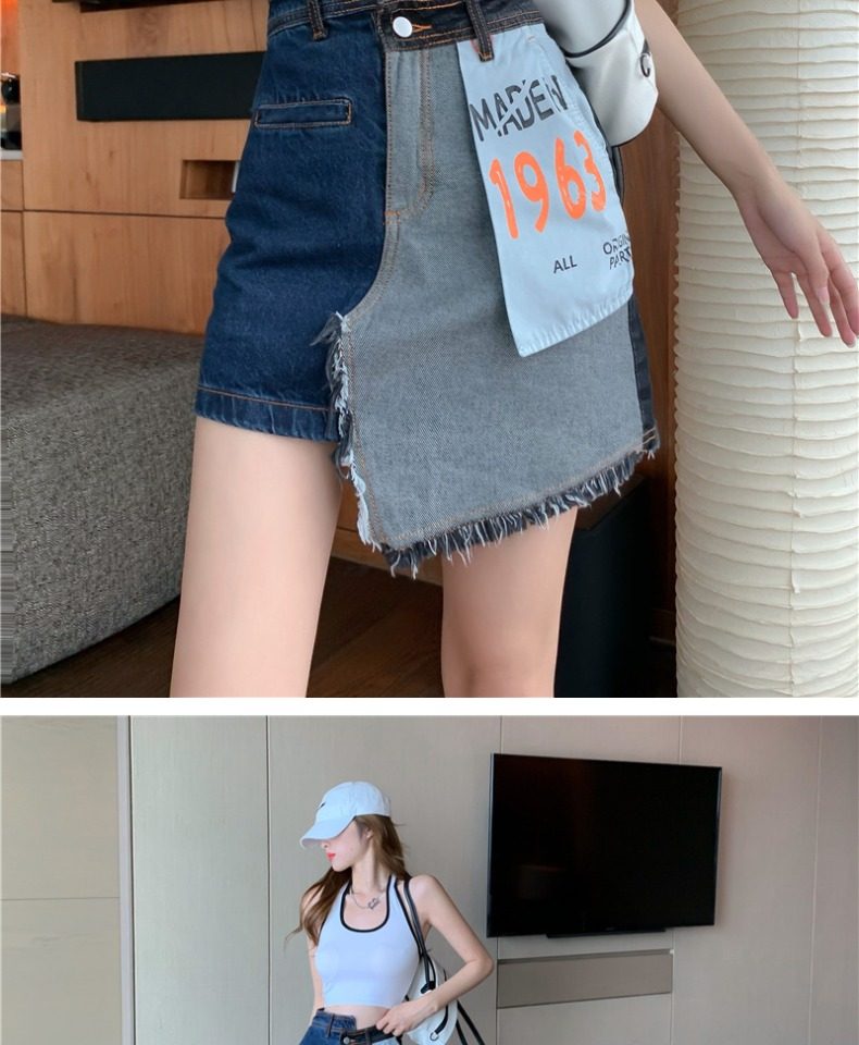 夏装2023新款设计感小众不对称撞色拼接A字半身裙牛仔短裙女ins潮
