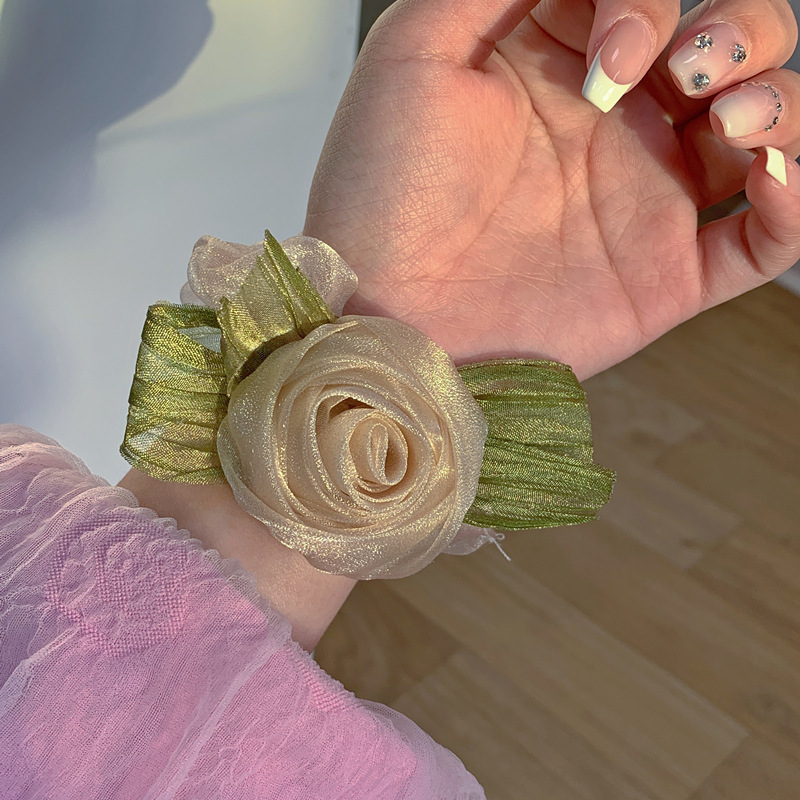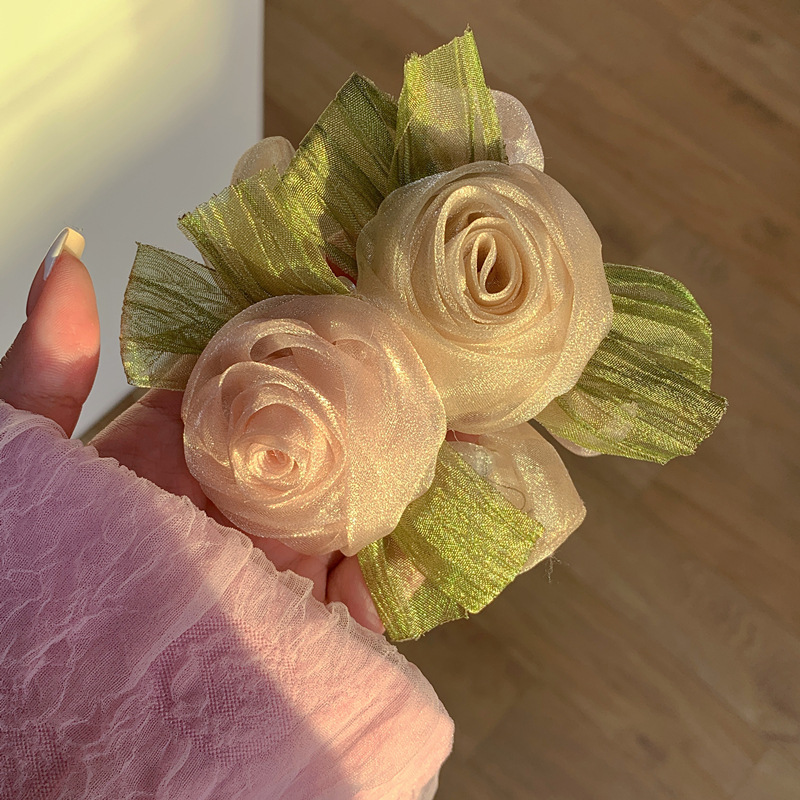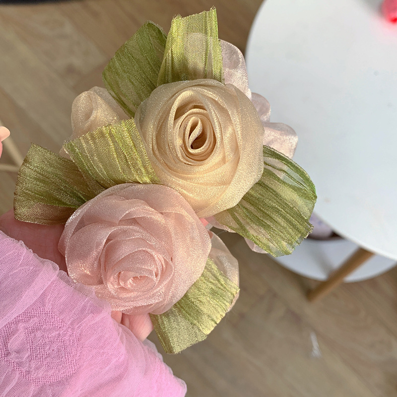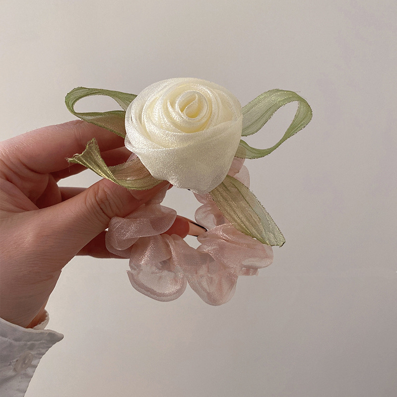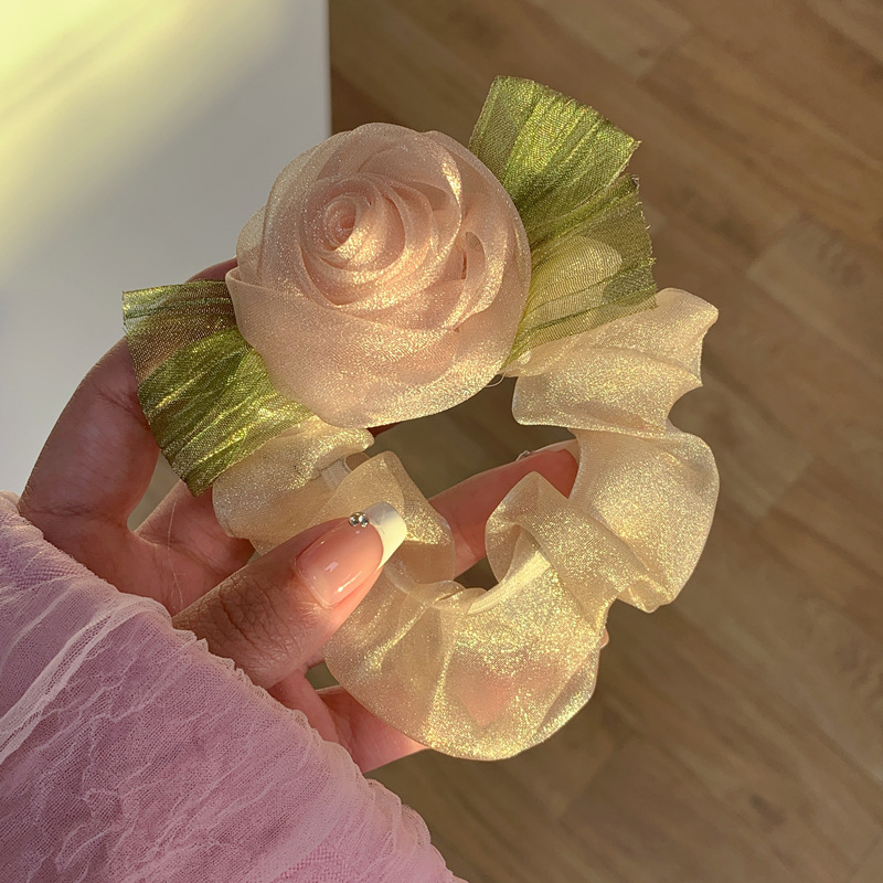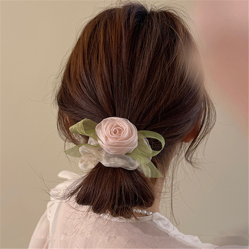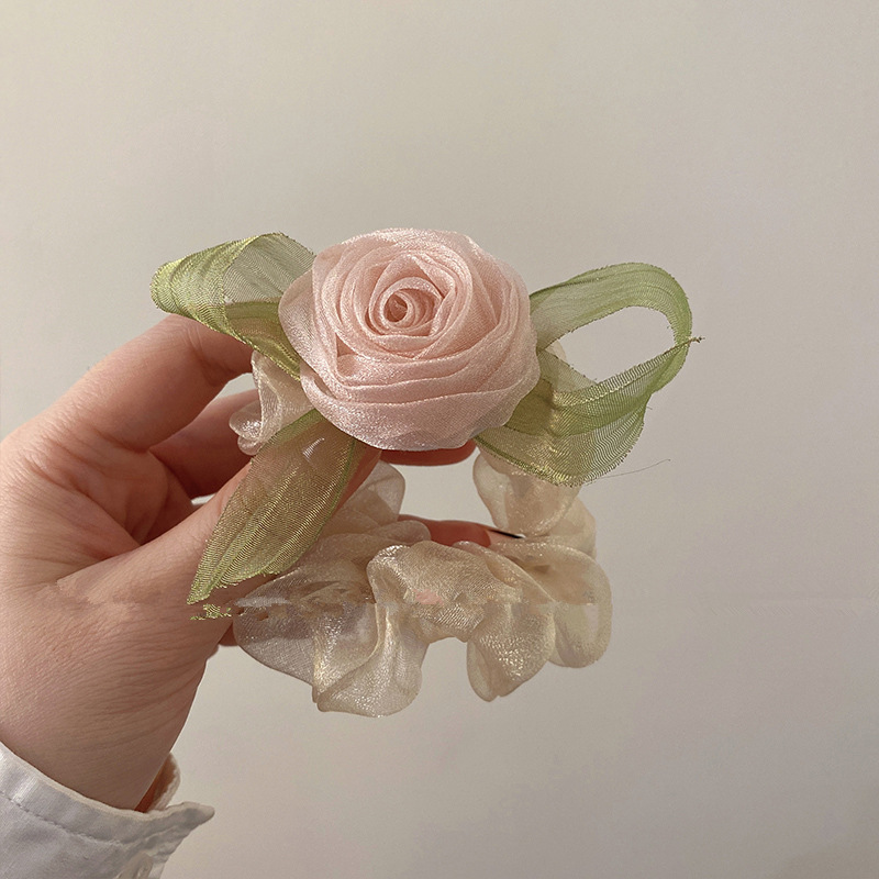 朝露玫瑰~超仙网纱大肠发圈头绳2023年新款简约ins皮筋女扎头发绳