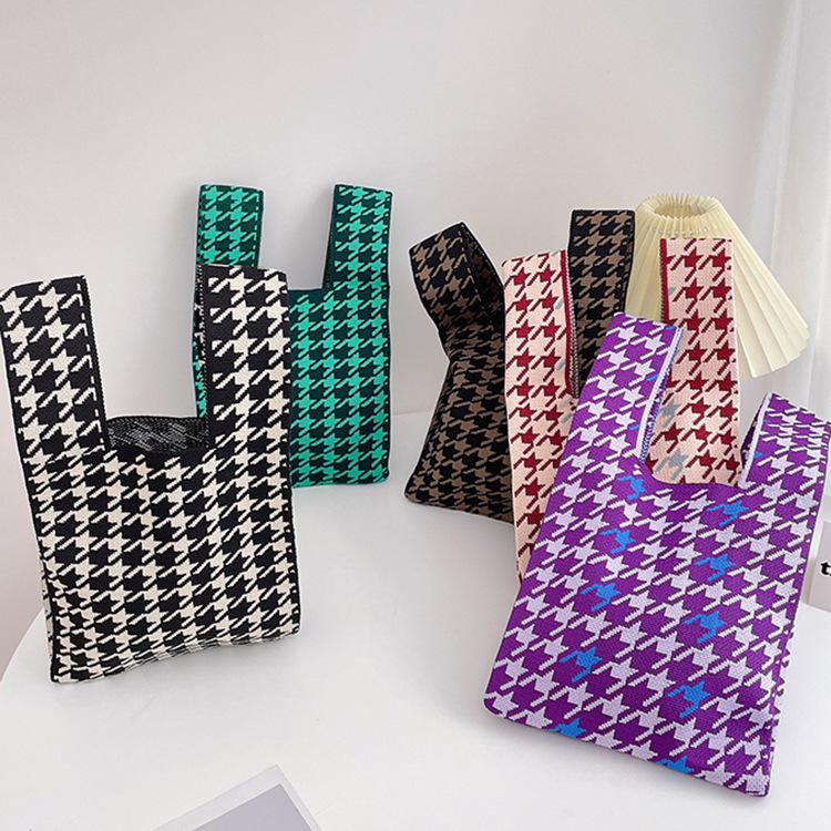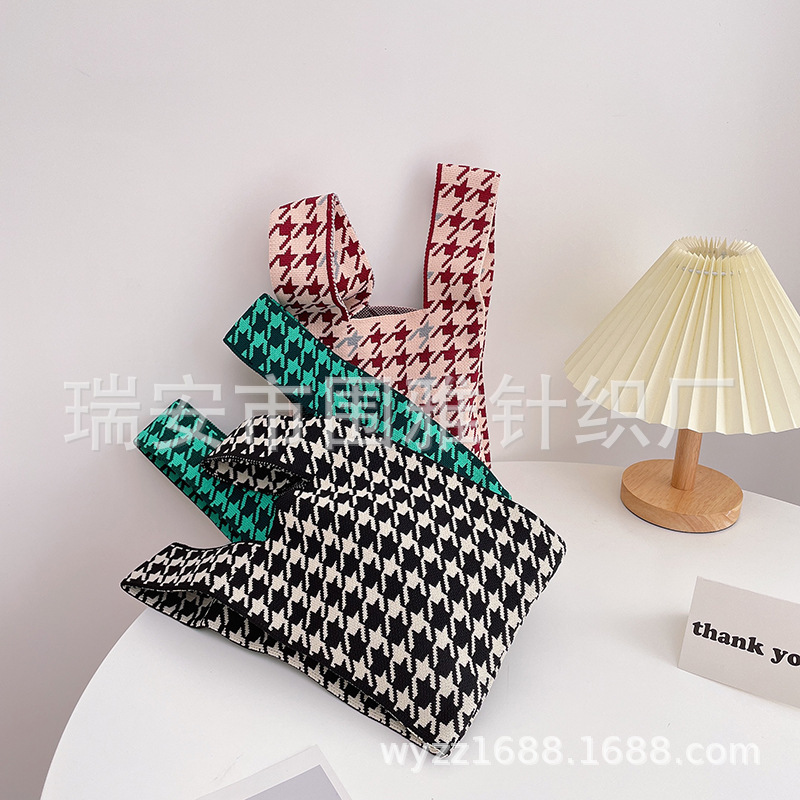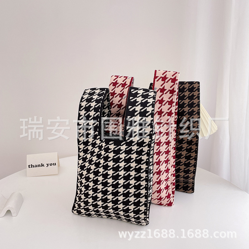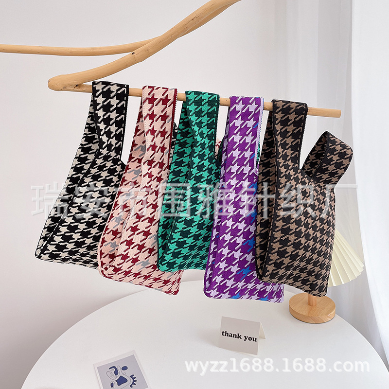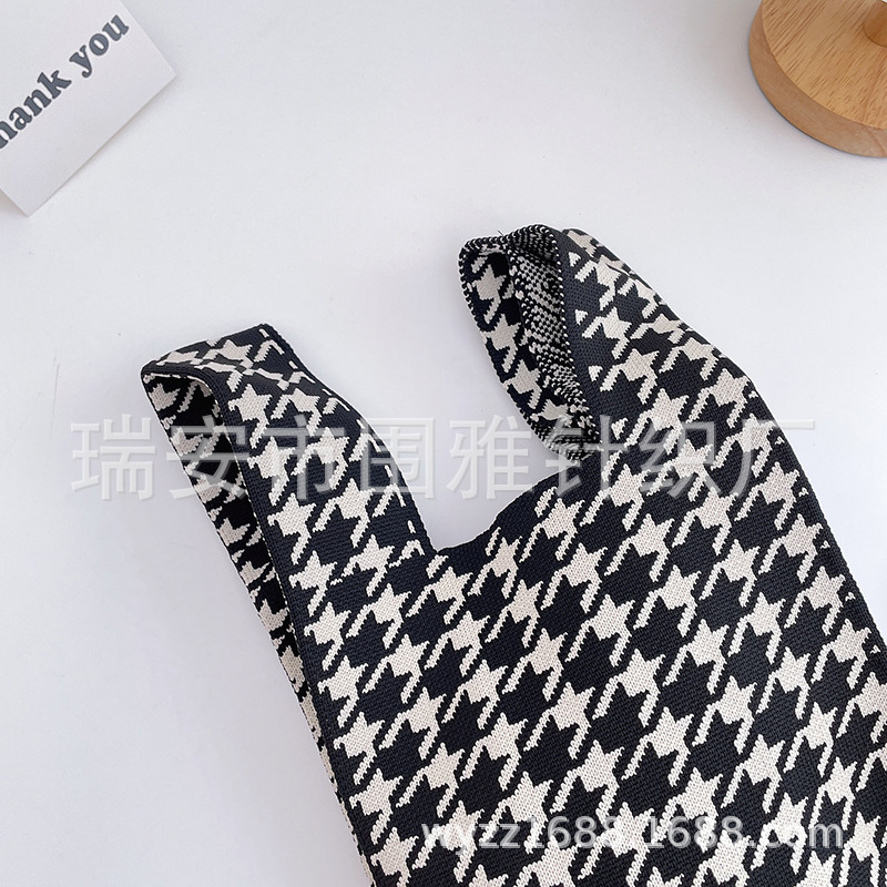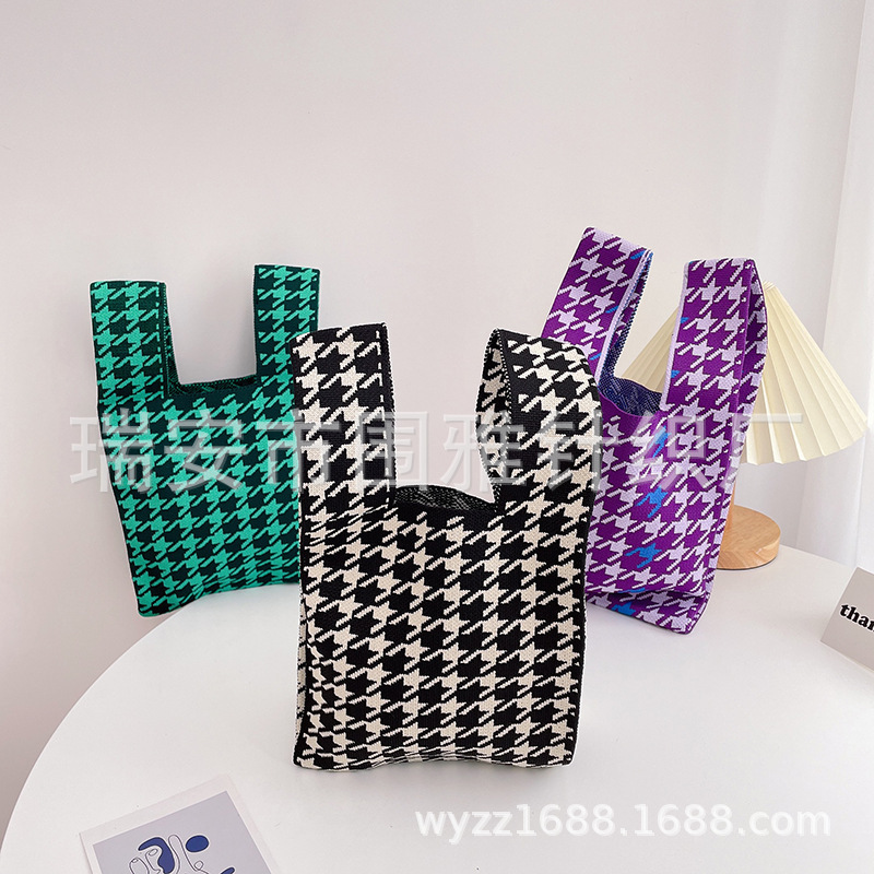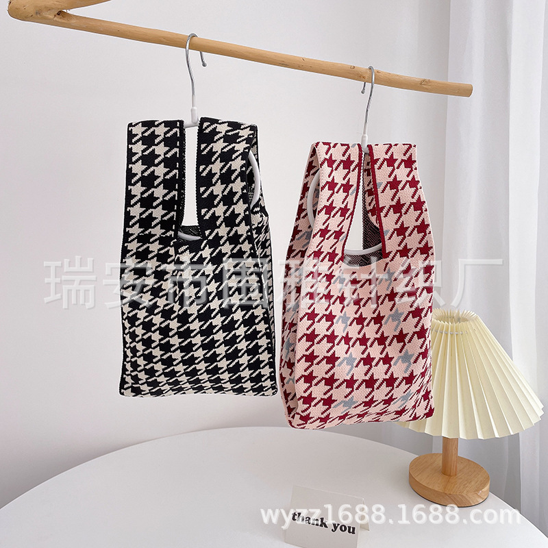 2022新款包包斜挎包亚马逊包针织包千鸟格托特包跨境包单肩包女潮