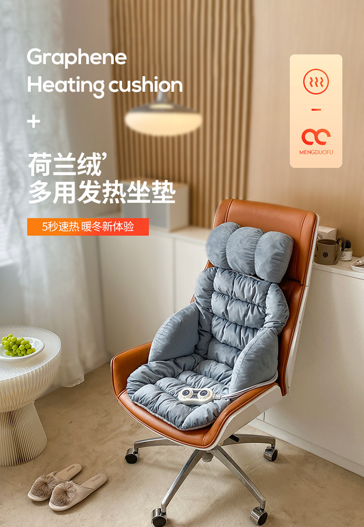冬季加热毛绒座垫办公室学生家用带扶手坐垫保暖发热靠垫屁股垫子
