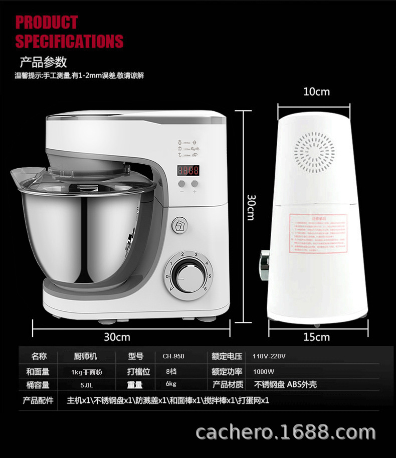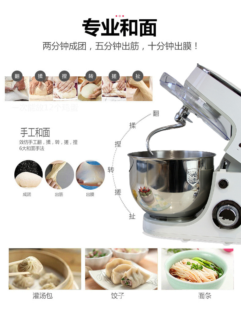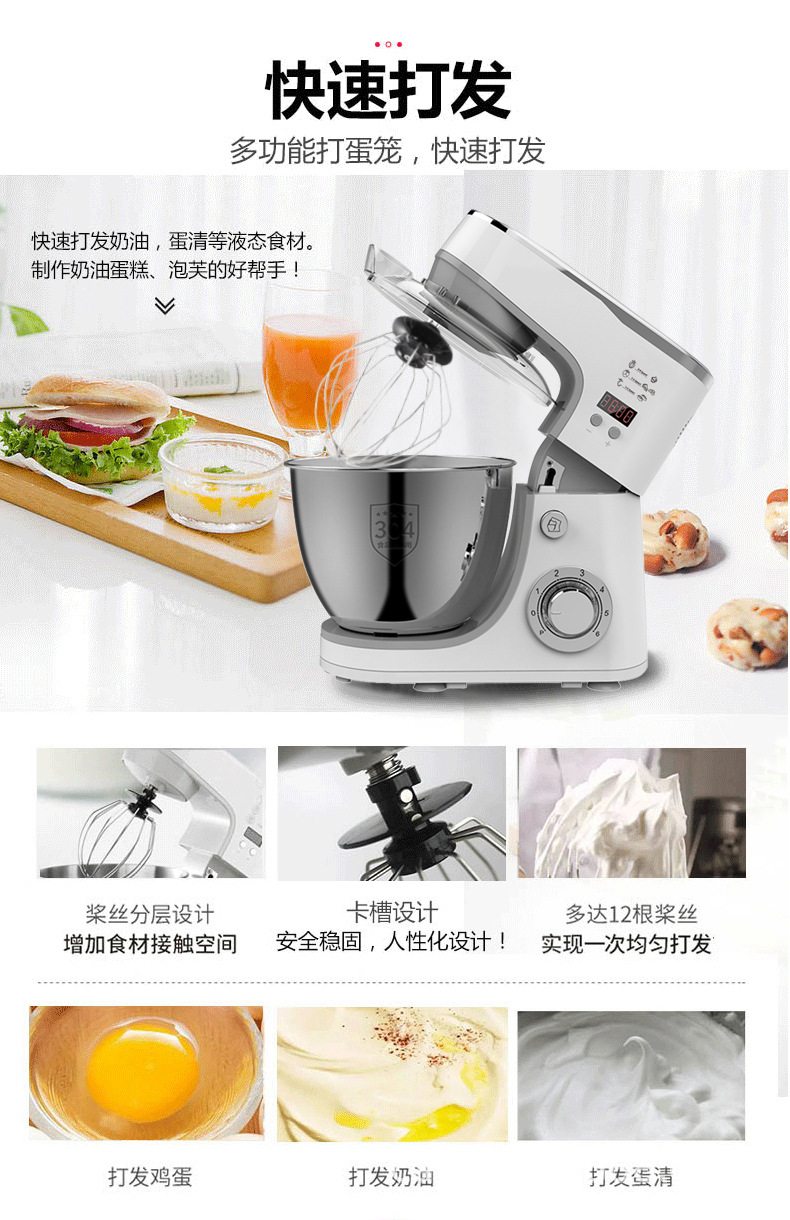 跨境厨师机和面机不锈钢碗大功率打蛋机搅面机打蛋器现货美规日规