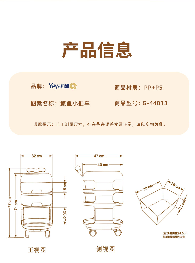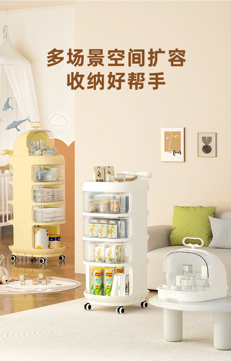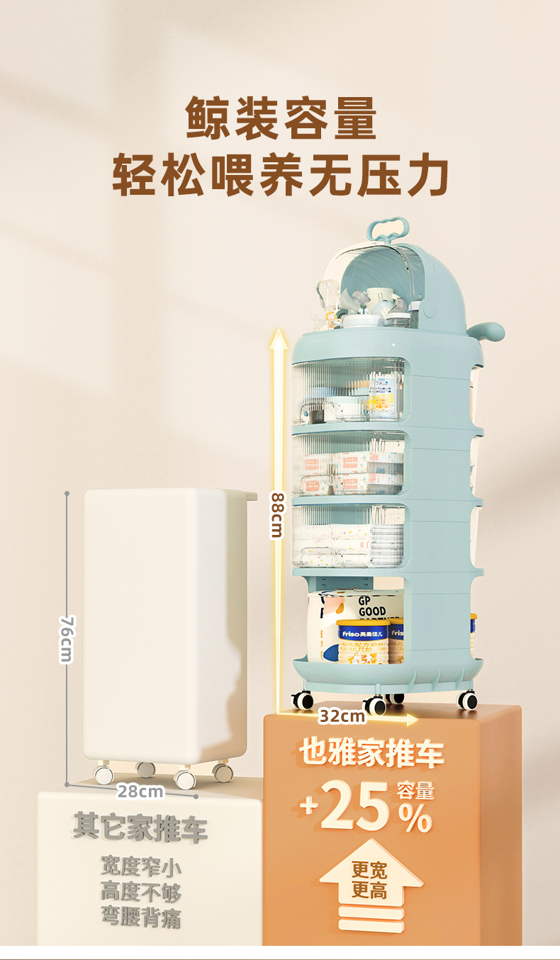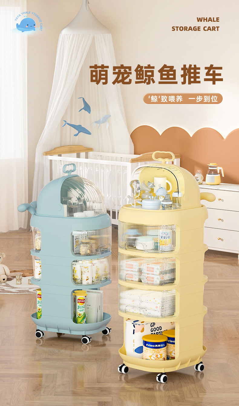 婴儿用品置物架鲸鱼小推车落地多层创意床头移动零食收纳储物架pp