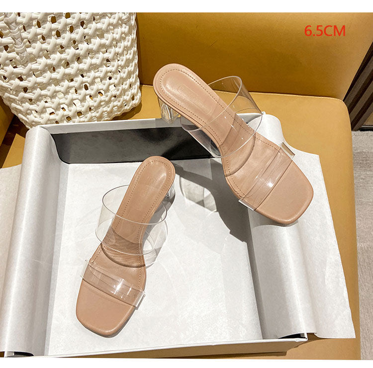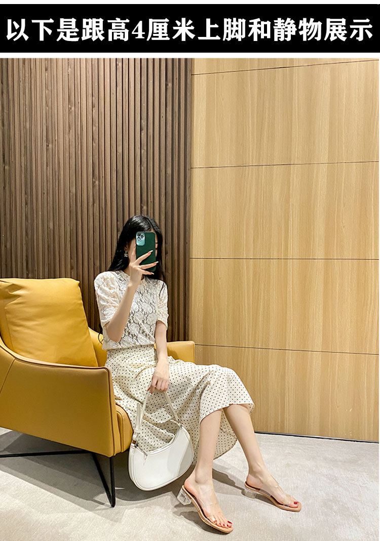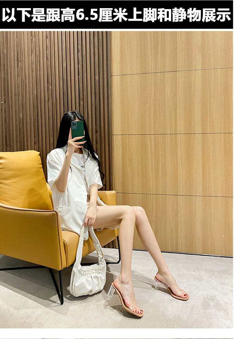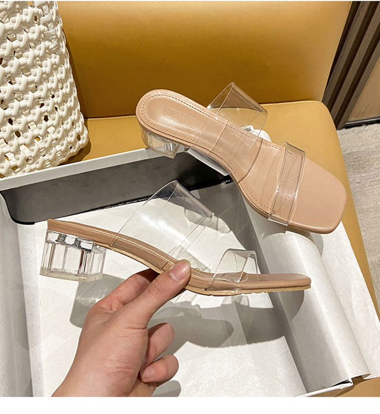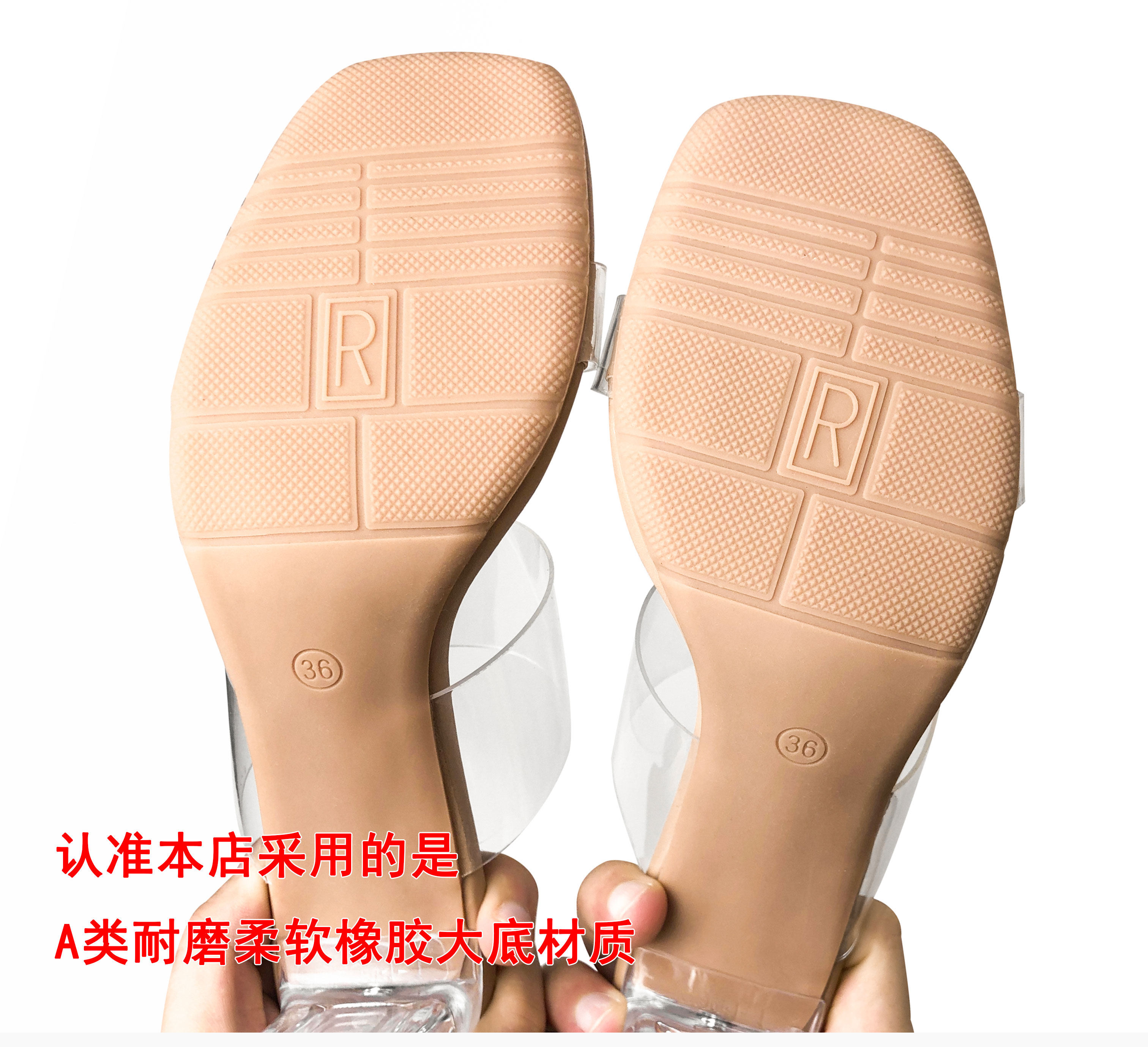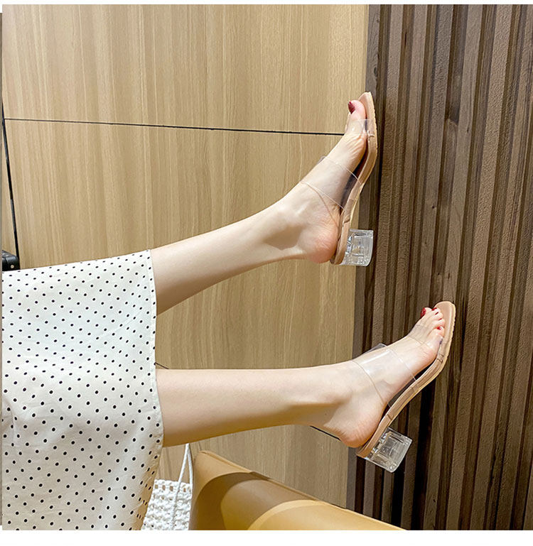 高跟鞋凉鞋女2023年夏季新款时尚透明中跟水晶鞋时装粗跟外穿拖鞋