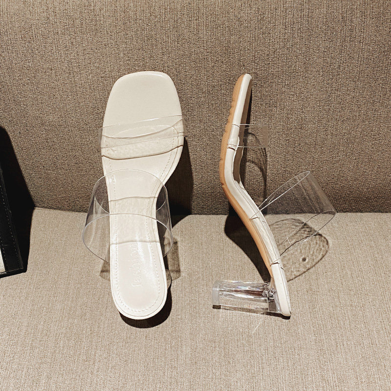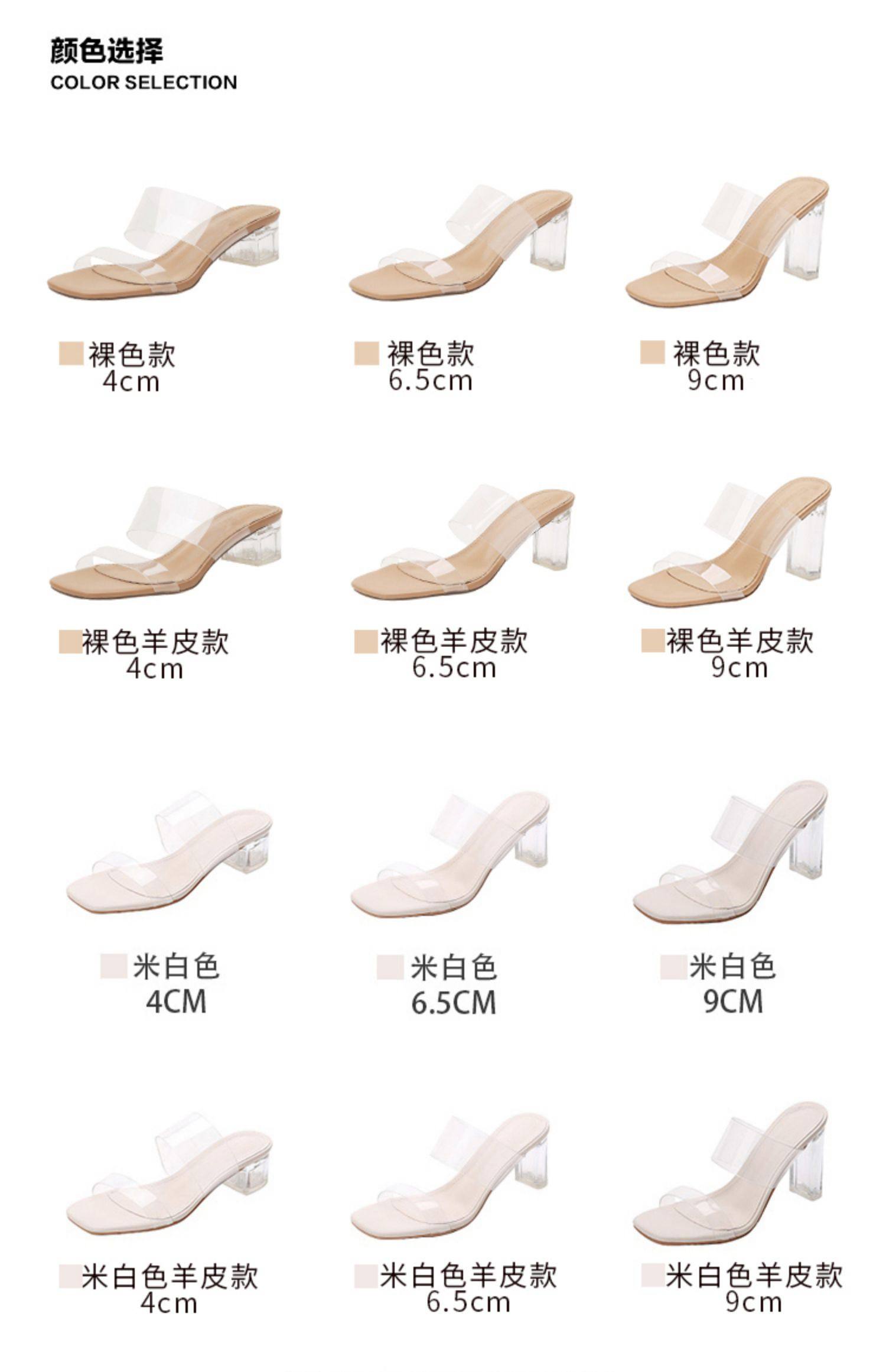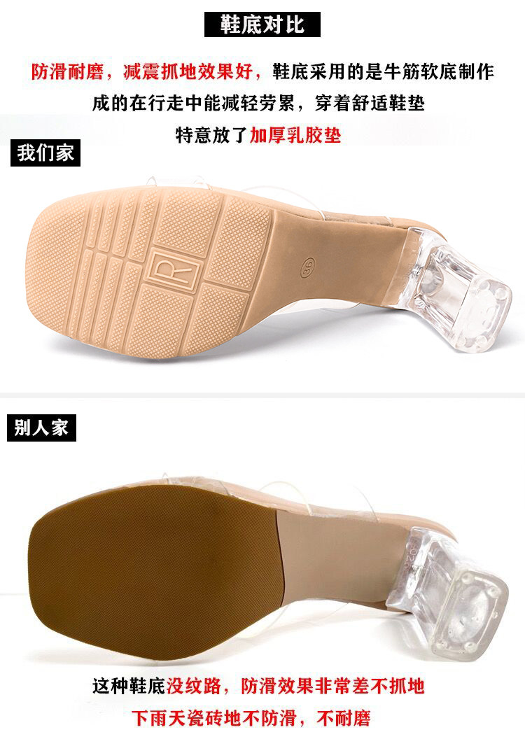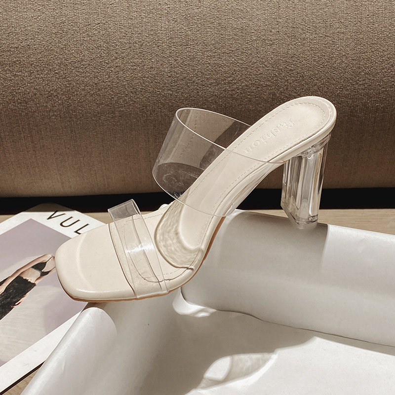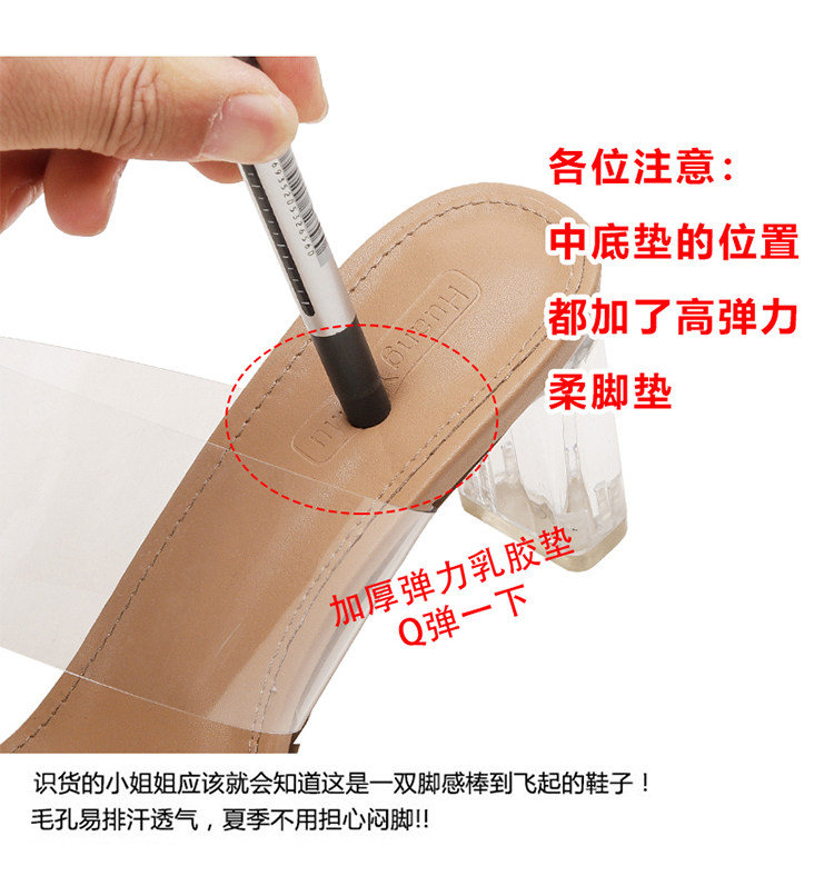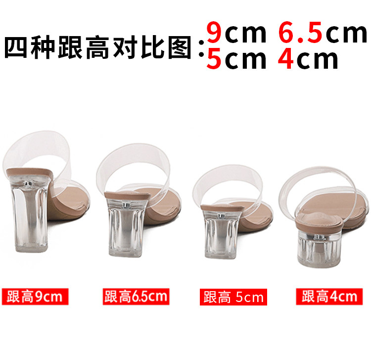 高跟鞋凉鞋女2023年夏季新款时尚透明中跟水晶鞋时装粗跟外穿拖鞋