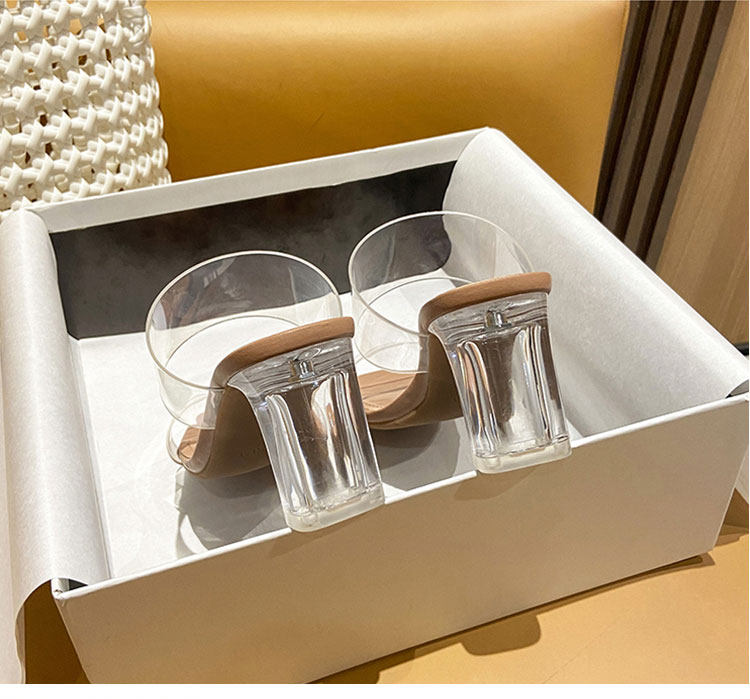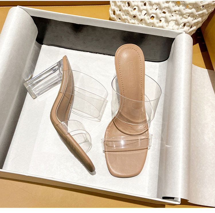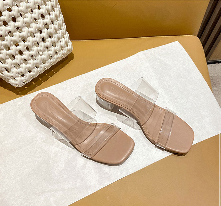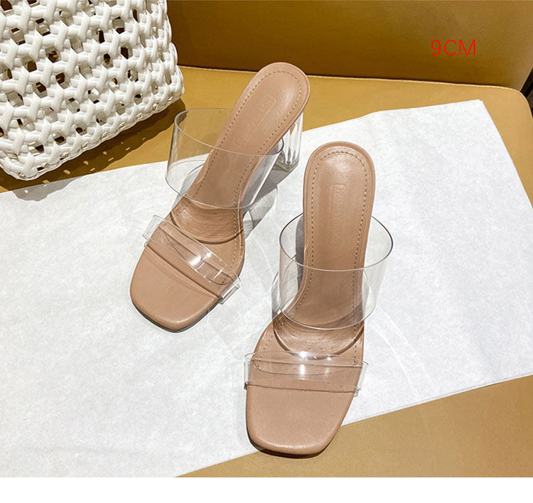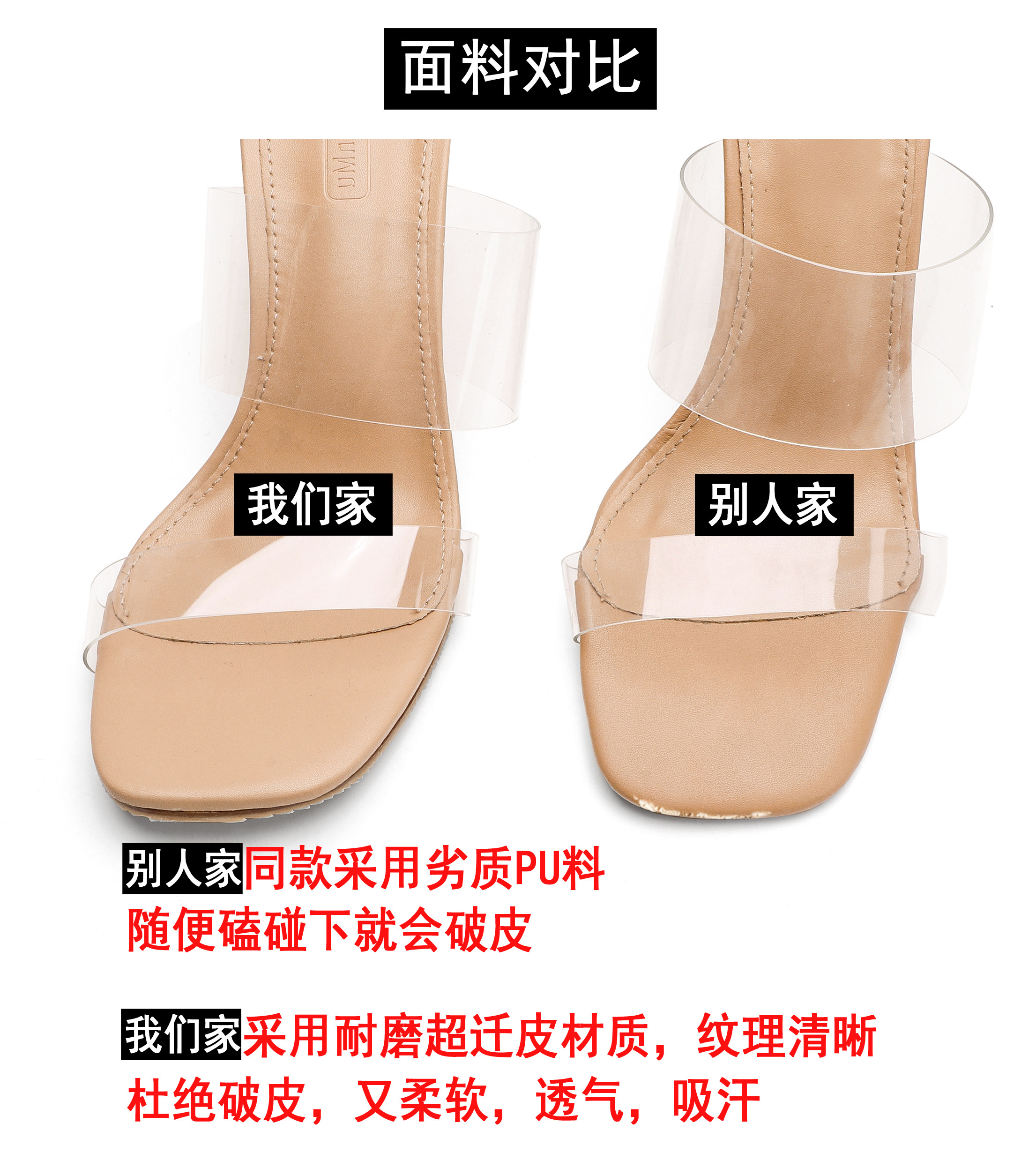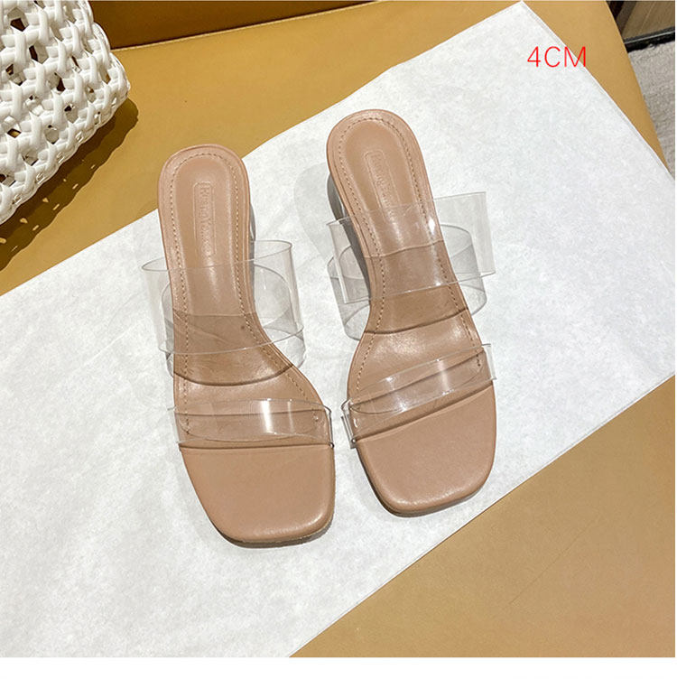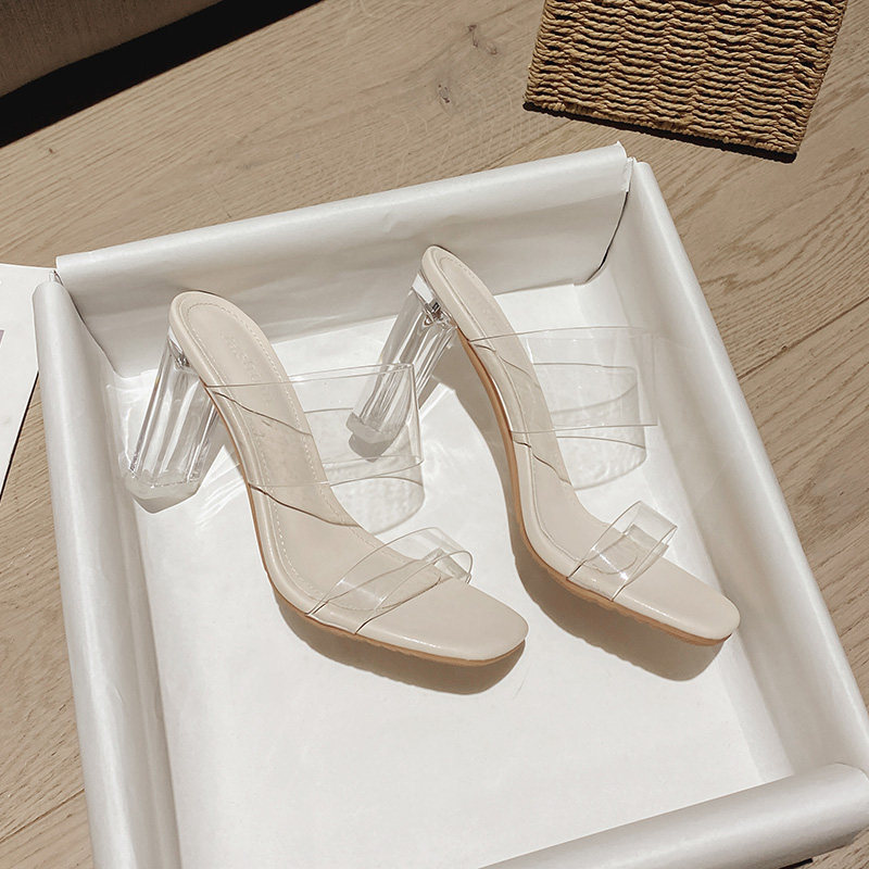 高跟鞋凉鞋女2023年夏季新款时尚透明中跟水晶鞋时装粗跟外穿拖鞋