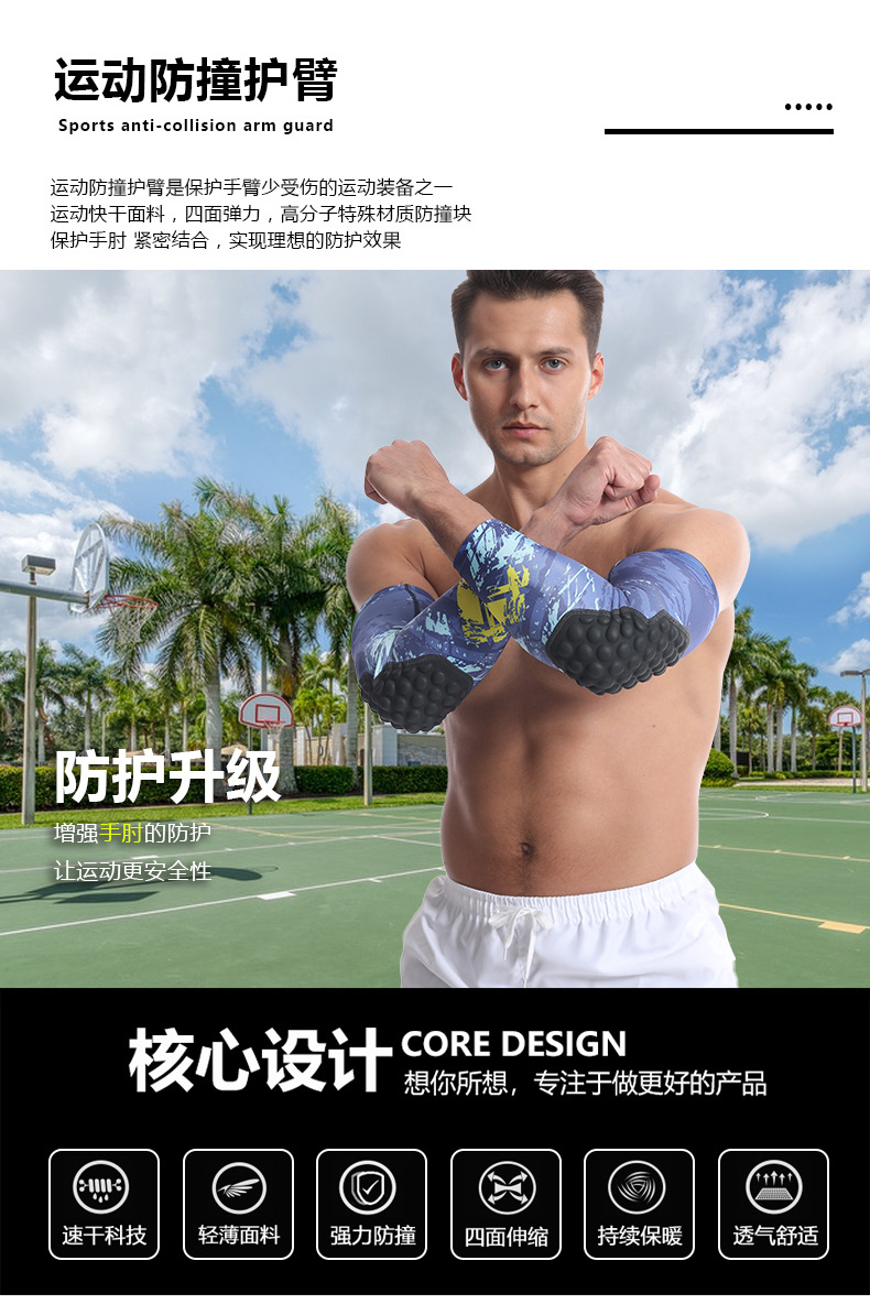 跨境新款高弹加压防撞护臂户外篮球足球轮滑登山防撞护肘运动护臂