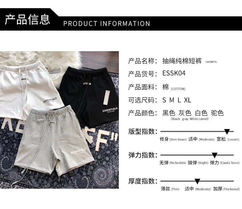 CHAOGONGFANG ESSENTIALS高街FOG宽松反光短裤男潮五分裤男士夏款
