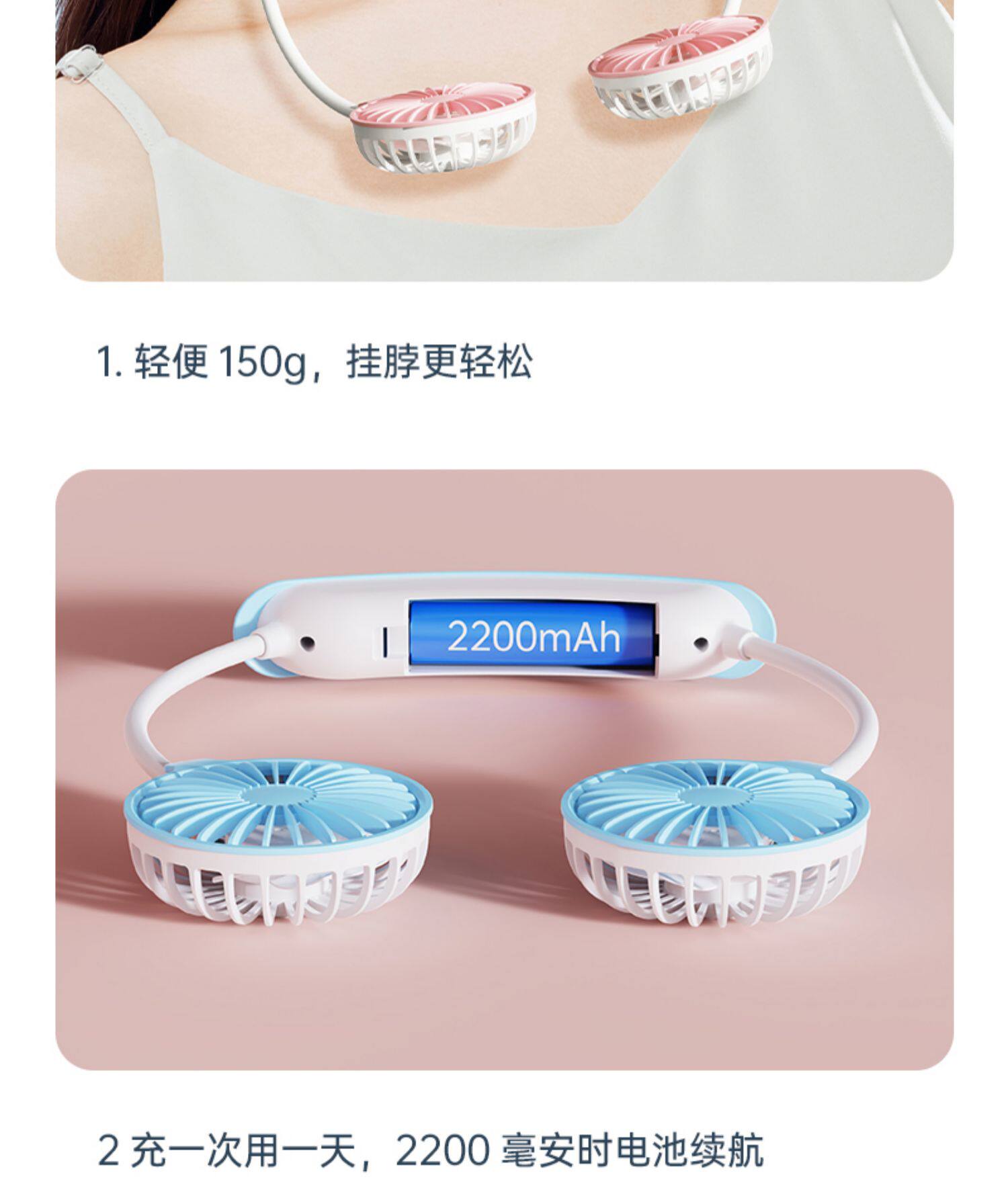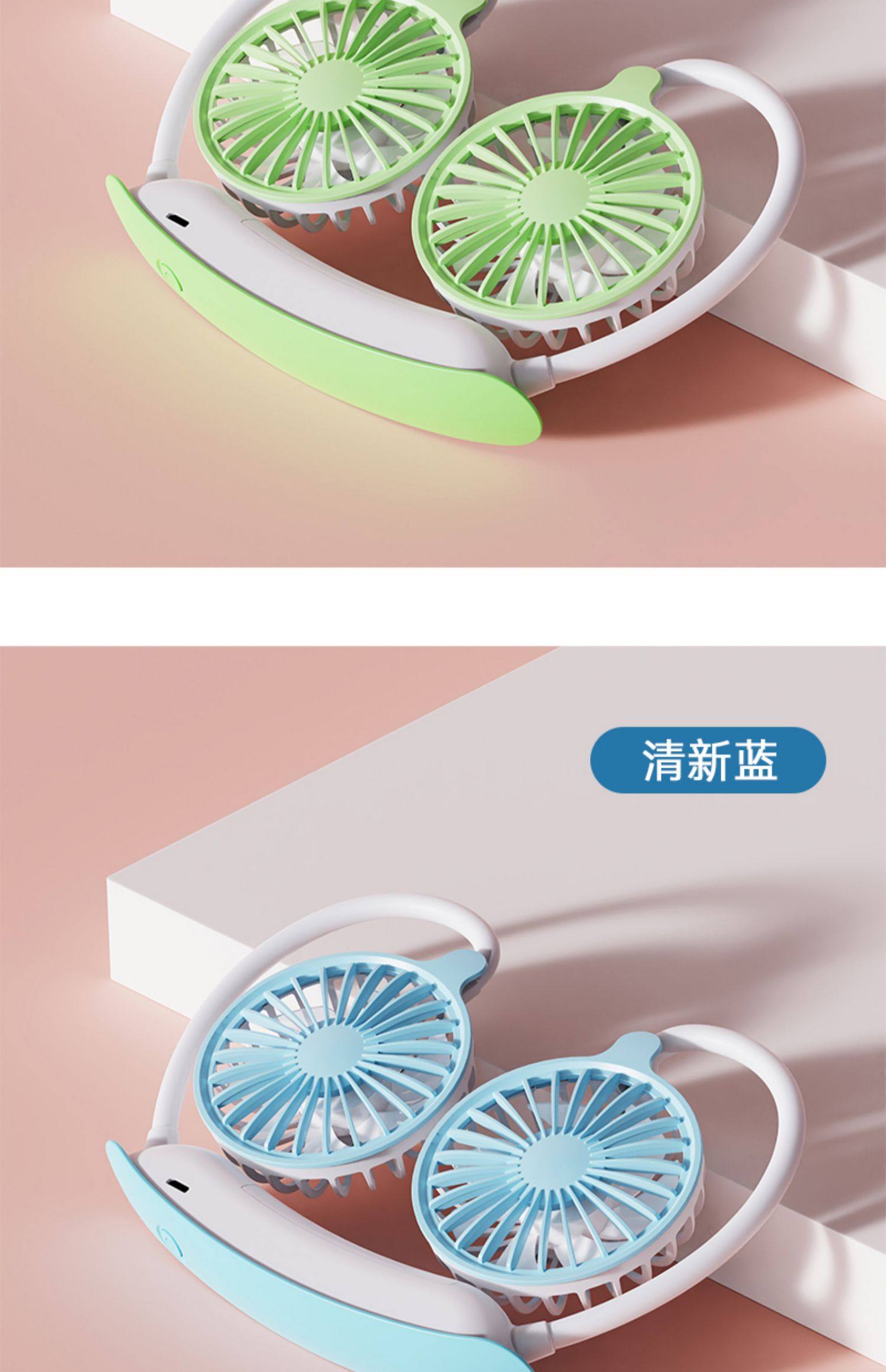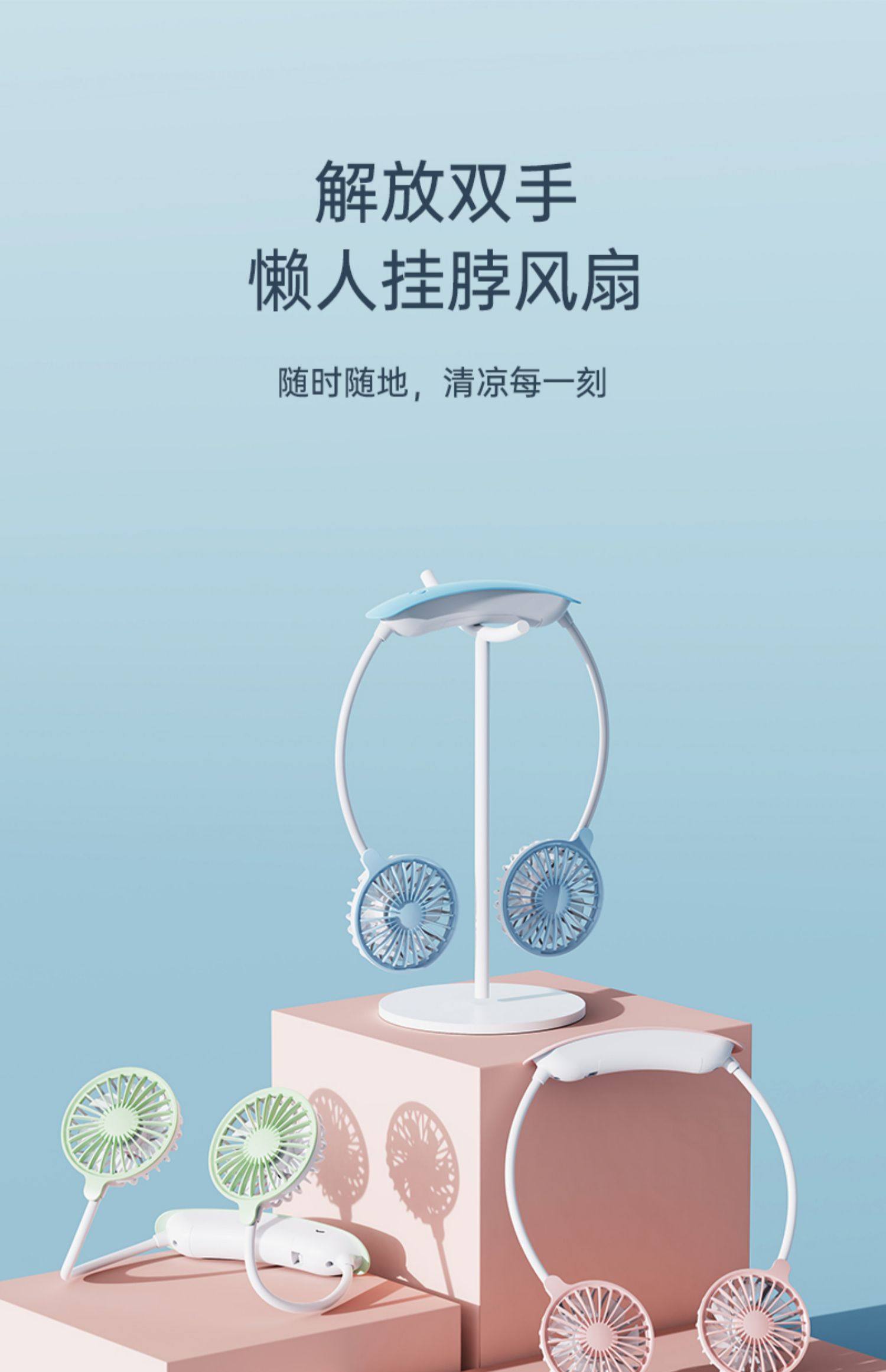 挂脖风扇便携式随身挂颈懒人穿戴头戴式挂脖子小风扇usb充电降温神器折叠学生宿舍夏季户外可爱静音厨房桌面