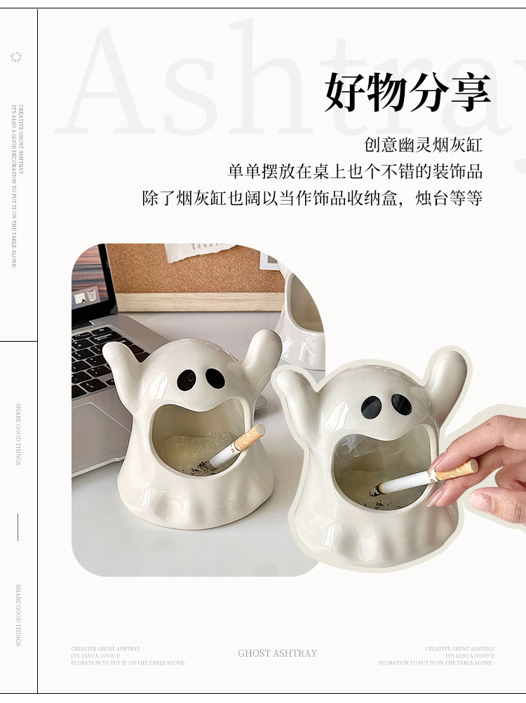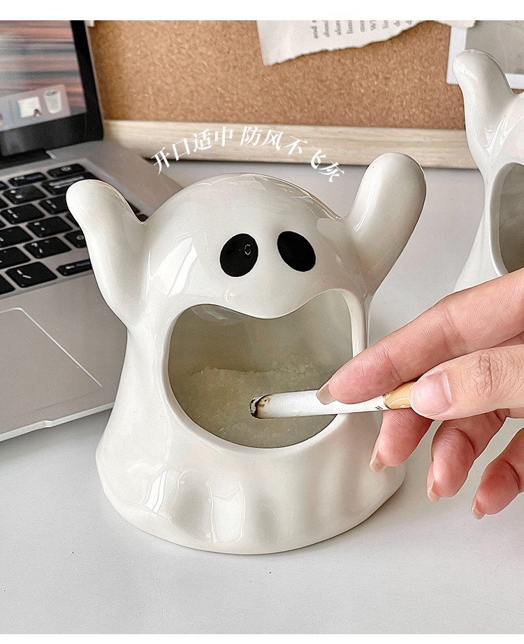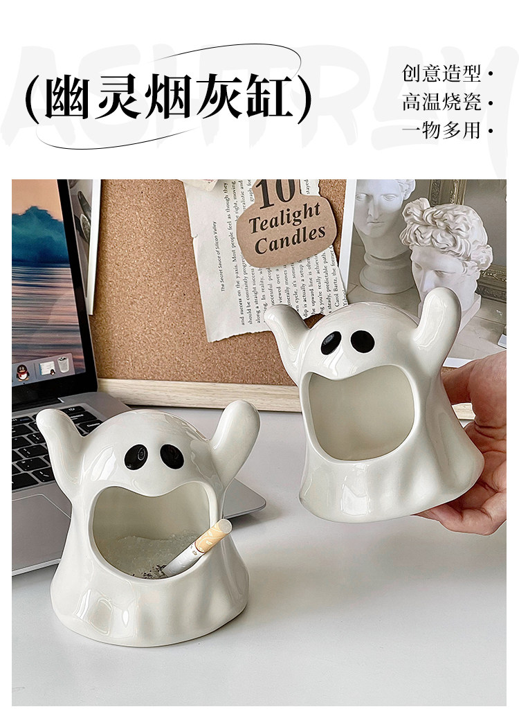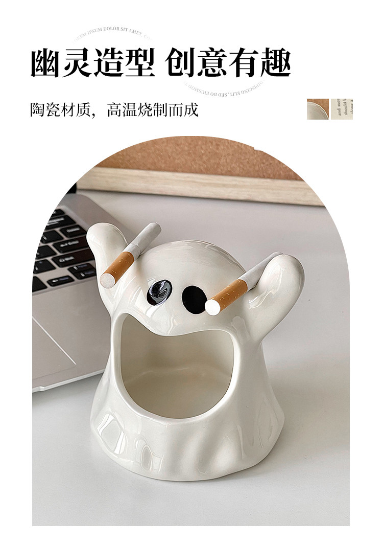 送灭烟沙 高级感创意幽灵烟灰缸陶瓷ins网红小众送礼摆件家用客厅