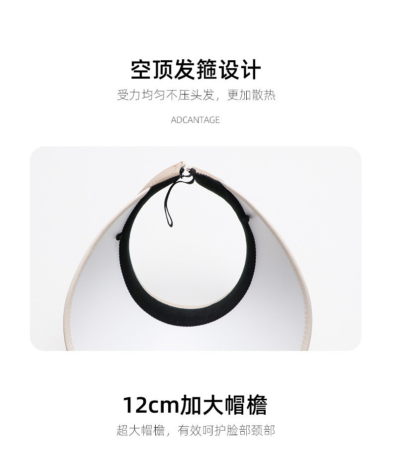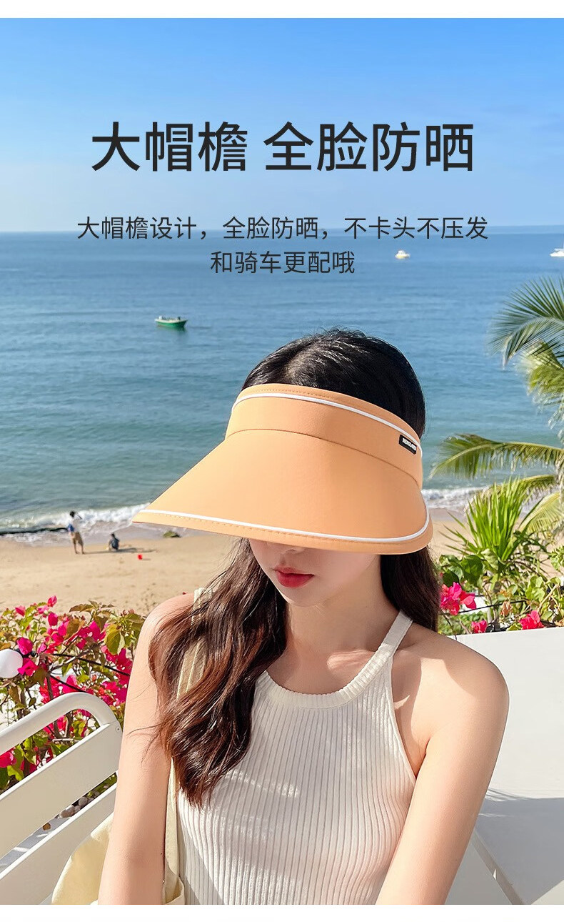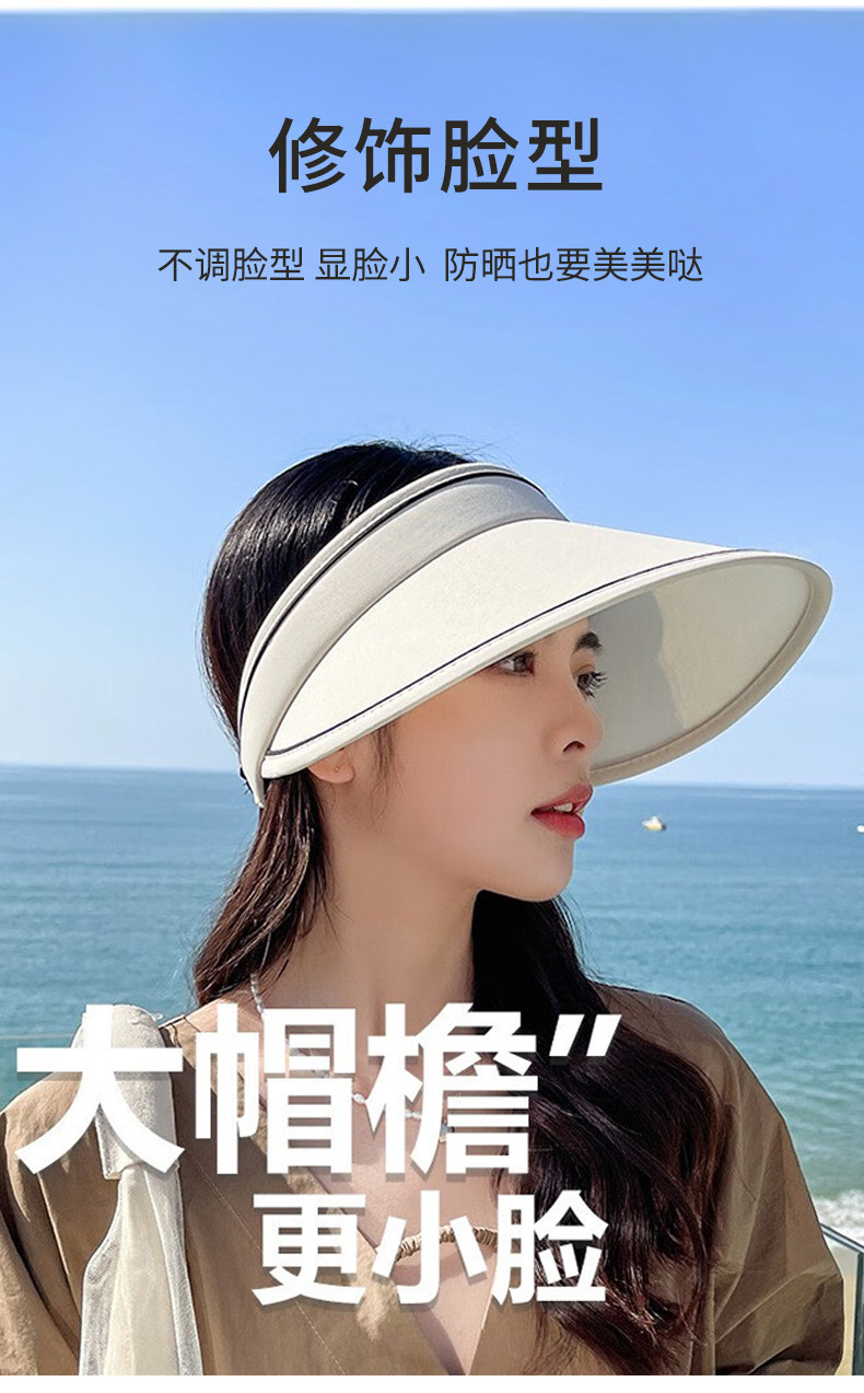 夏季大帽檐空顶防晒帽女uv户外骑车防紫外线太阳帽子遮阳帽遮脸