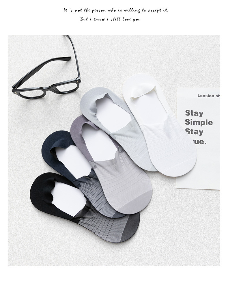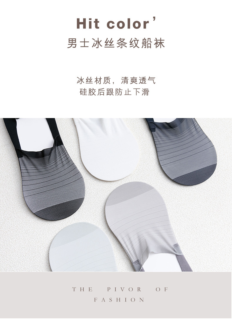 隐形袜子男士夏季薄款短袜冰丝细条纹浅口硅胶防滑不掉跟简约船袜