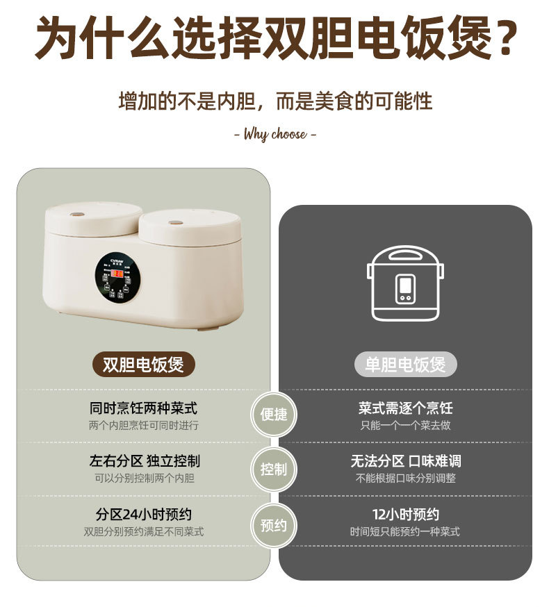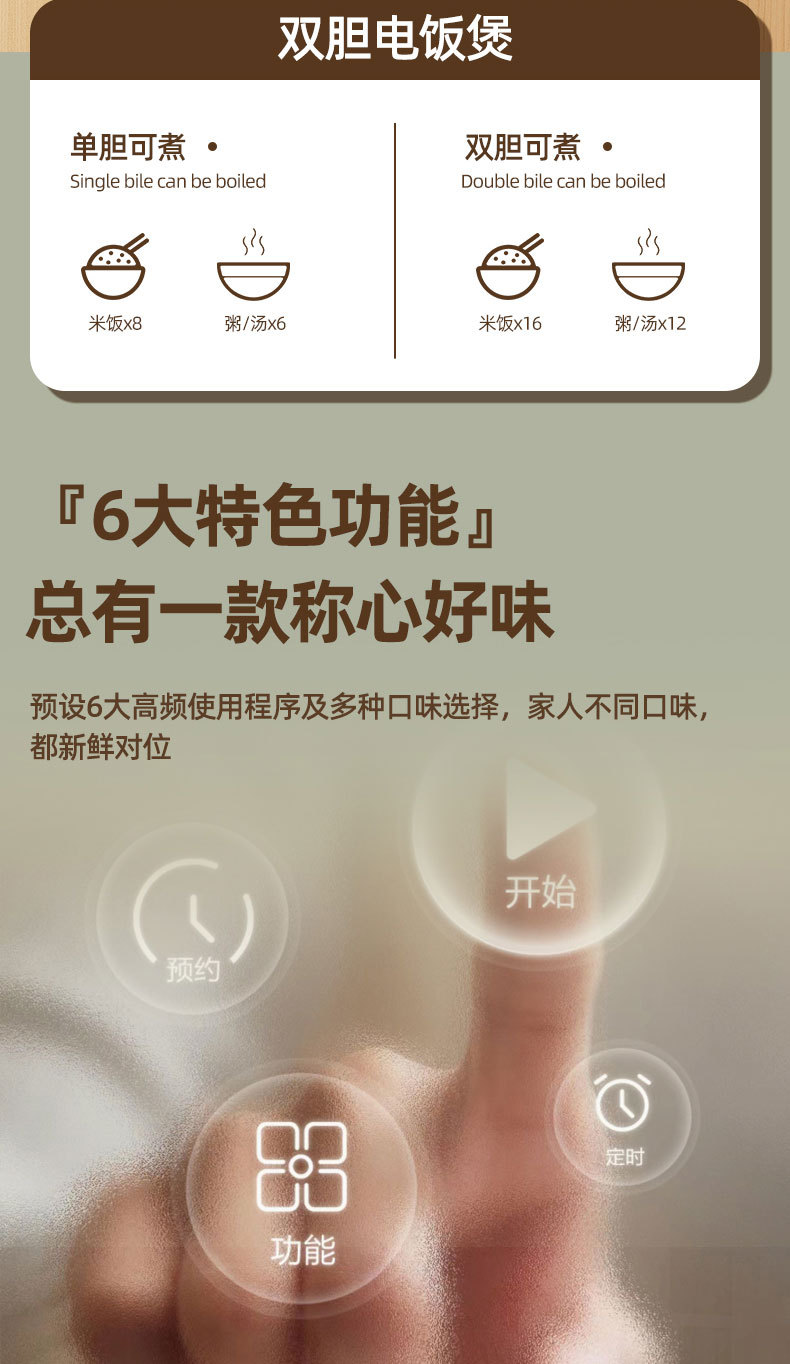新品智能双胆电饭煲家用多功能双拼蒸煮电饭锅迷你小型电饭煲批发