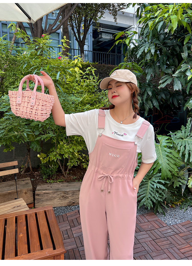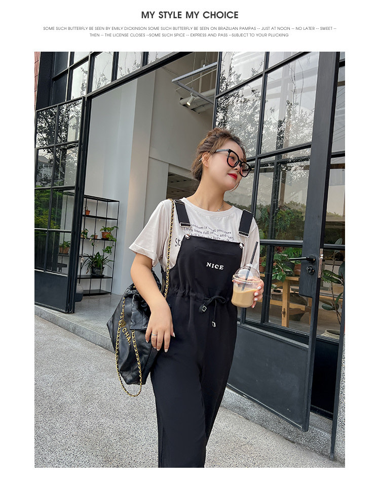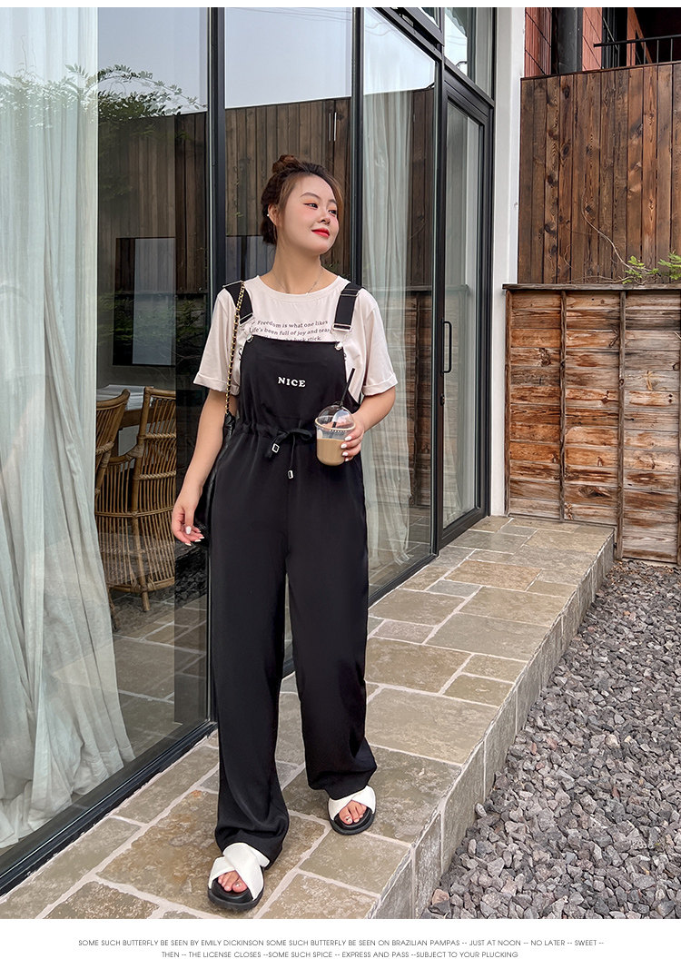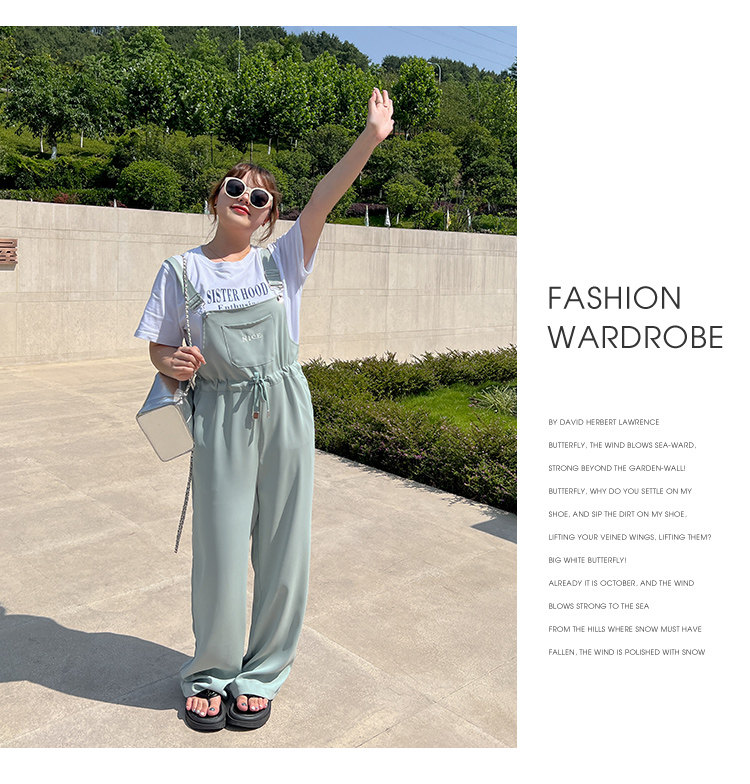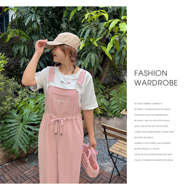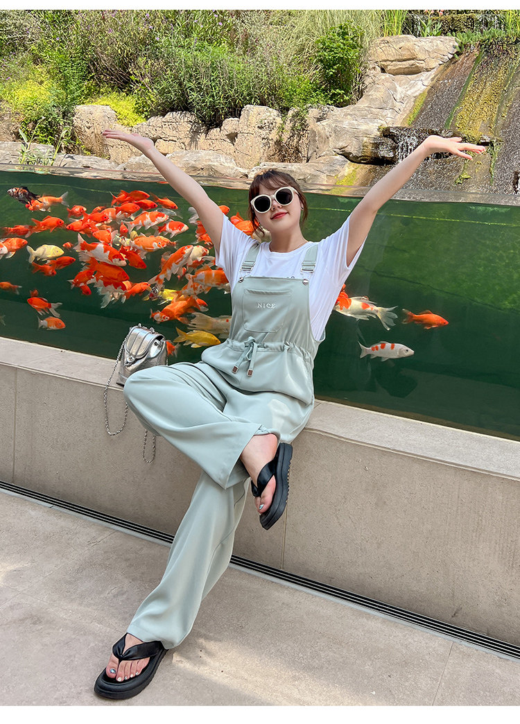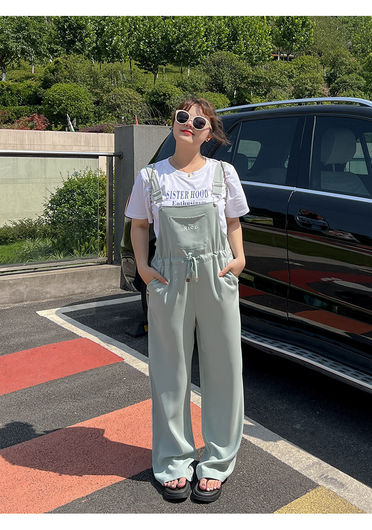 大码百分百/2023夏新款女装微胖mm显瘦高腰阔腿背带裤直筒休闲裤