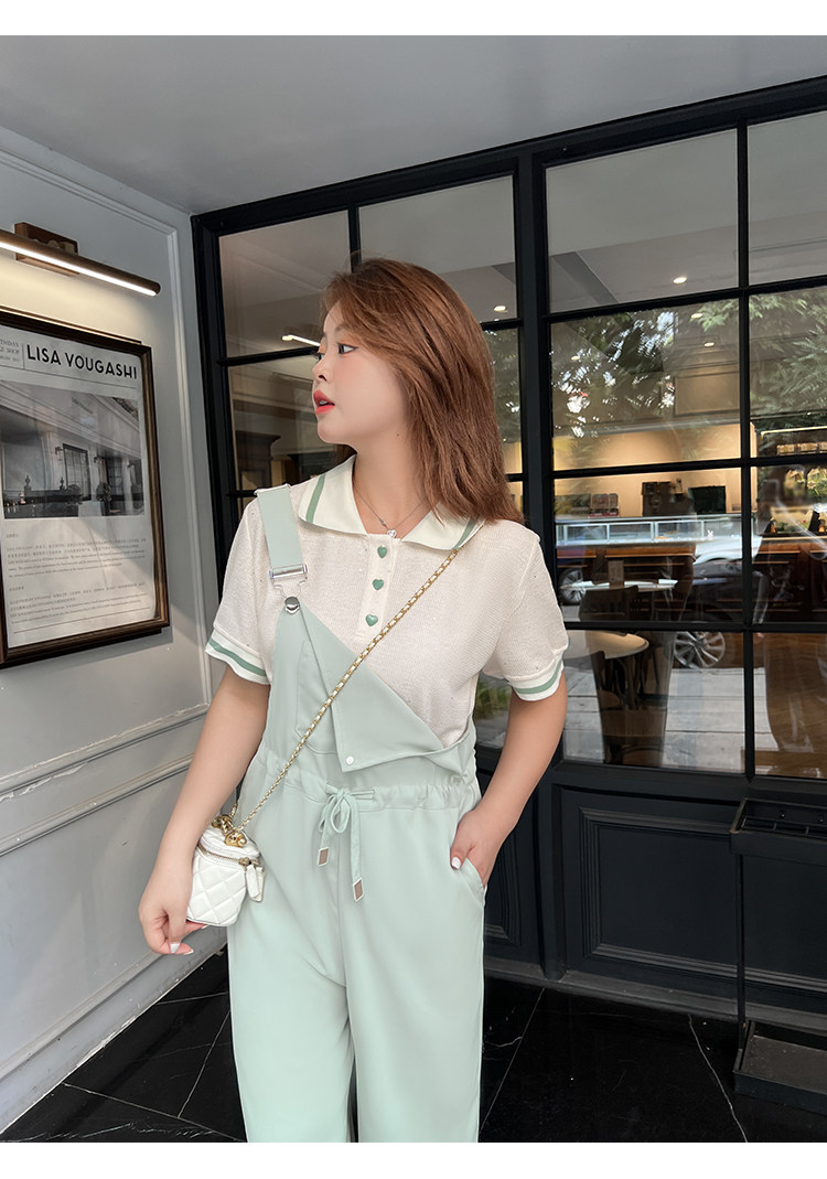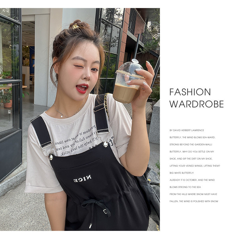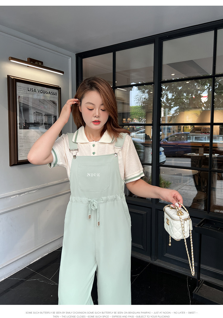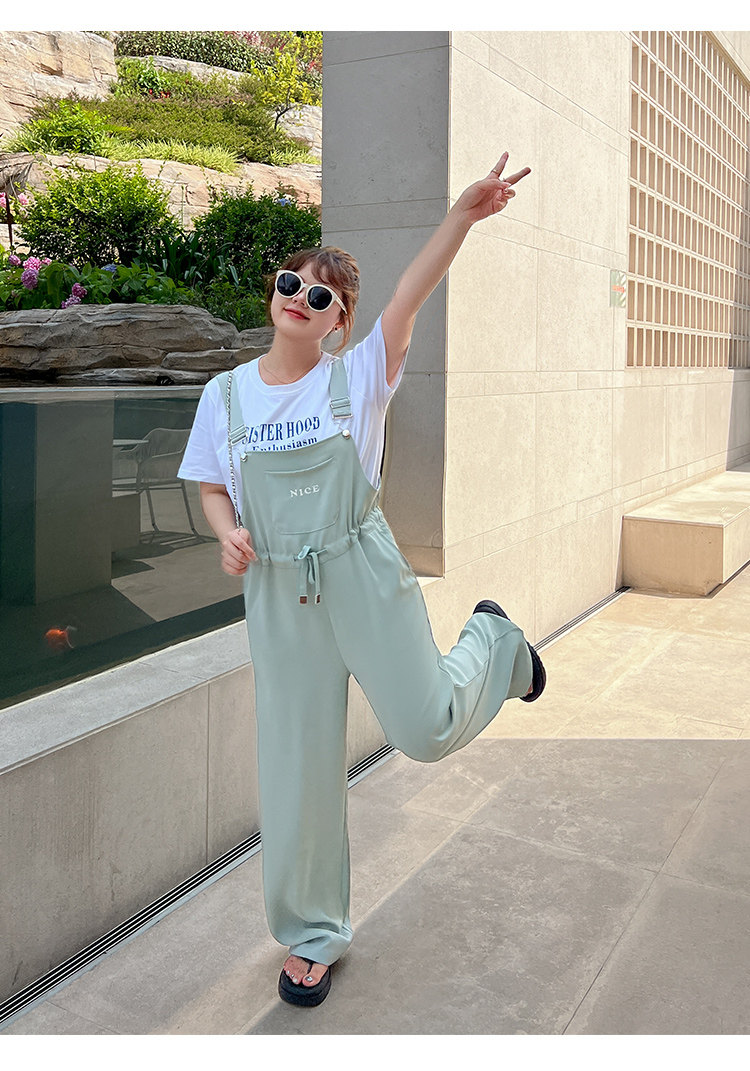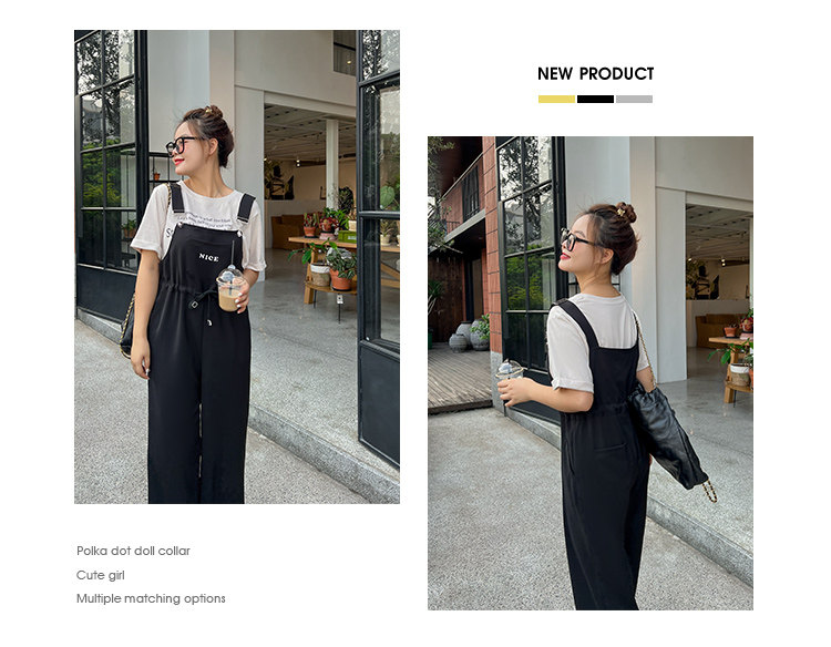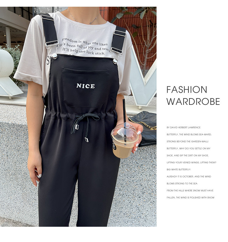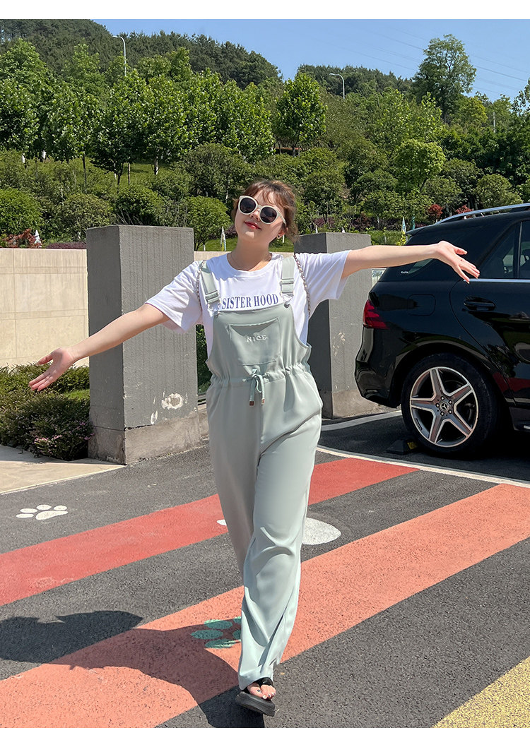 大码百分百/2023夏新款女装微胖mm显瘦高腰阔腿背带裤直筒休闲裤