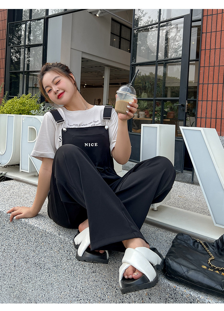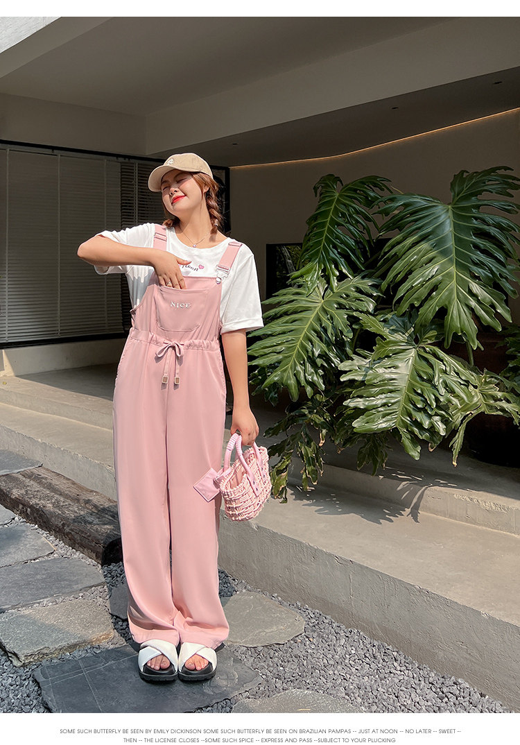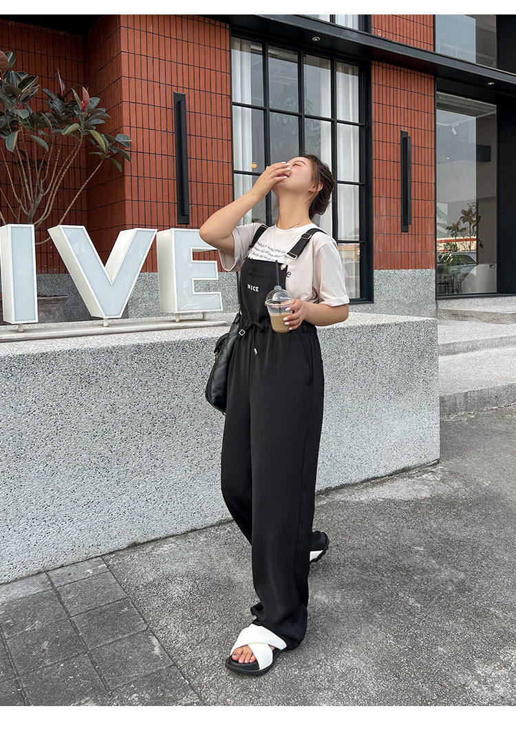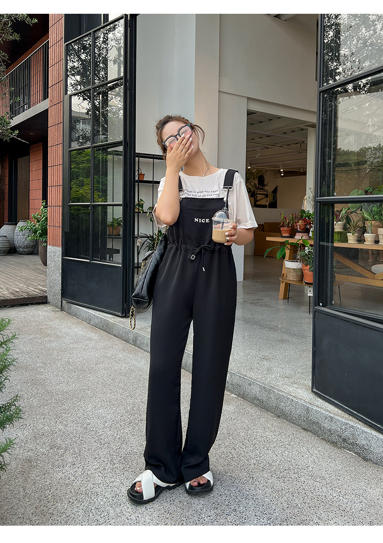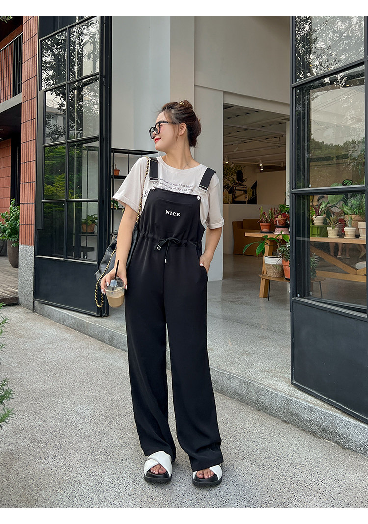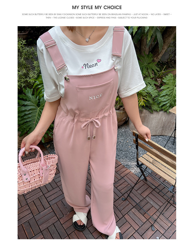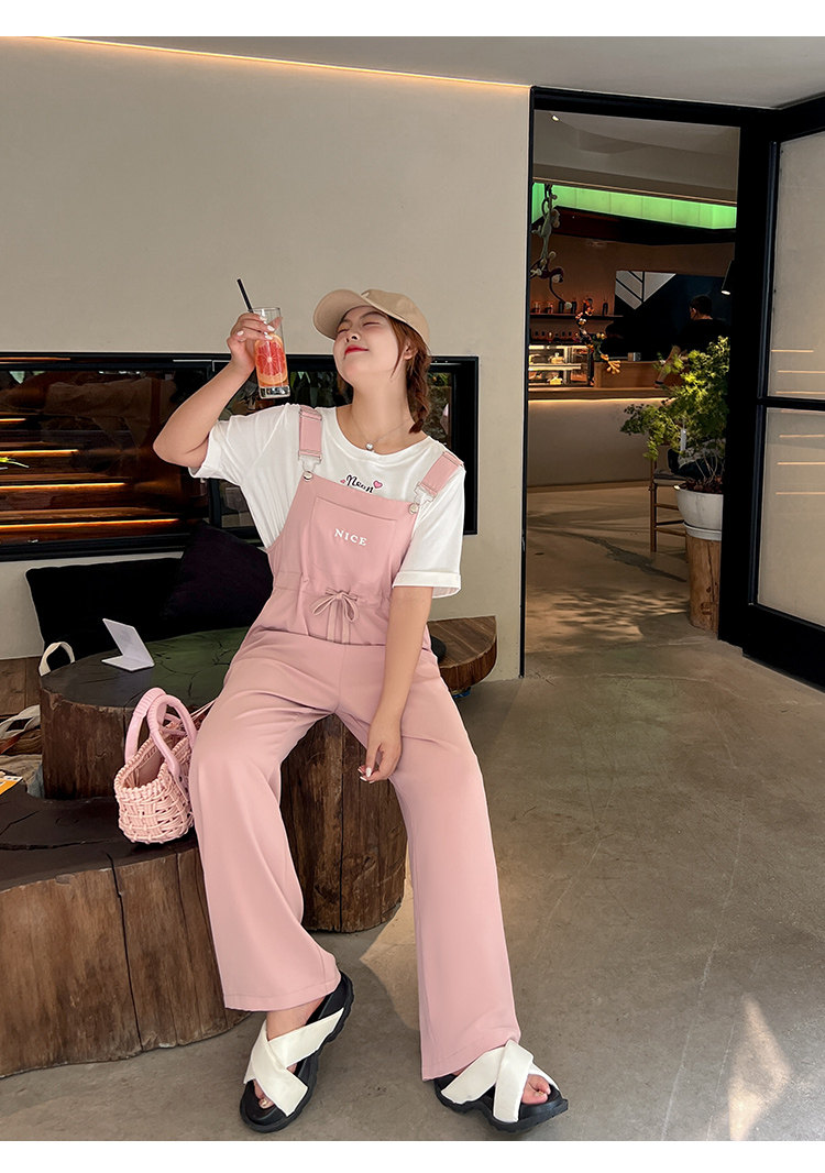 빅사이즈 여성 하이웨스트 와이드 멜빵 일자 캐주얼팬츠
