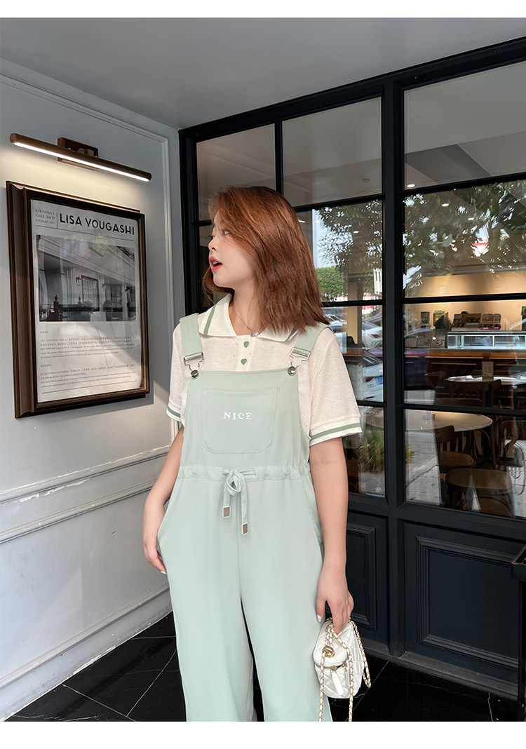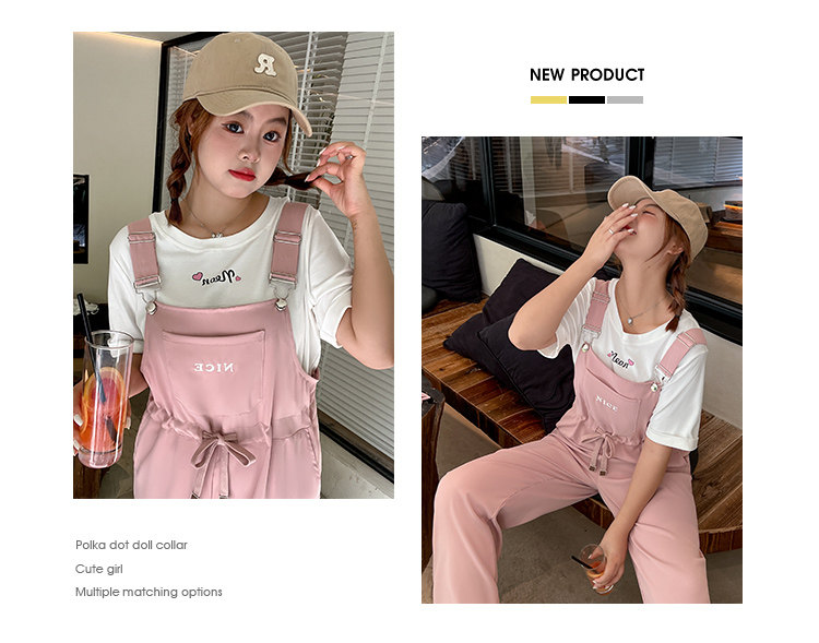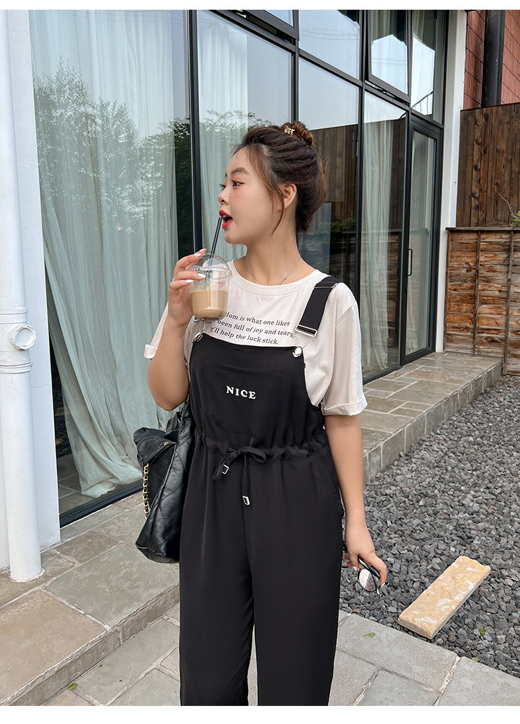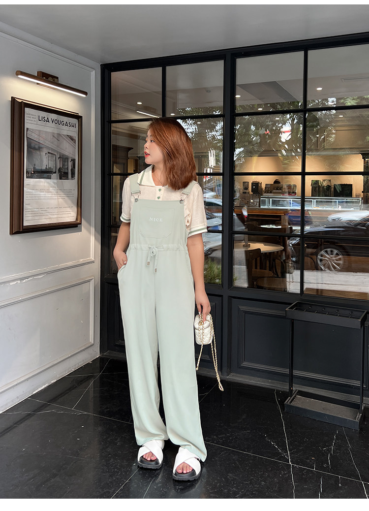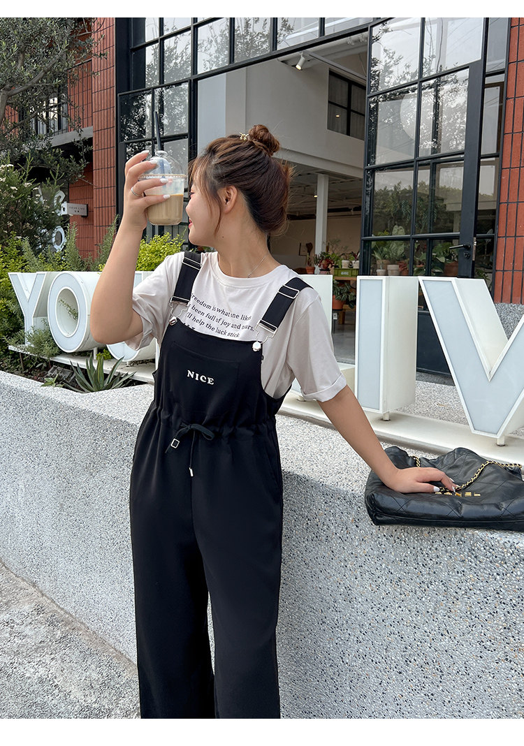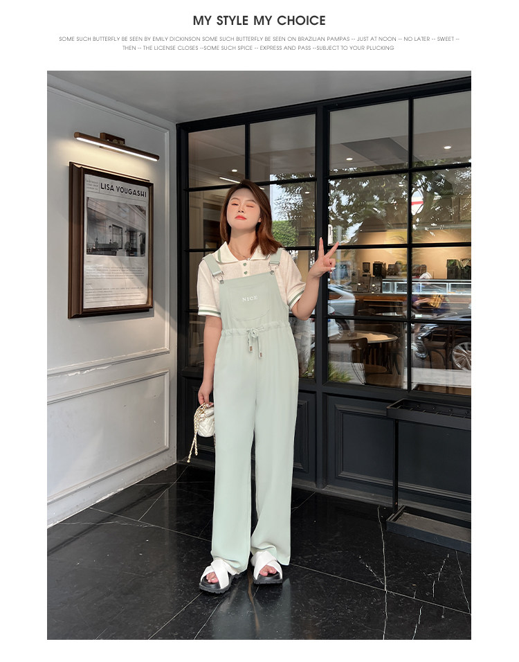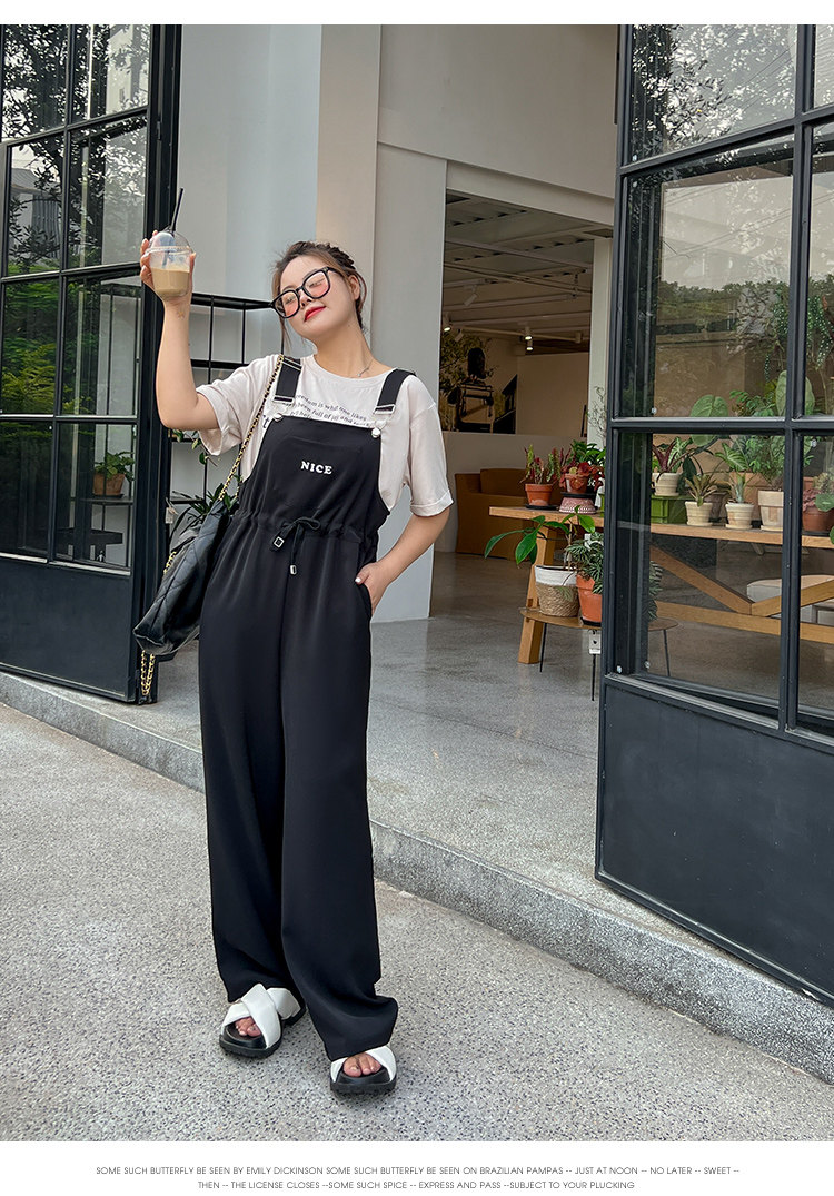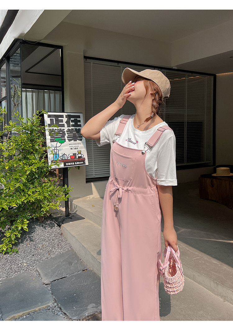 빅사이즈 여성 하이웨스트 와이드 멜빵 일자 캐주얼팬츠