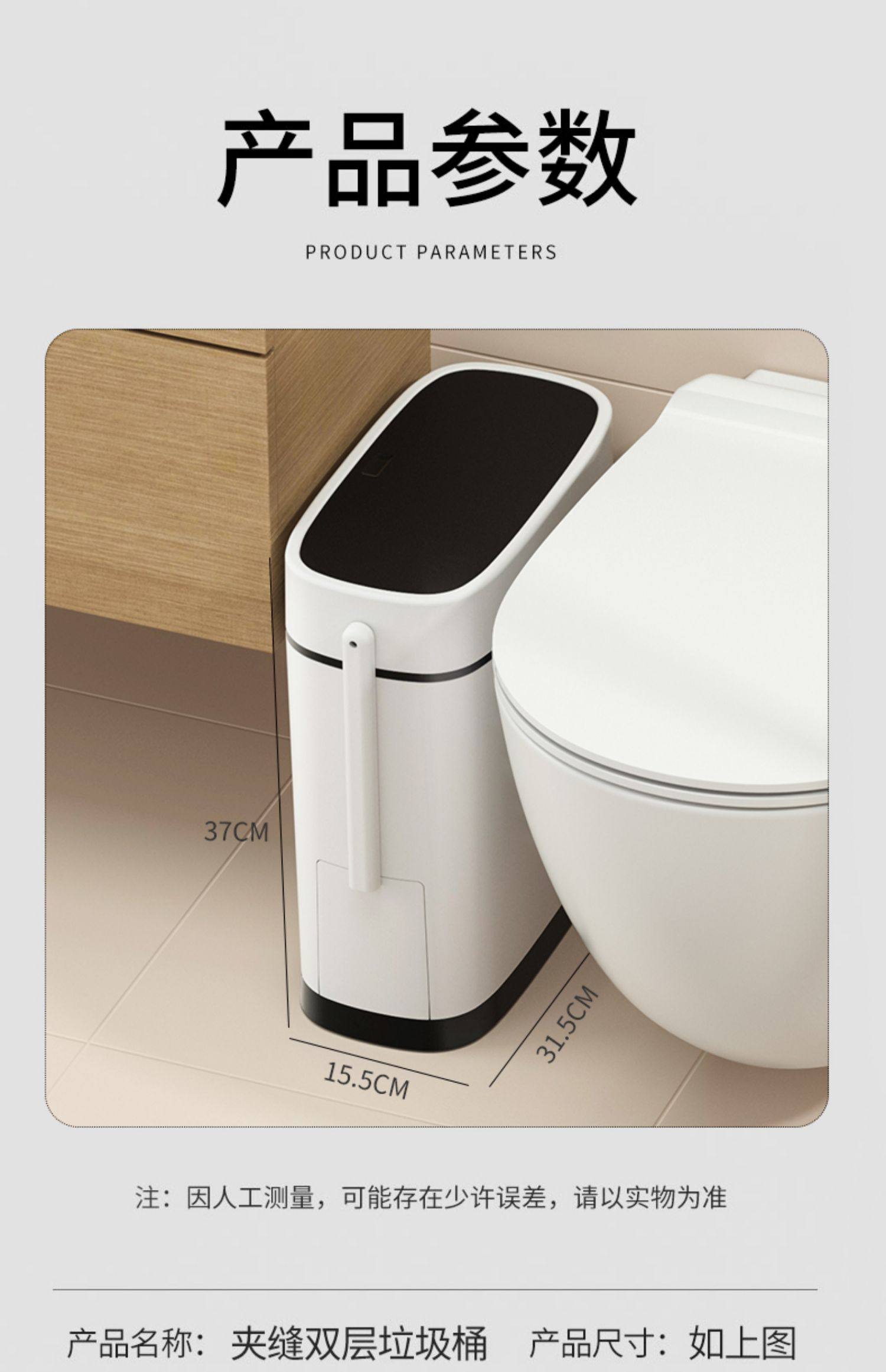 卫生间垃圾桶厕所家用有盖窄小卫生桶夹缝圾按压式带盖马桶刷纸篓