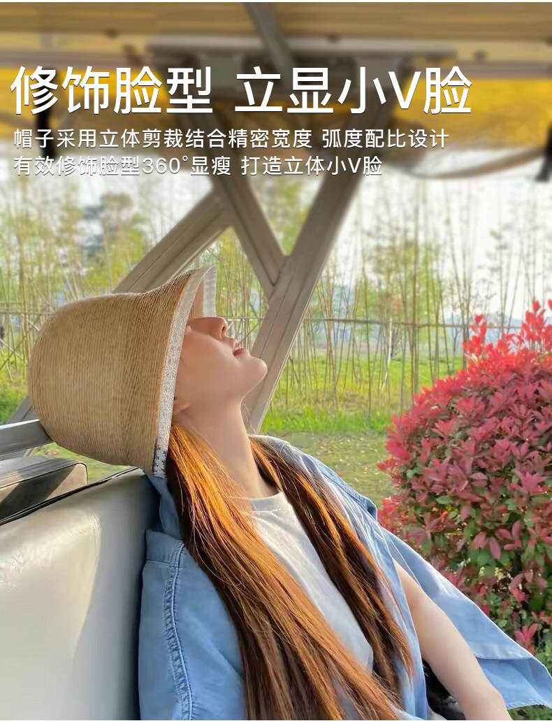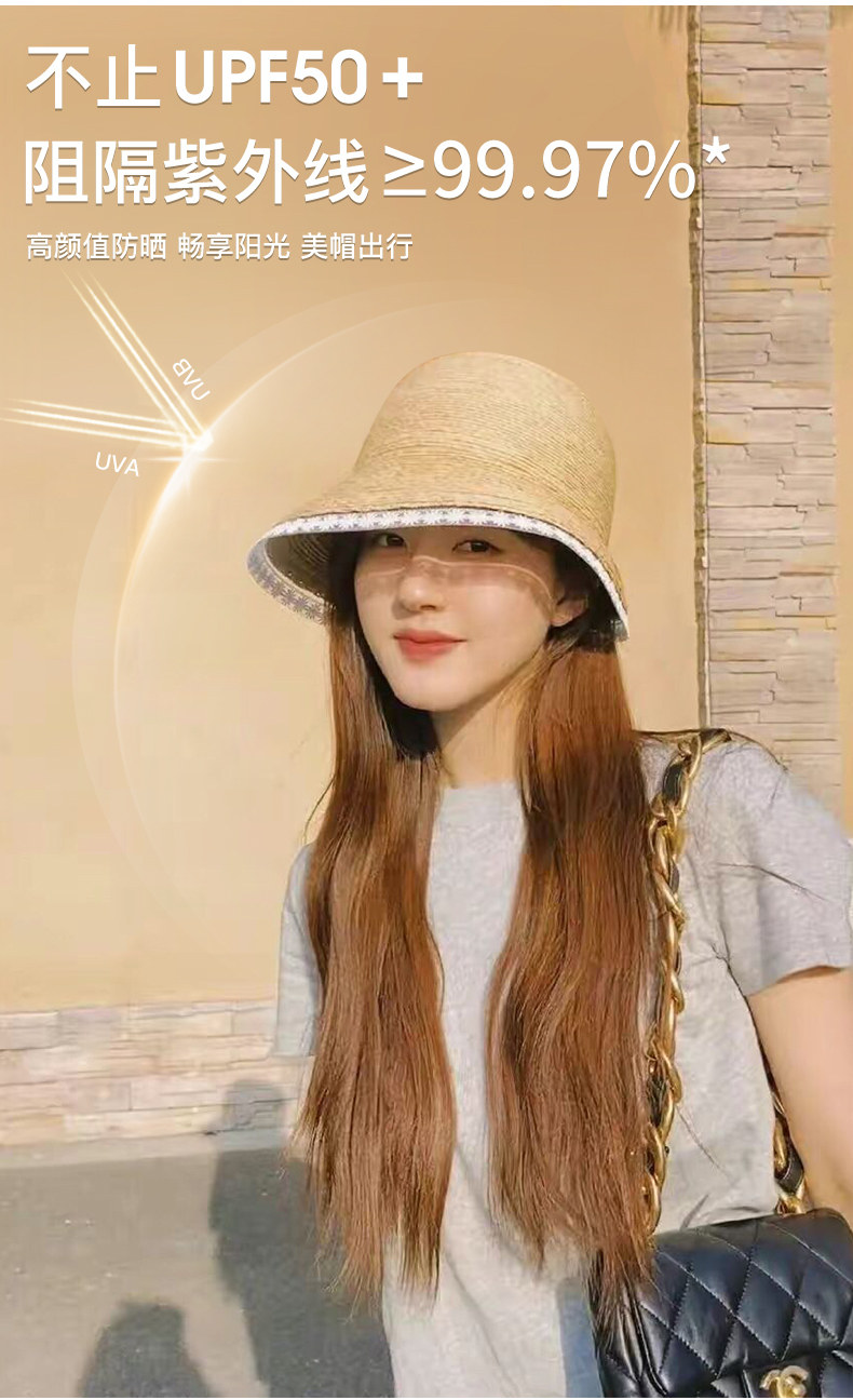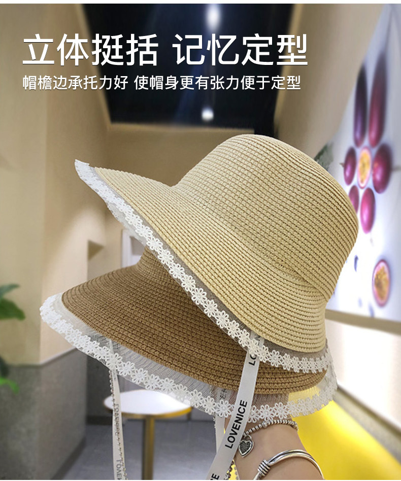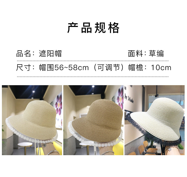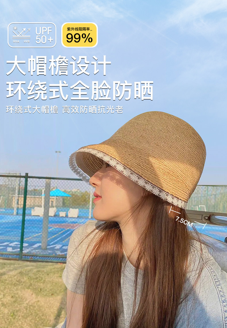 RD防晒帽女蕾丝草帽太阳帽防晒网红女士帽子洋气好看的遮阳帽