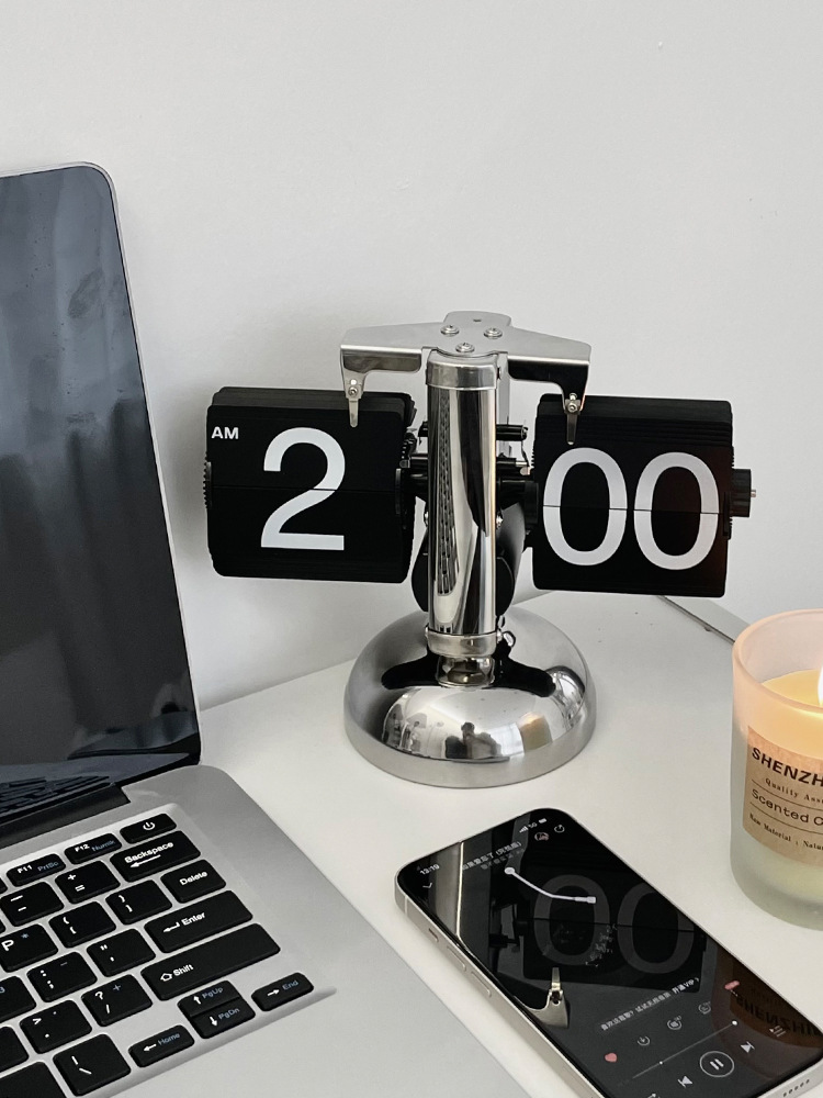 桌面网红时钟欧式机械电子自动翻页客厅装饰创意复古乔迁新居礼品