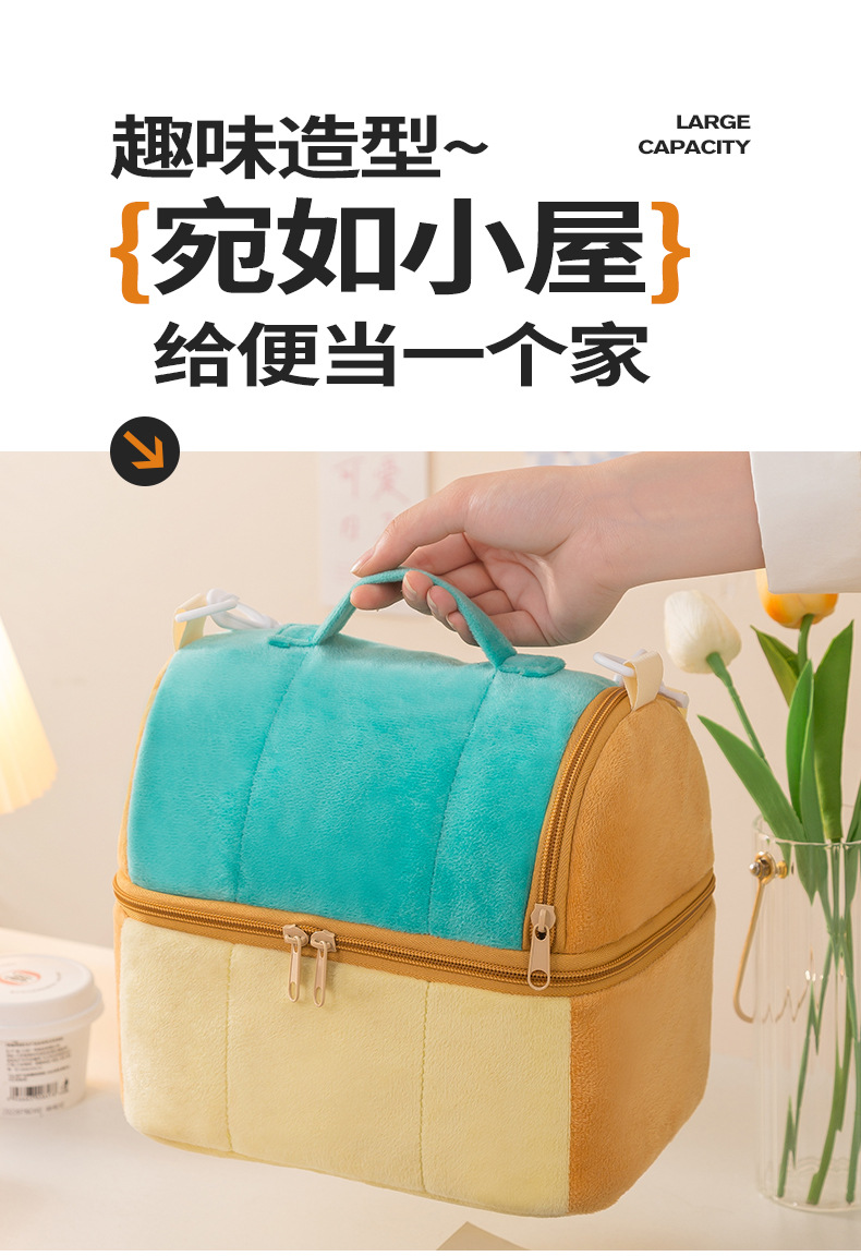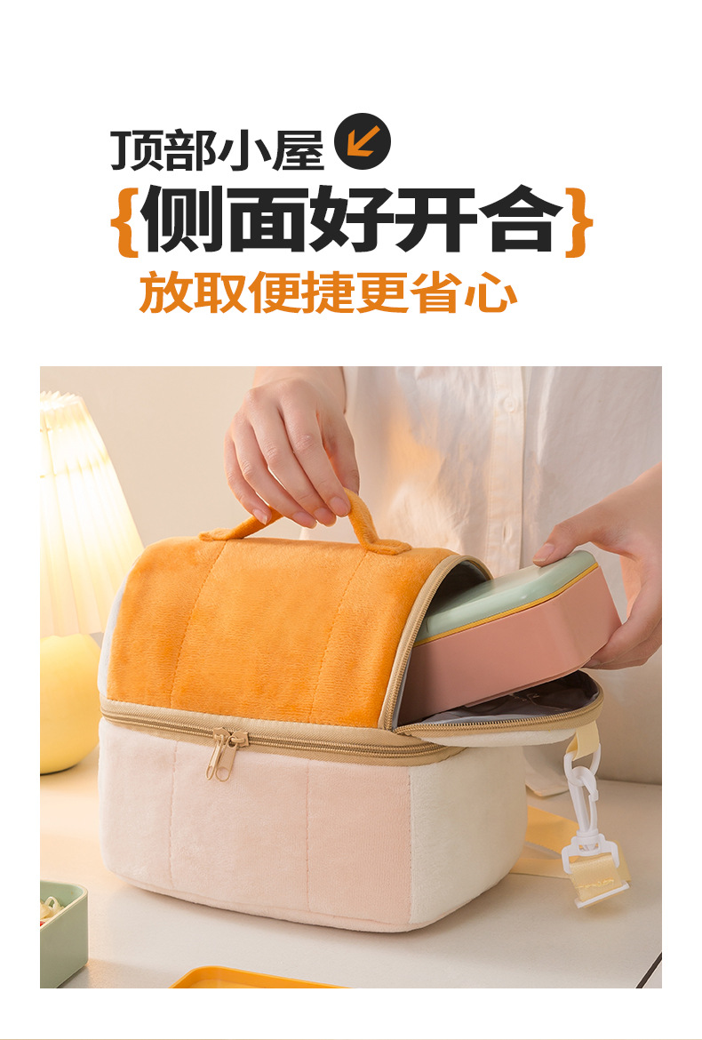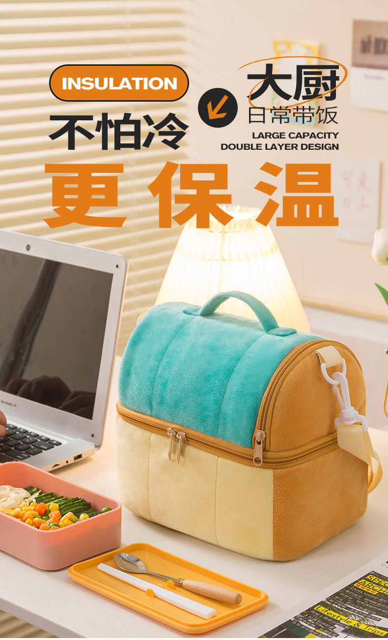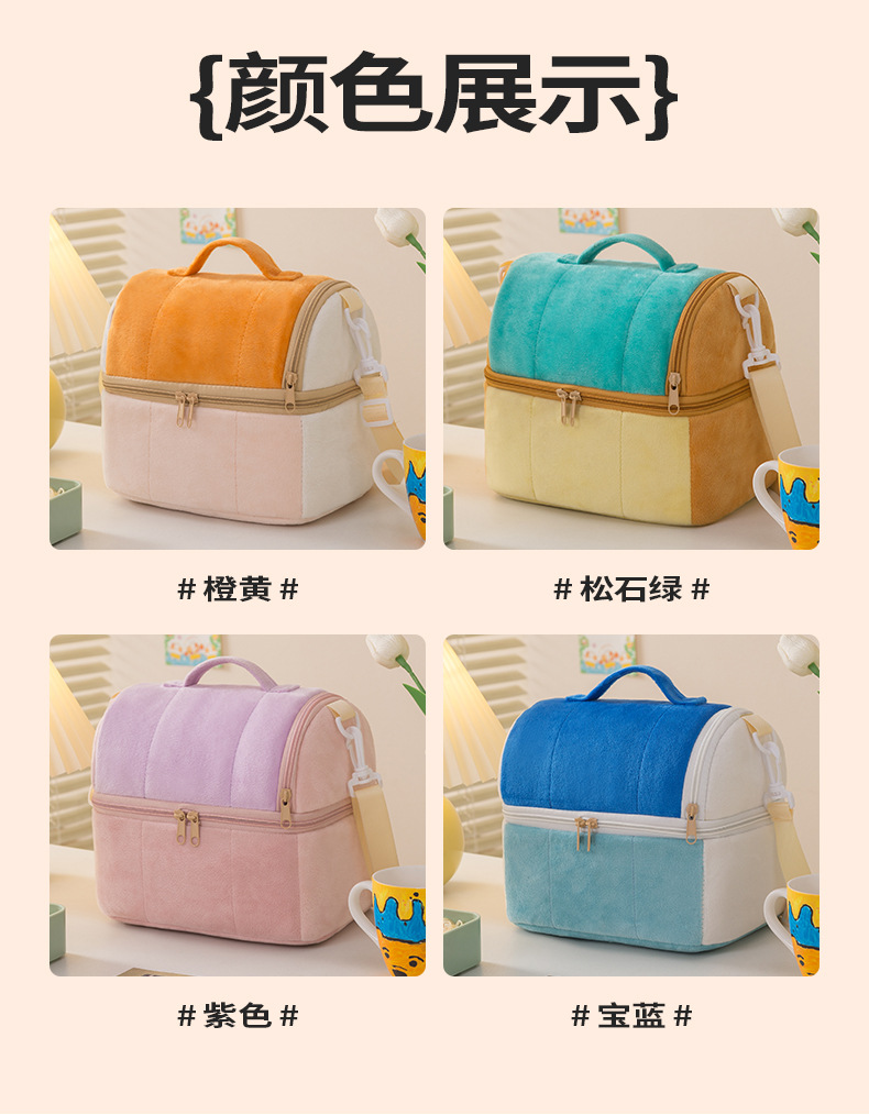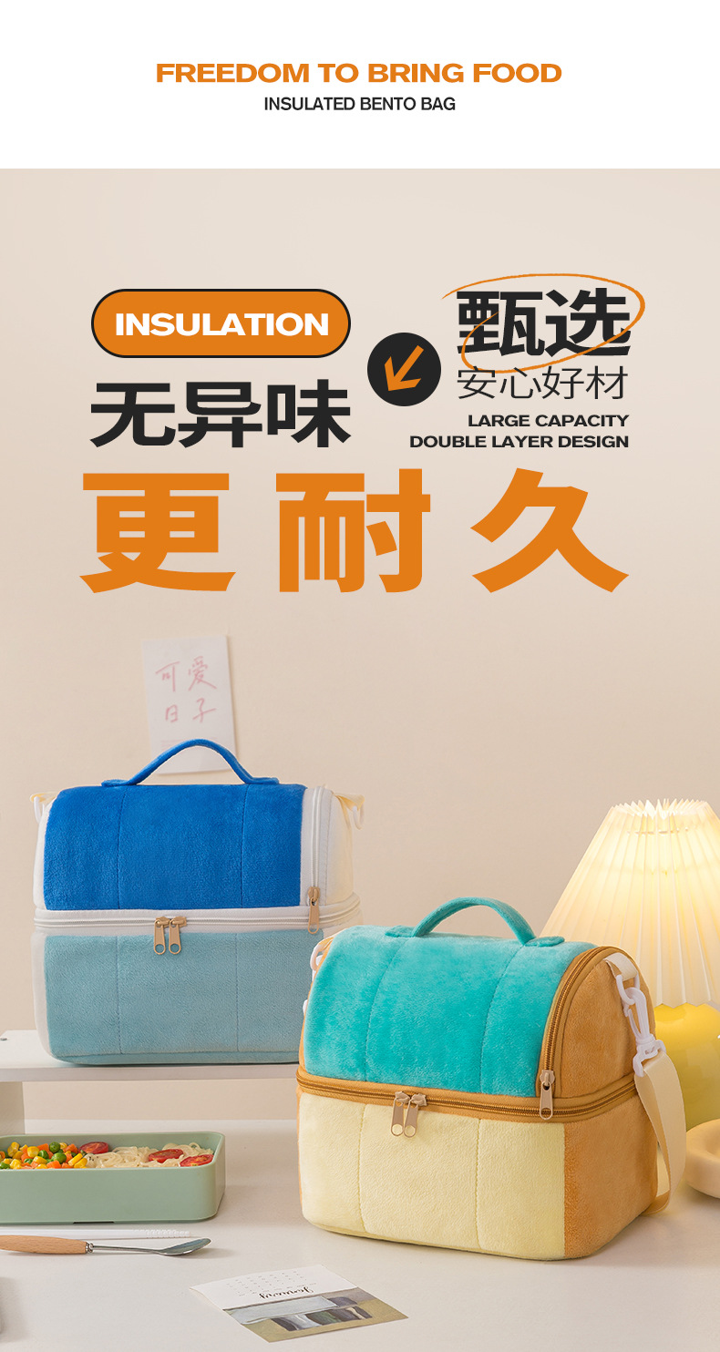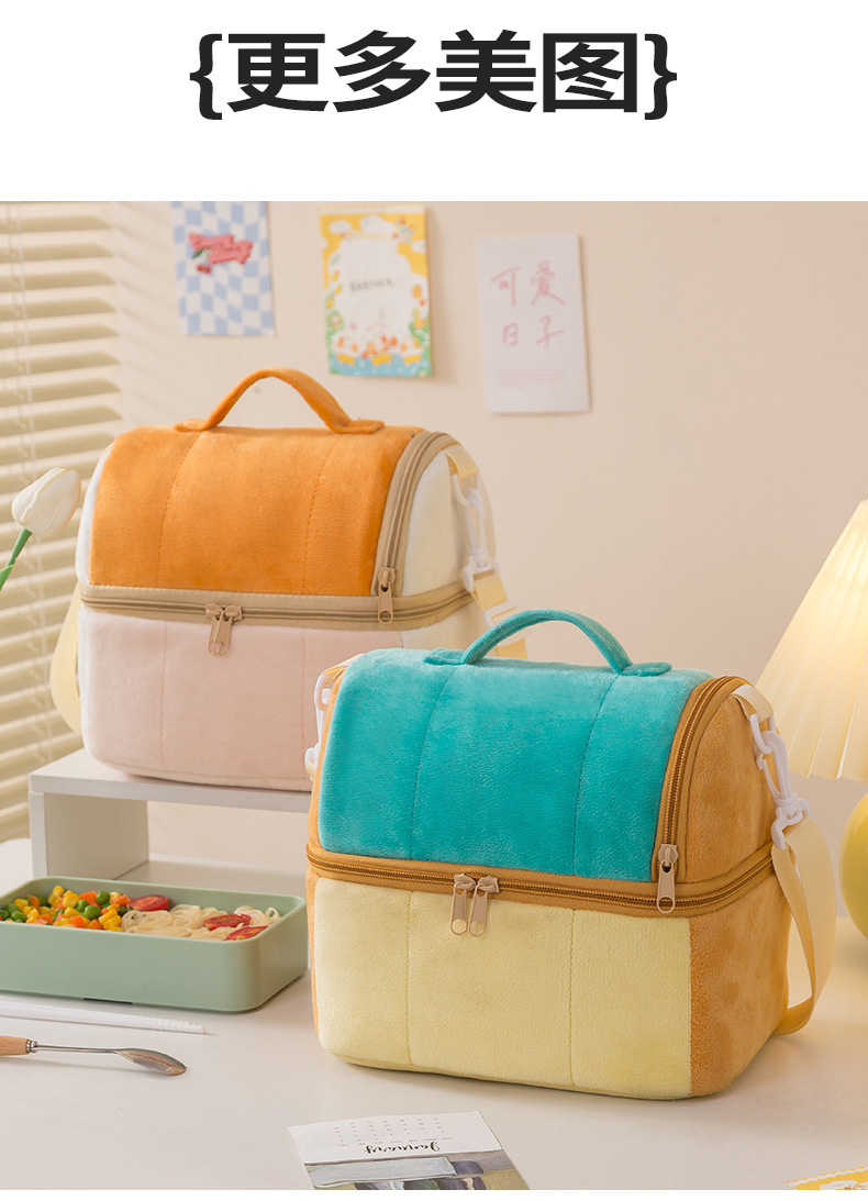 绒布吐司便当包保温包手提饭盒袋学生午餐包加厚保温袋大容量冰包
