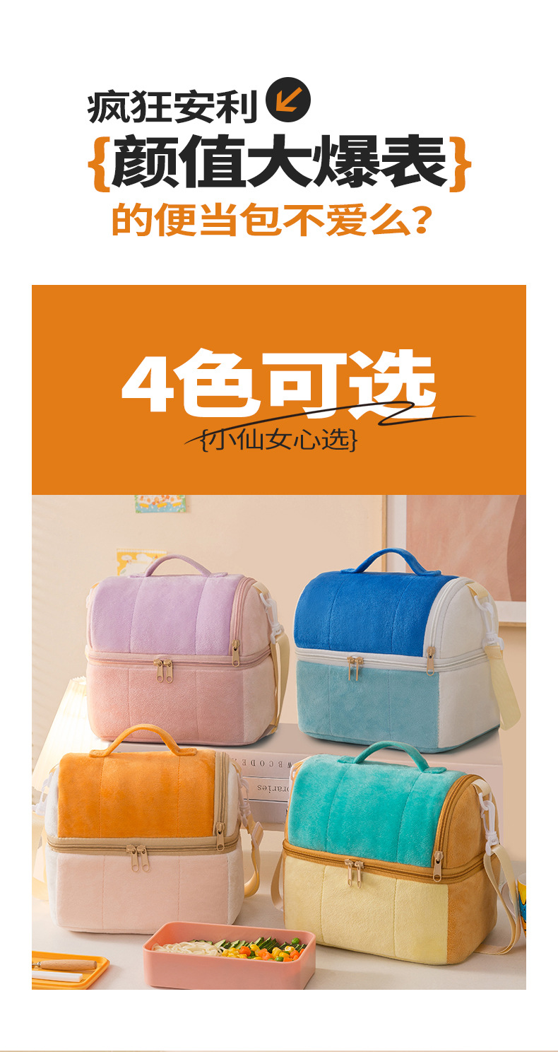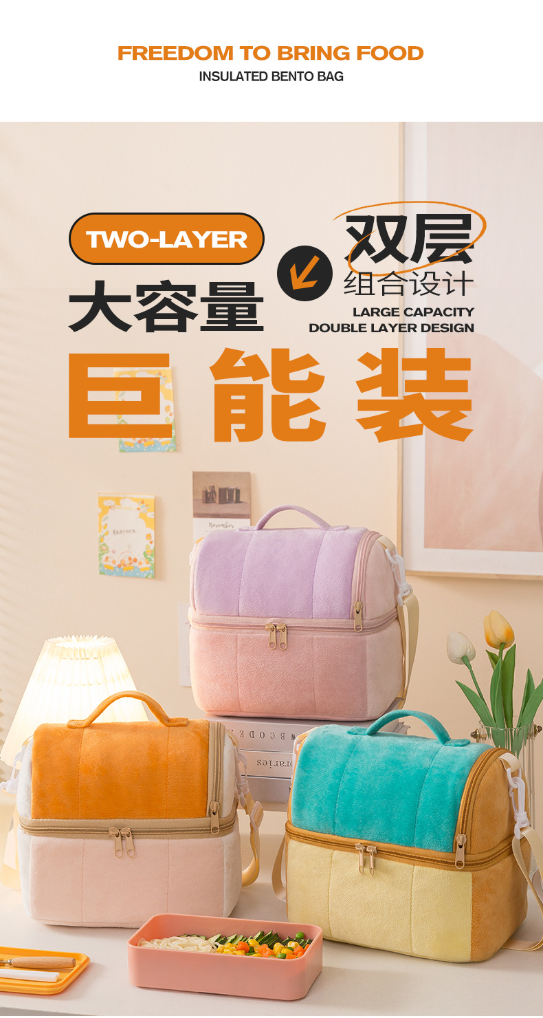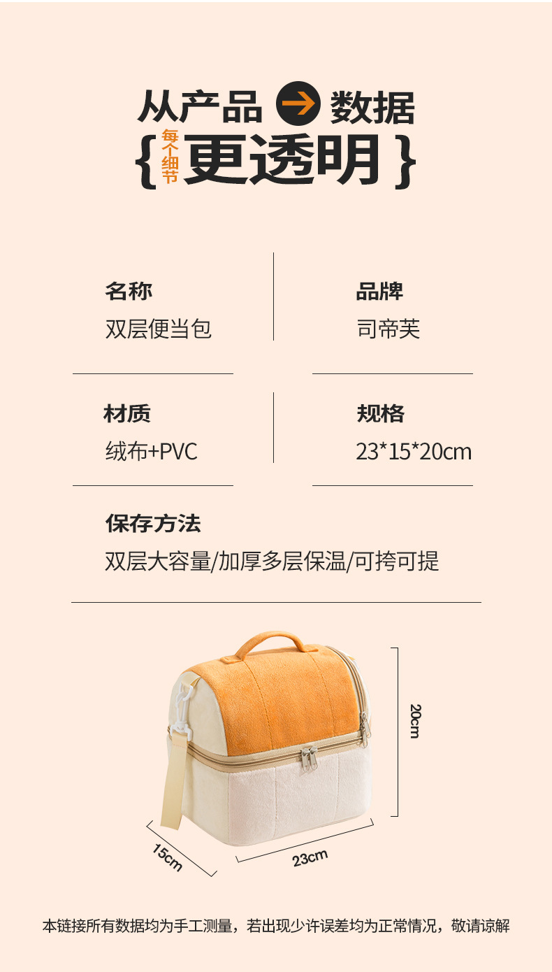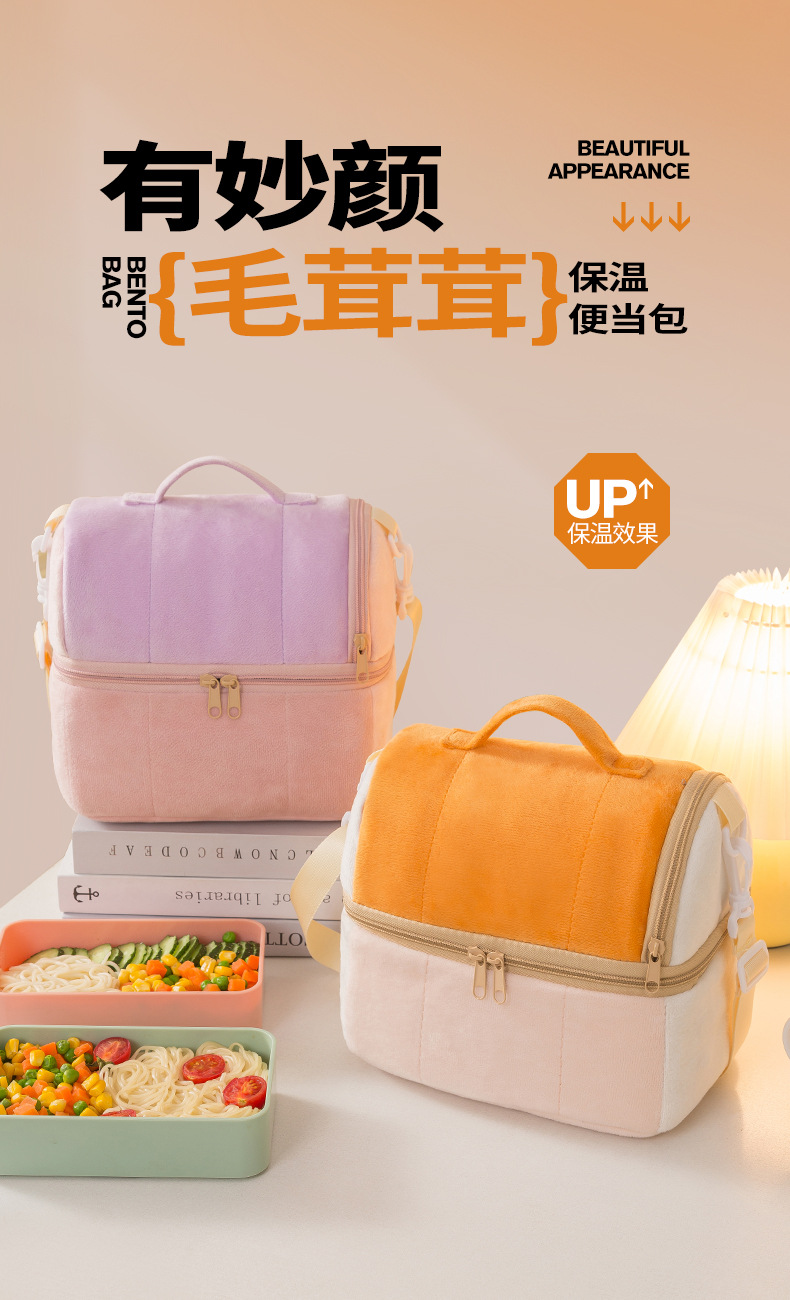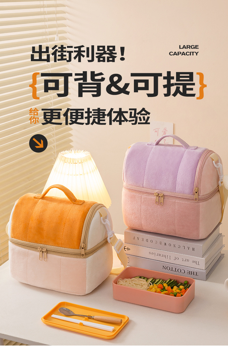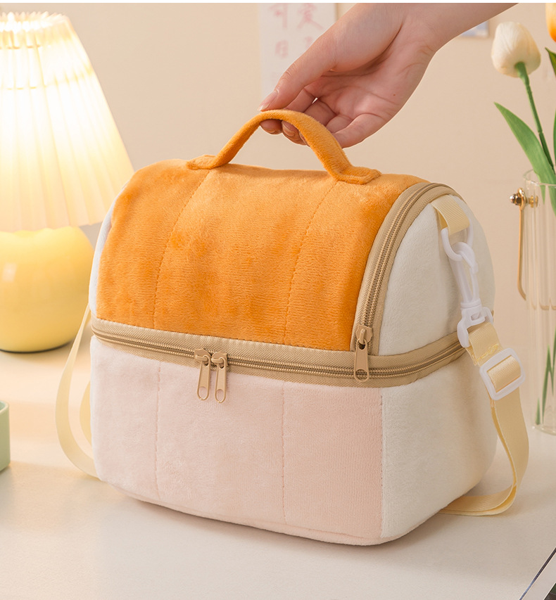 绒布吐司便当包保温包手提饭盒袋学生午餐包加厚保温袋大容量冰包