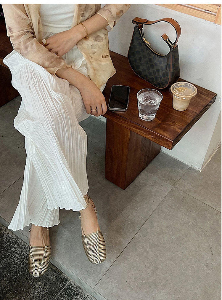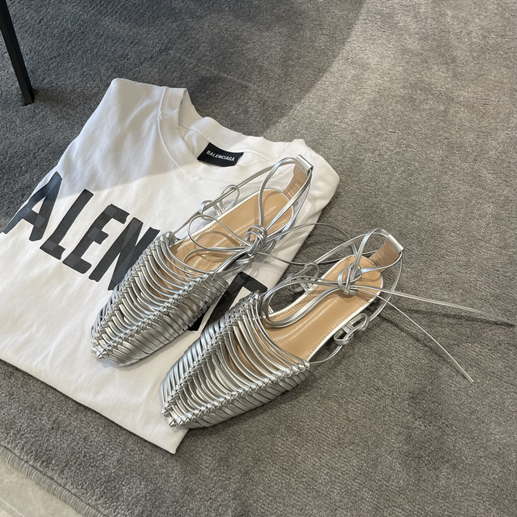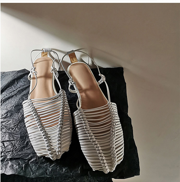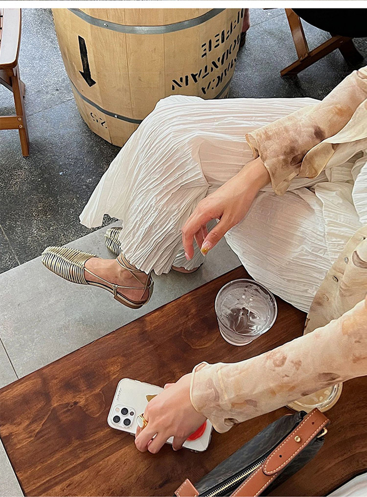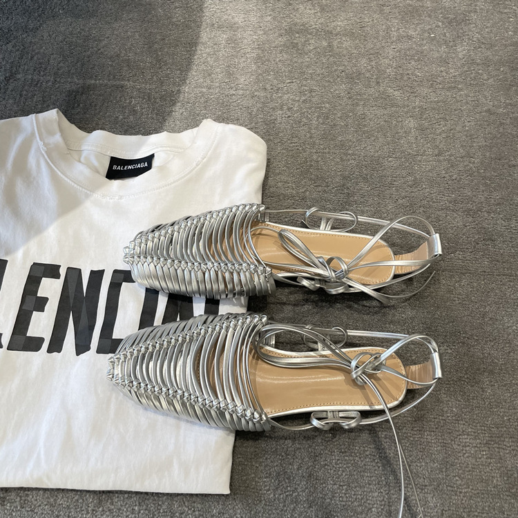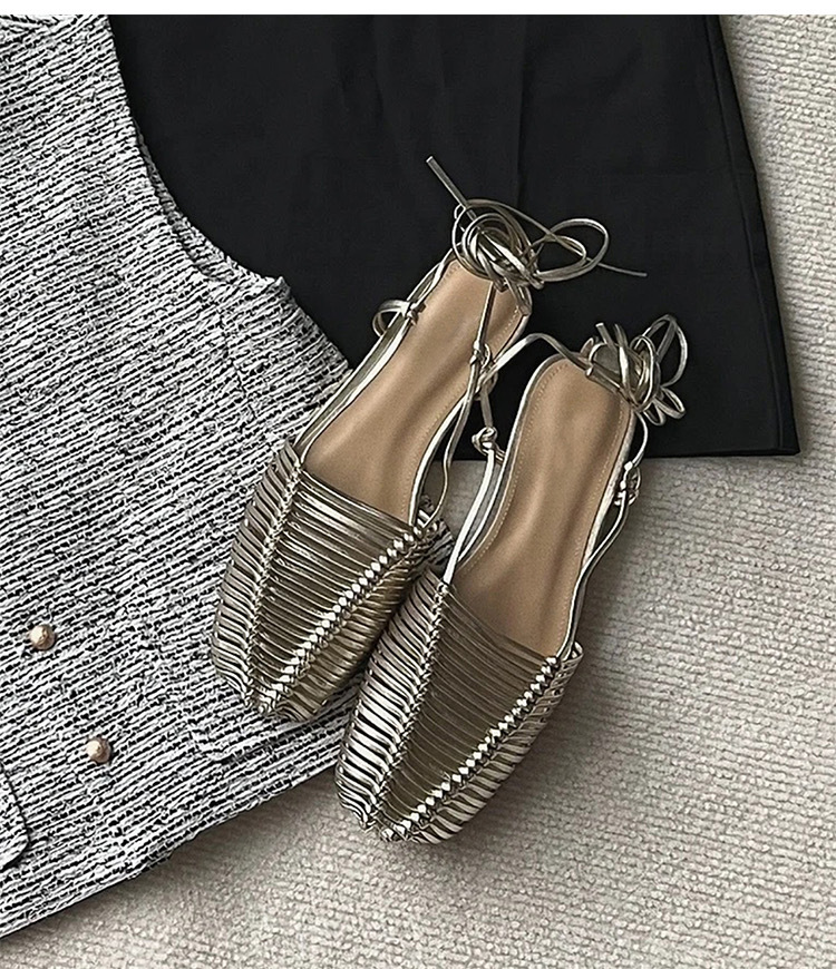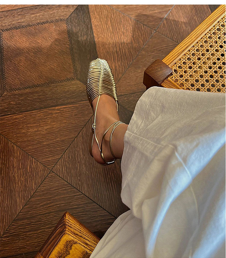 羊皮版~2023年小众脚环绑带真皮罗马凉鞋女夏平底包头编织凉拖鞋