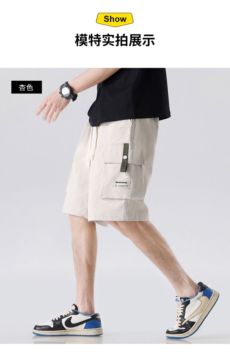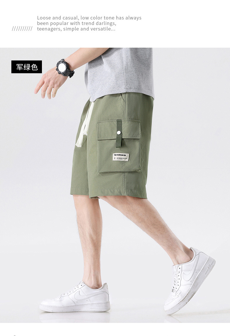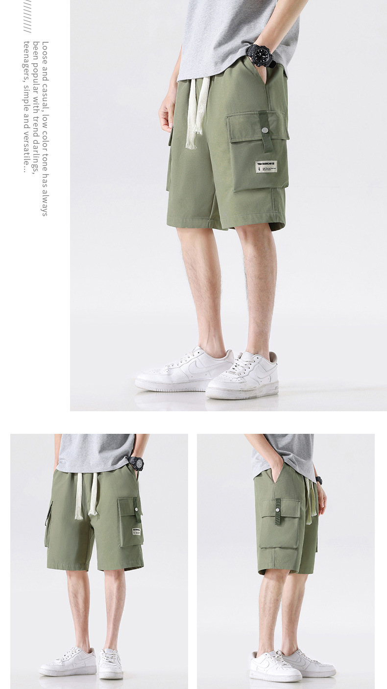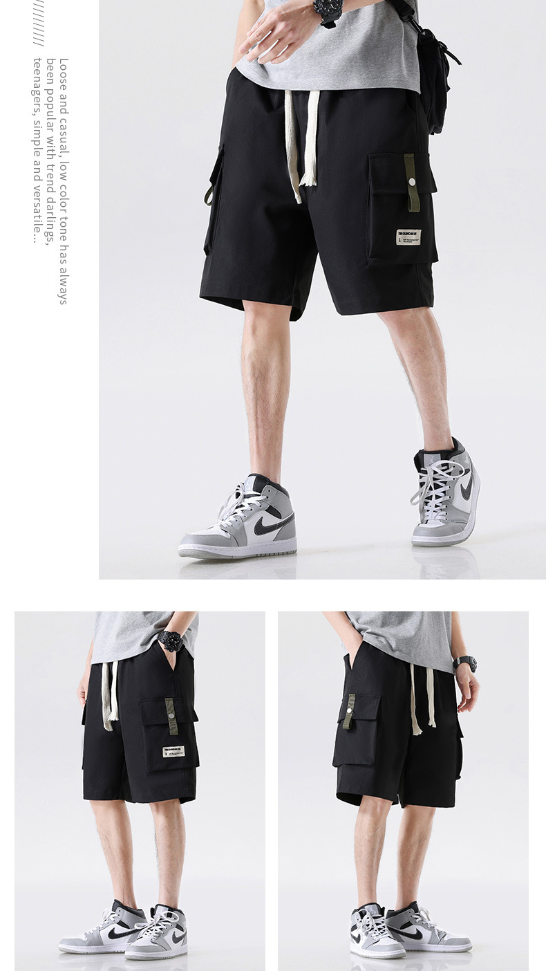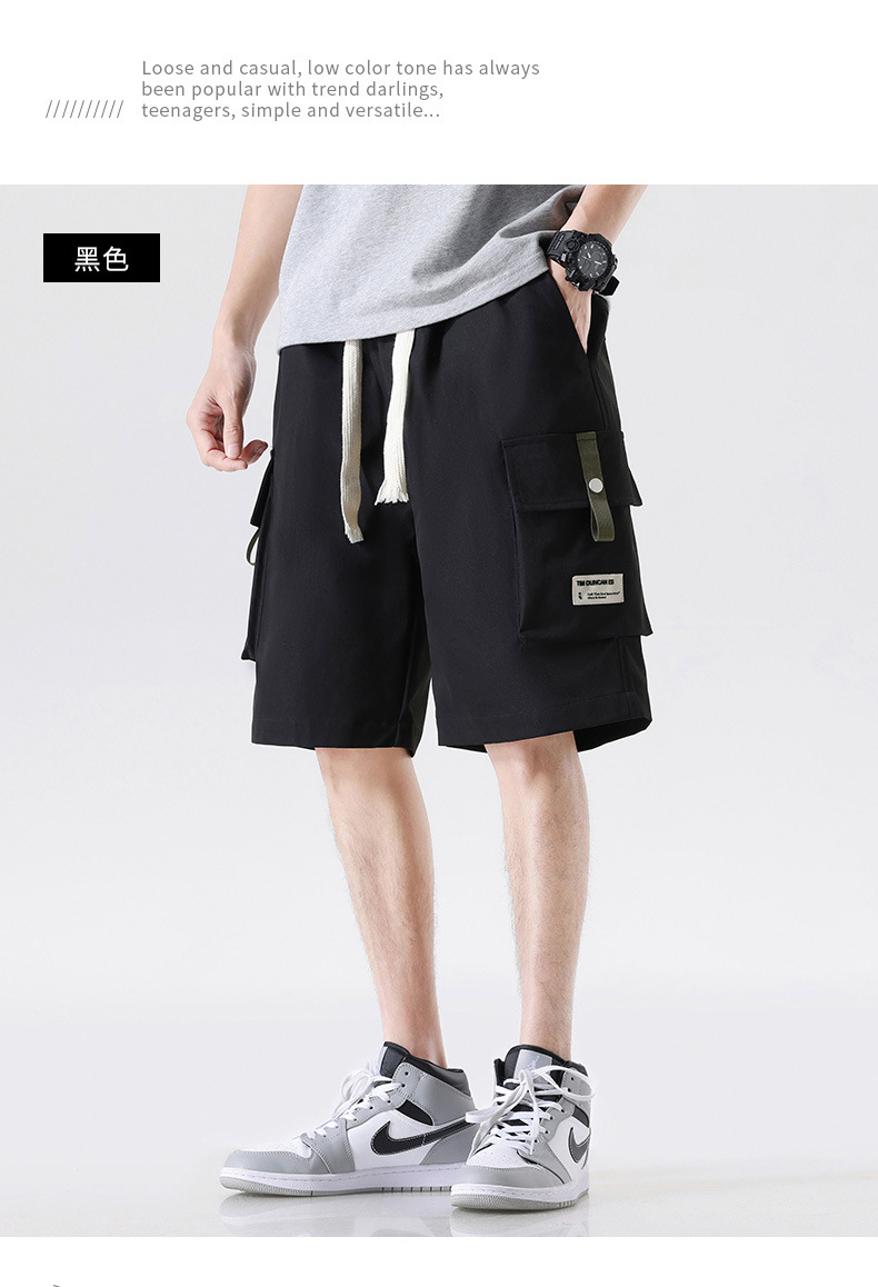夏季新款男士韩版立体多口袋车标纯色休闲运动健身五分裤情侣短裤