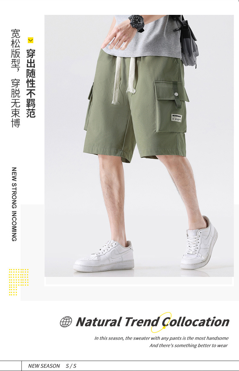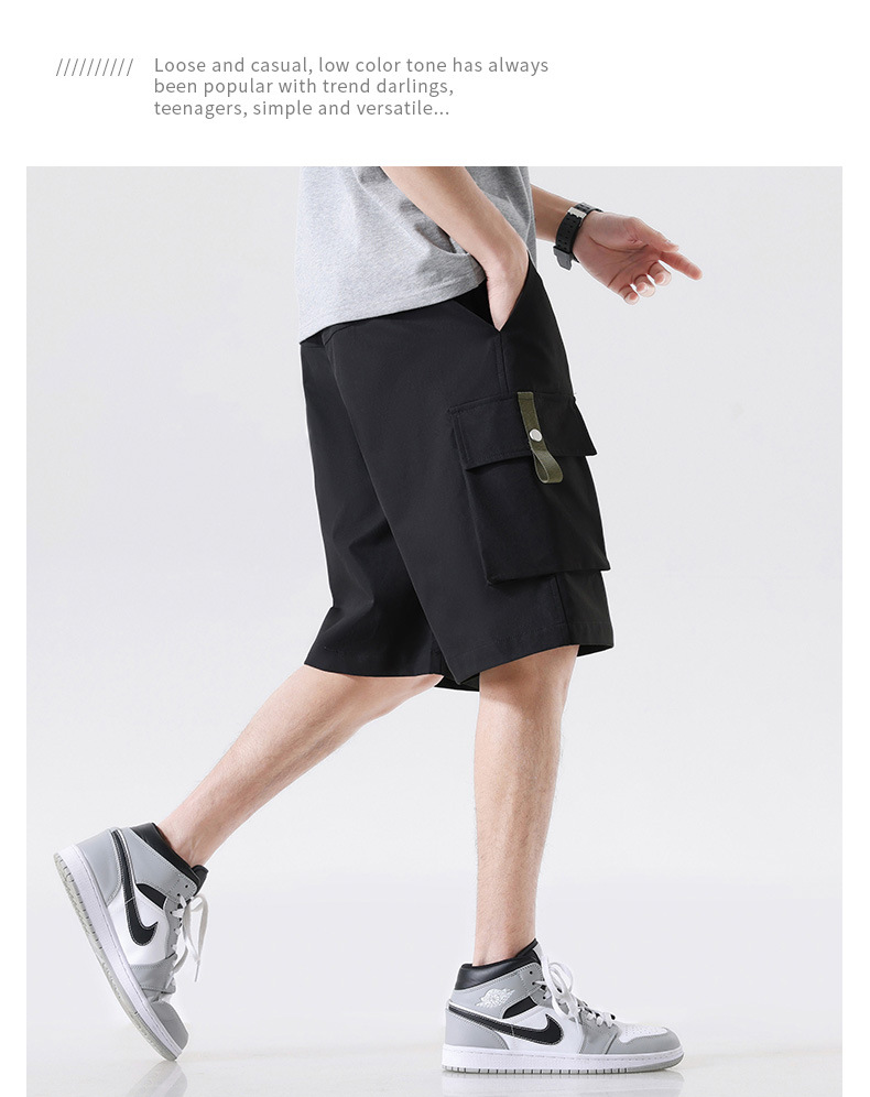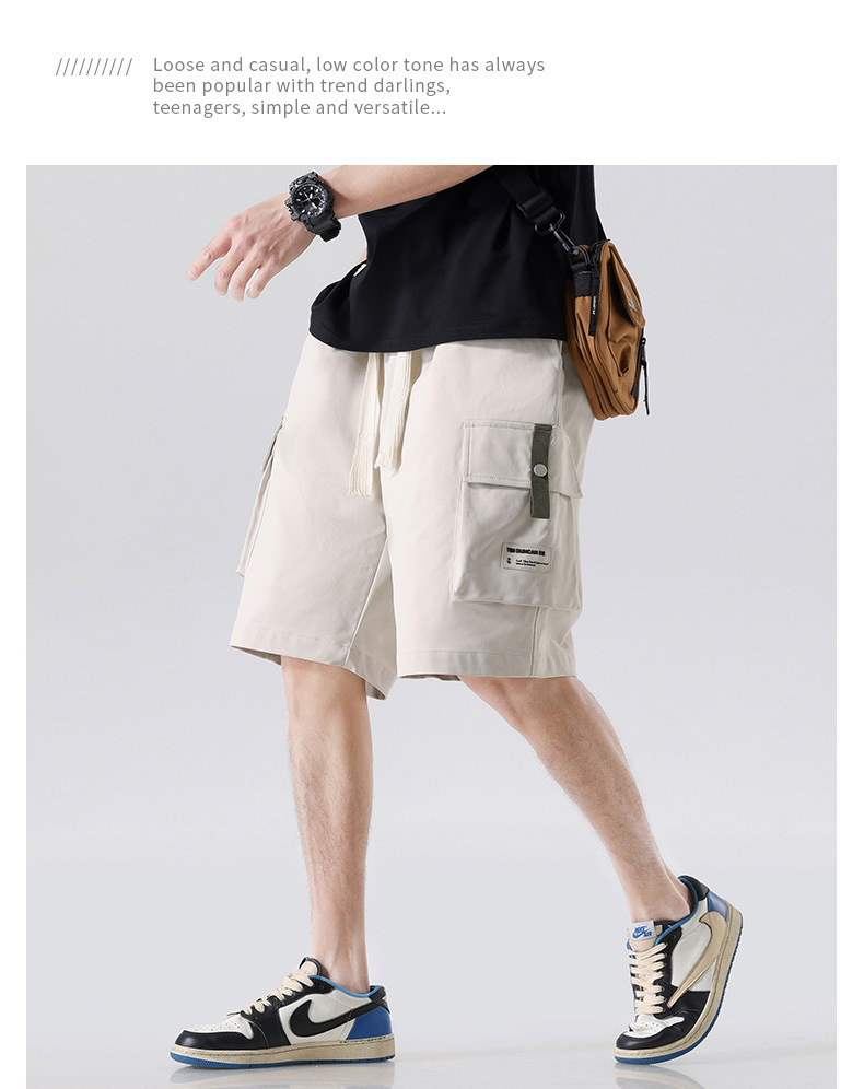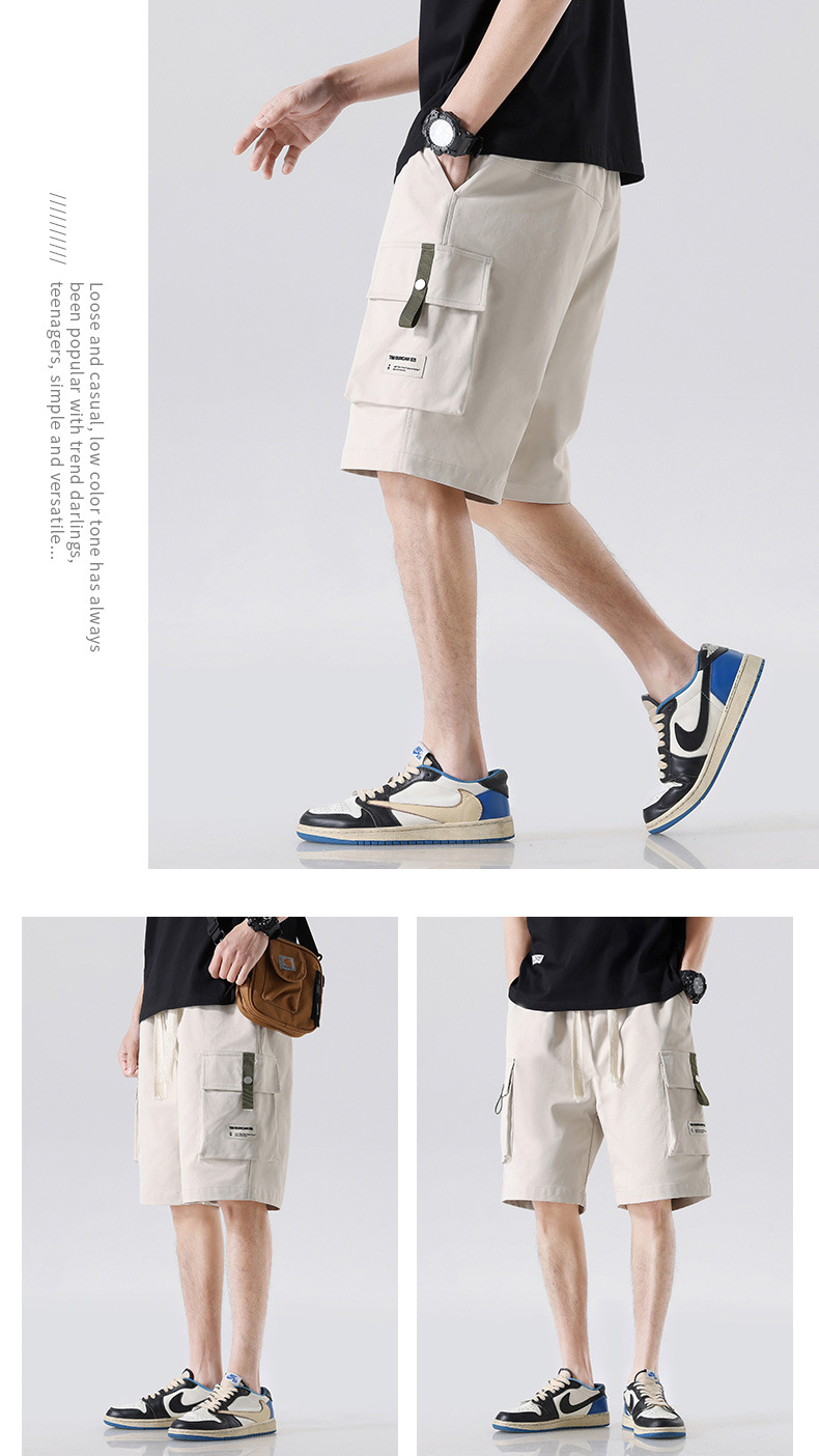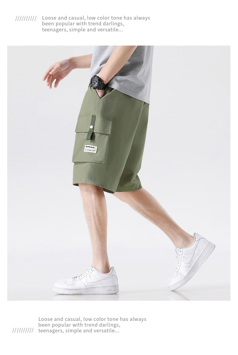 夏季新款男士韩版立体多口袋车标纯色休闲运动健身五分裤情侣短裤
