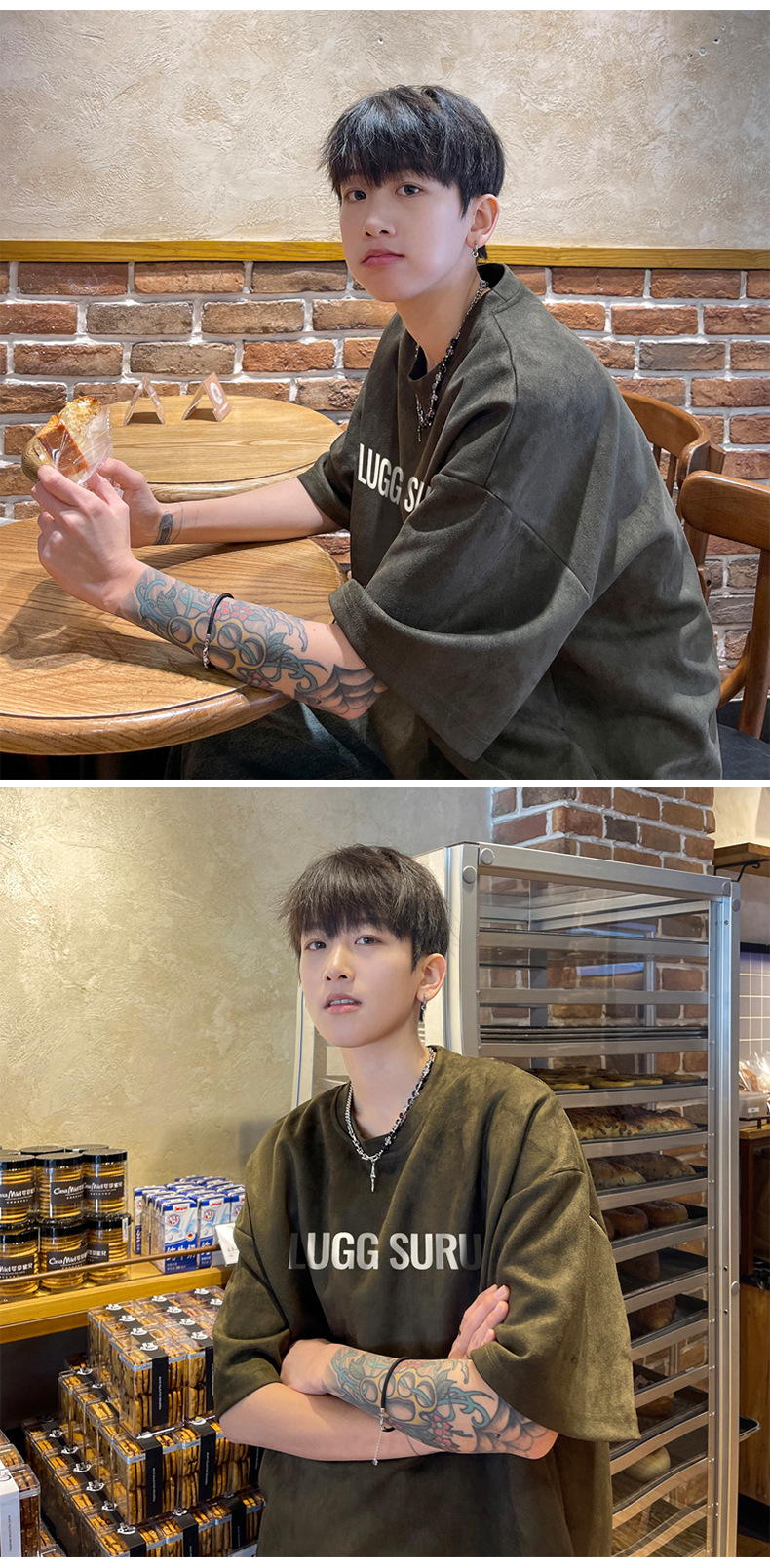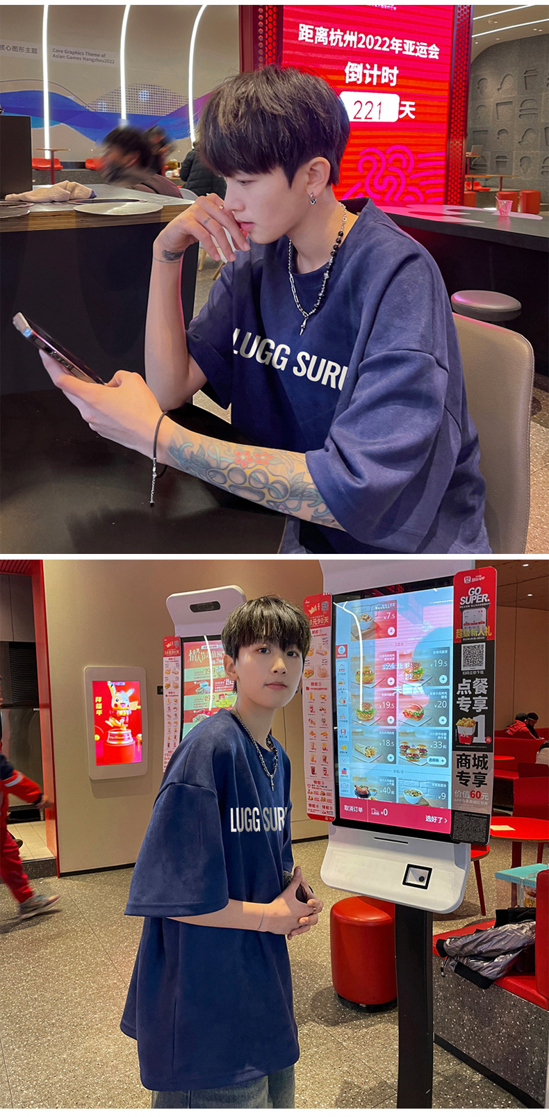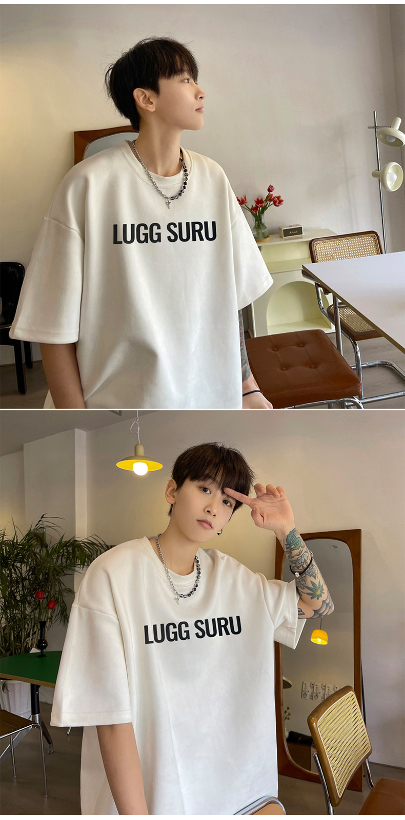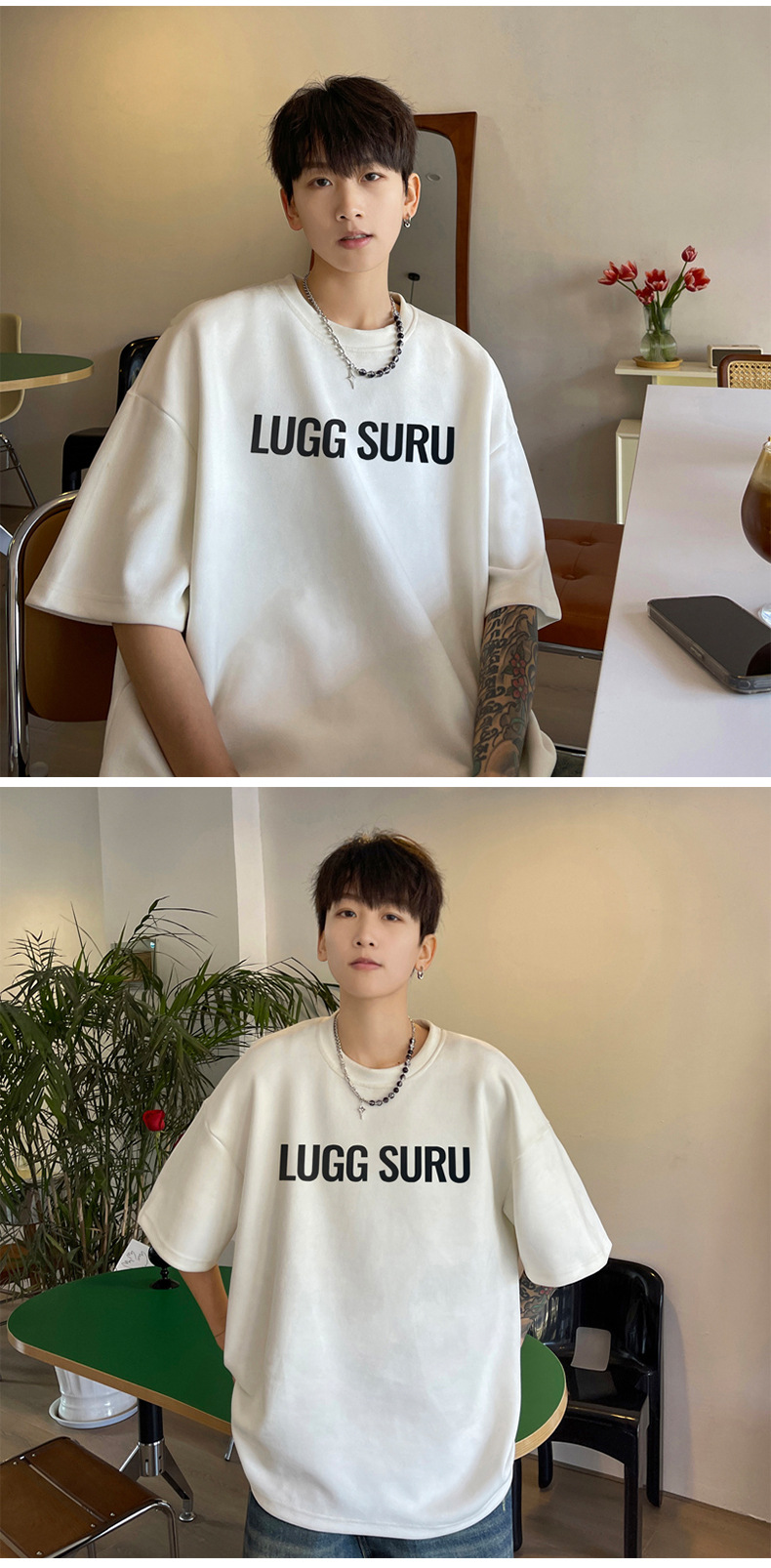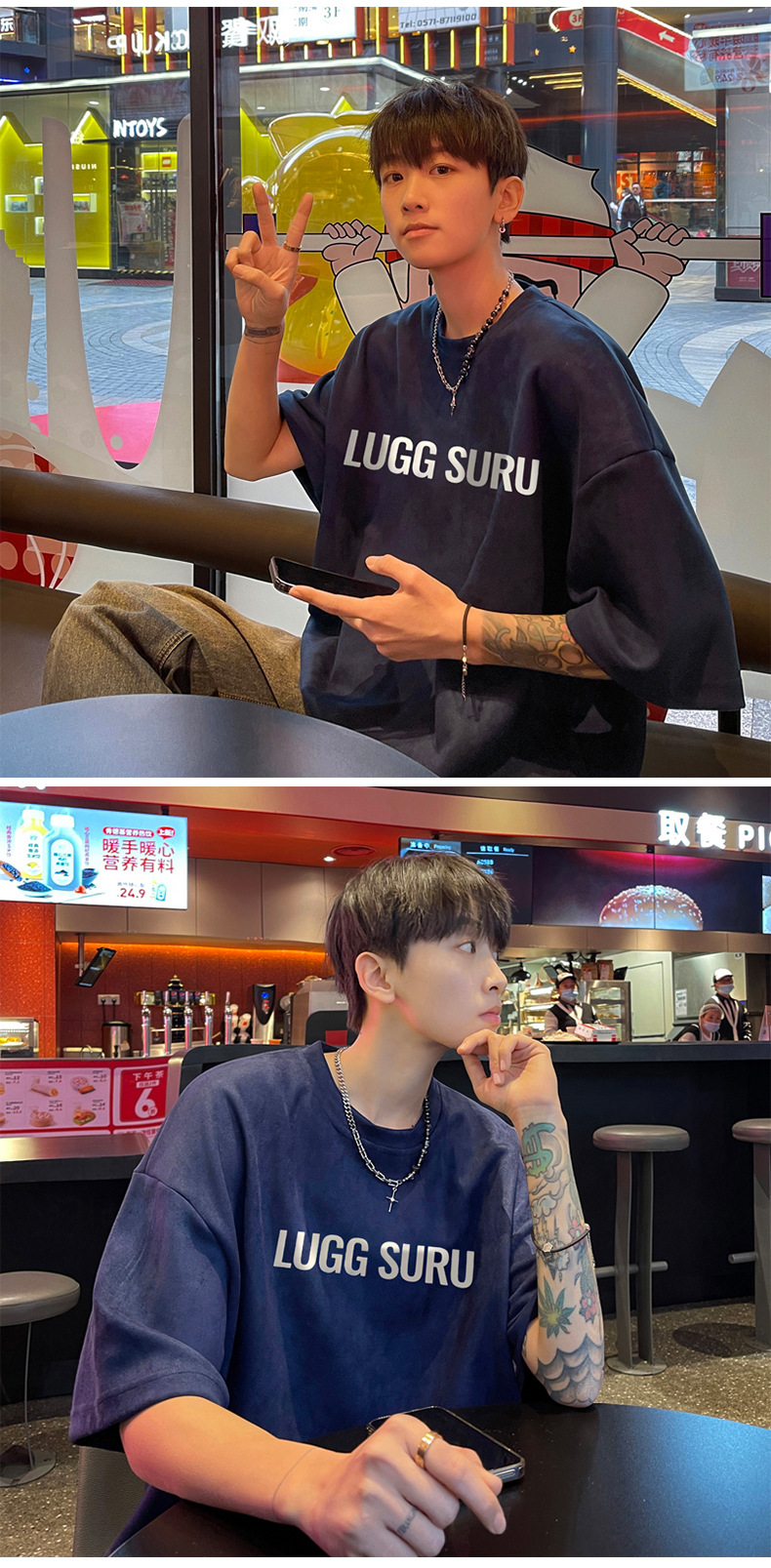 珀斯人青年麂皮绒短袖t恤宽松大码圆领印花打底衫男夏季情侣上衣
