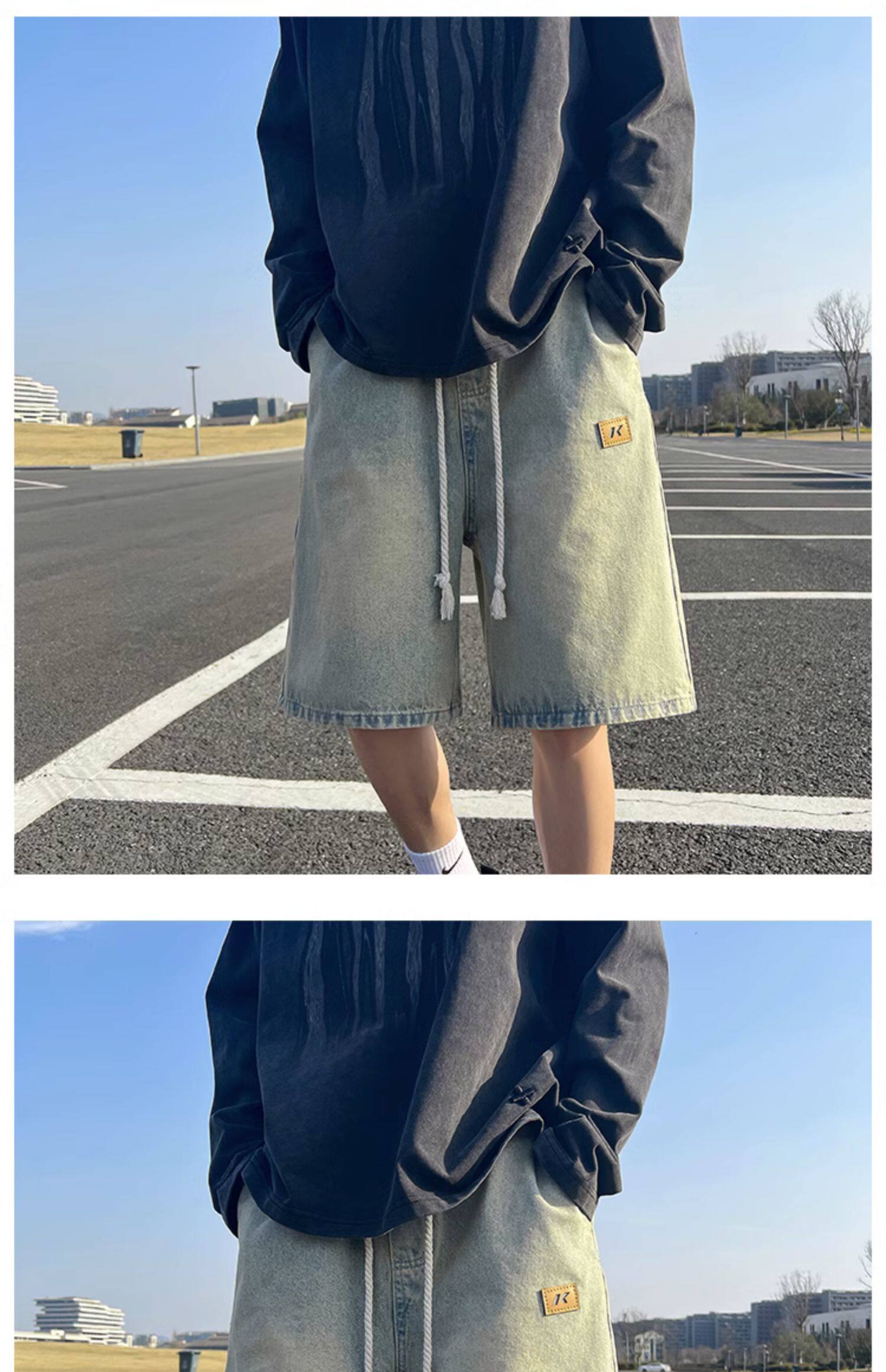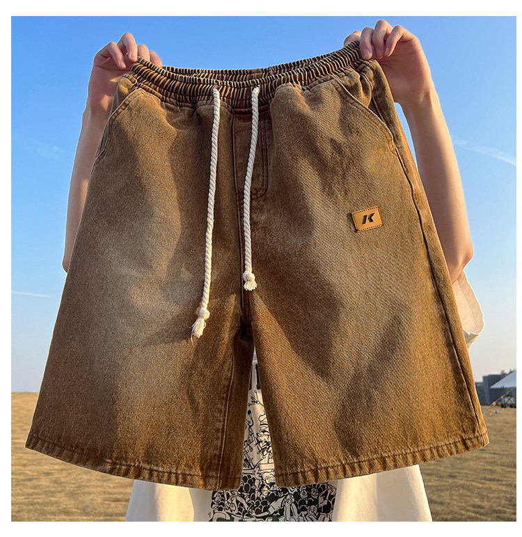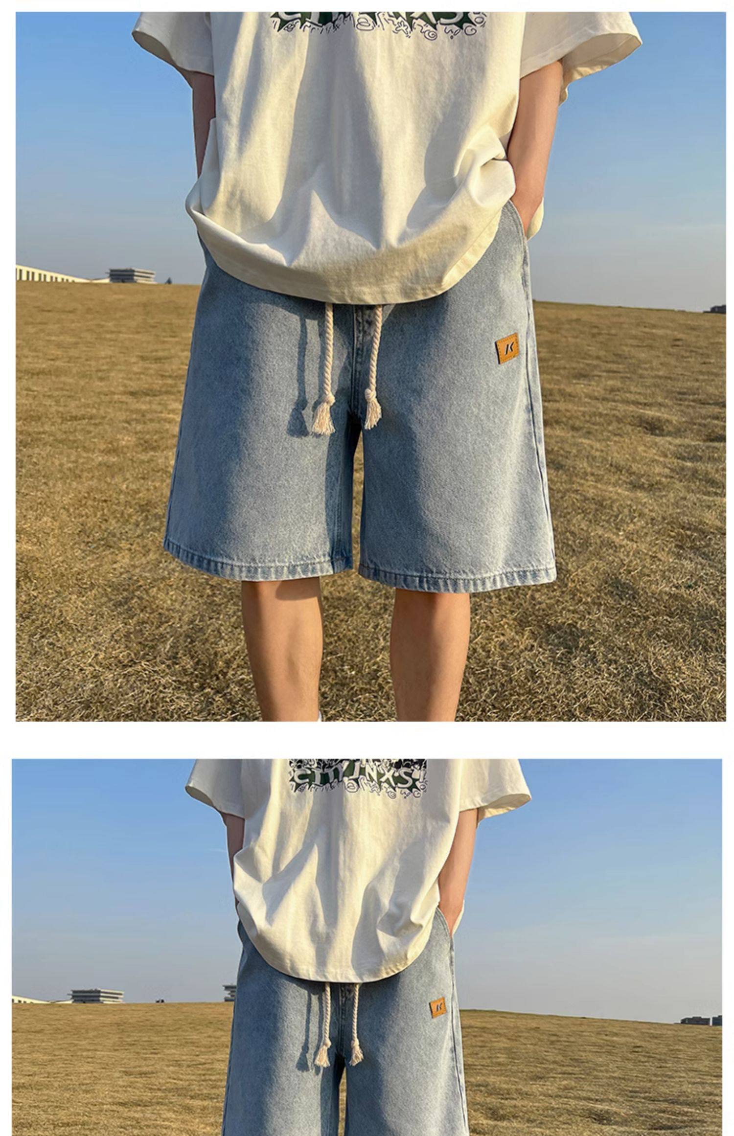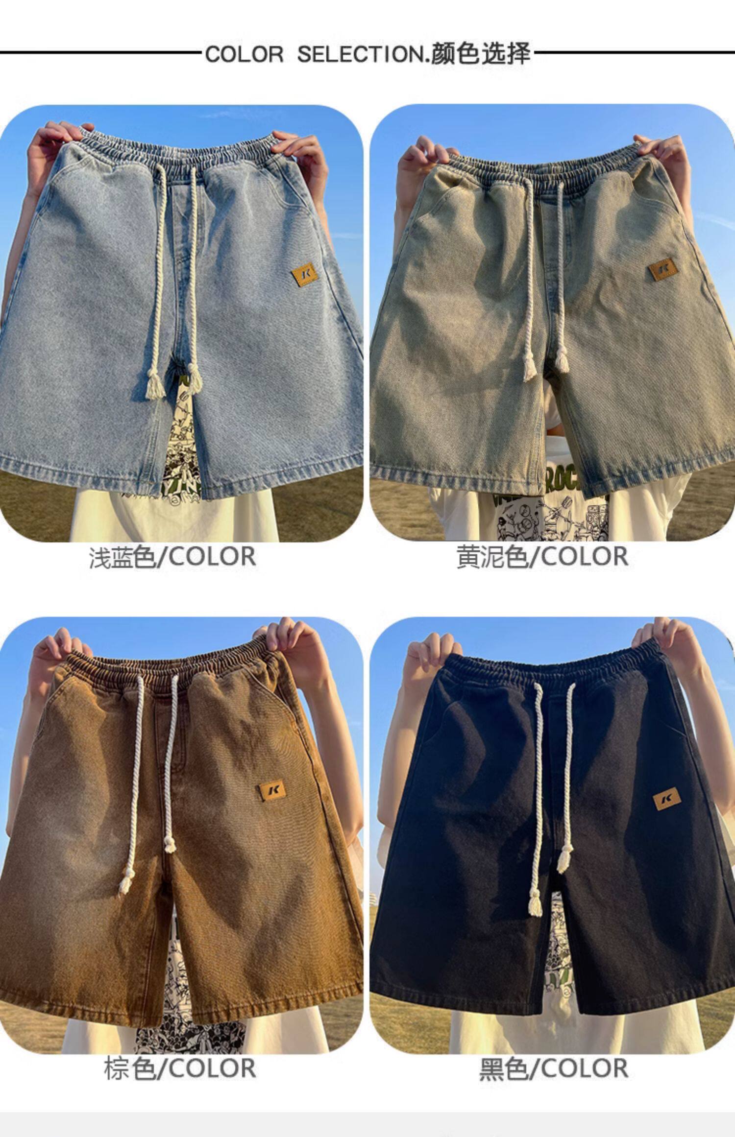 牛仔短裤男士夏季薄款潮牌宽松大码休闲中裤男生美式五分裤子男款