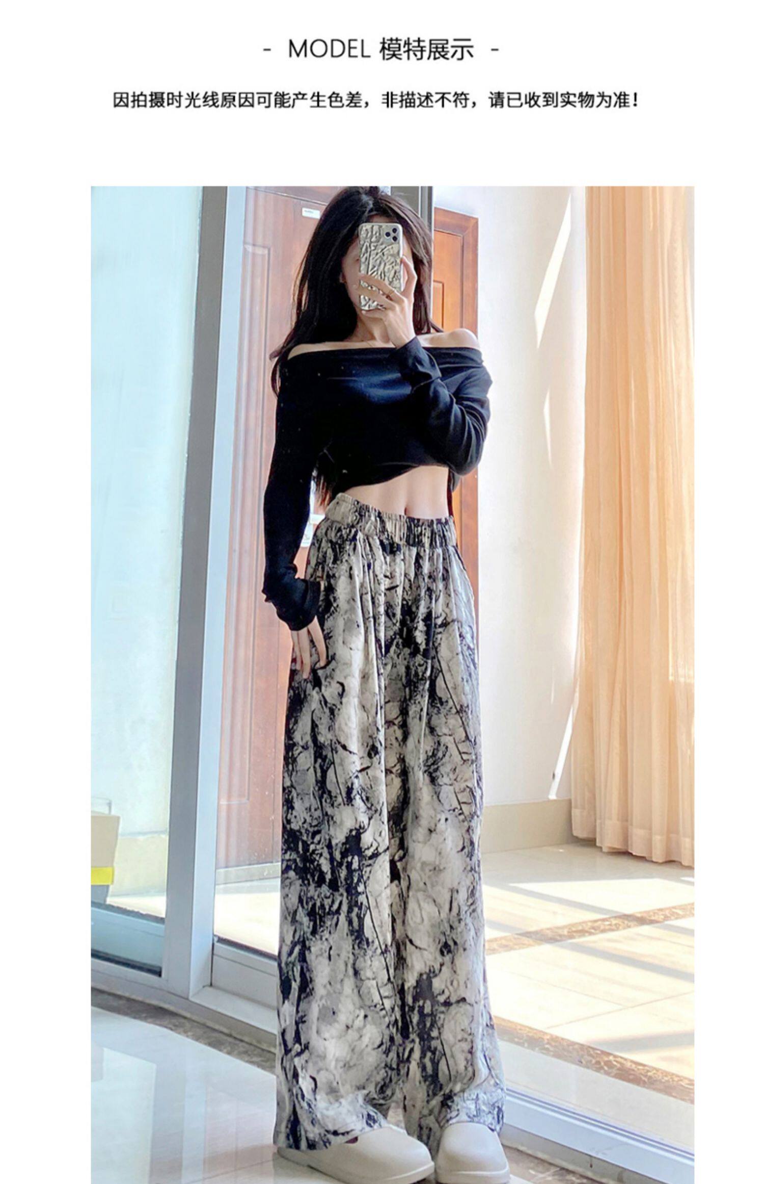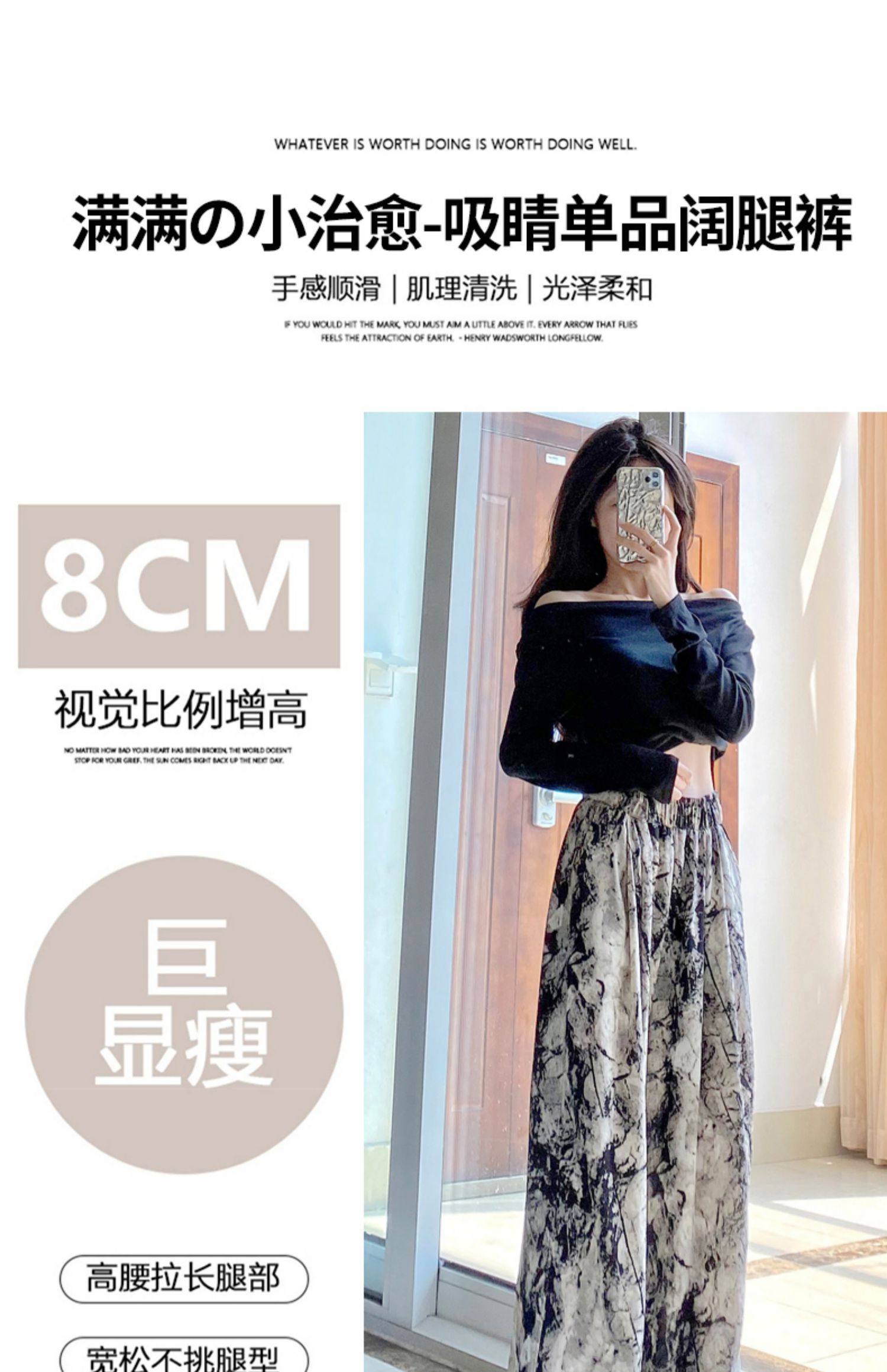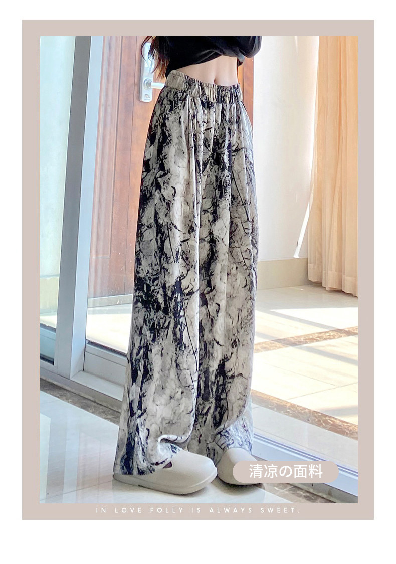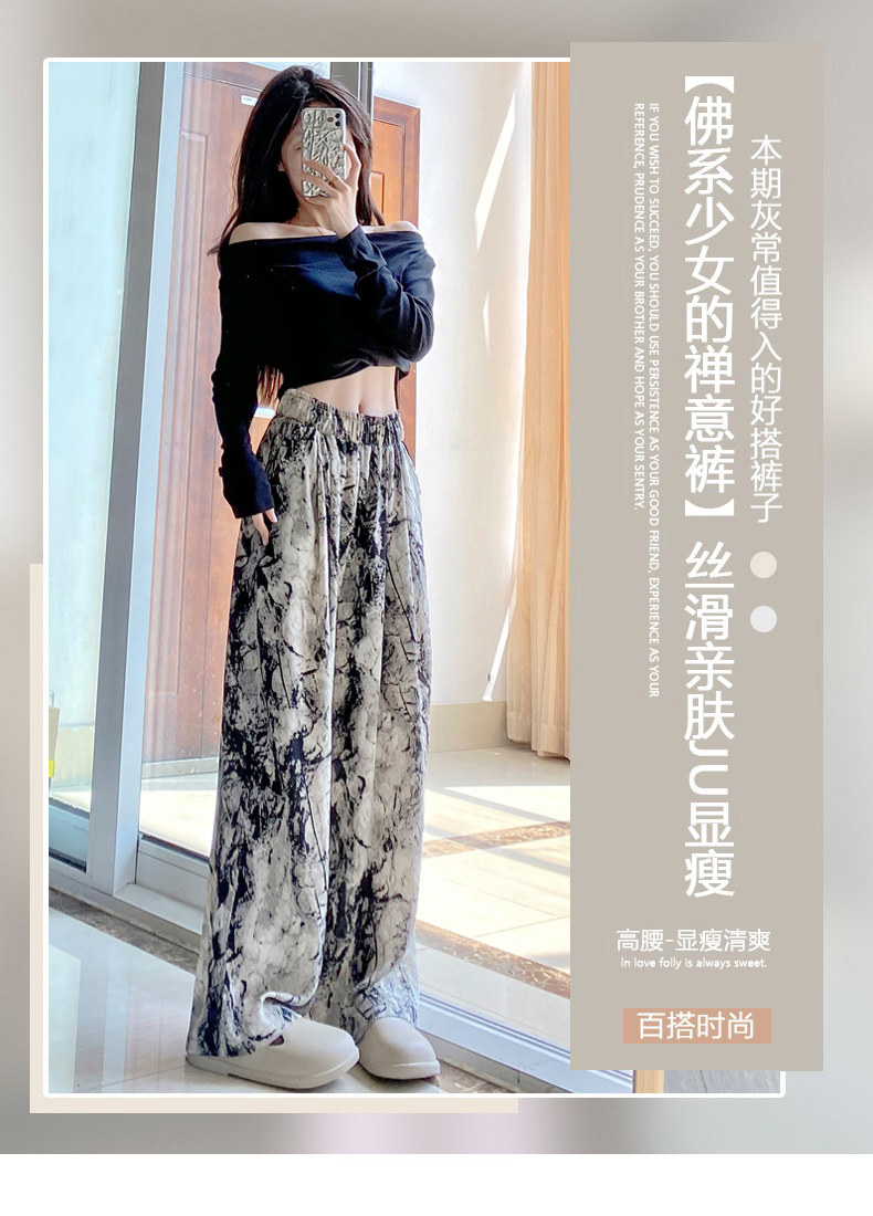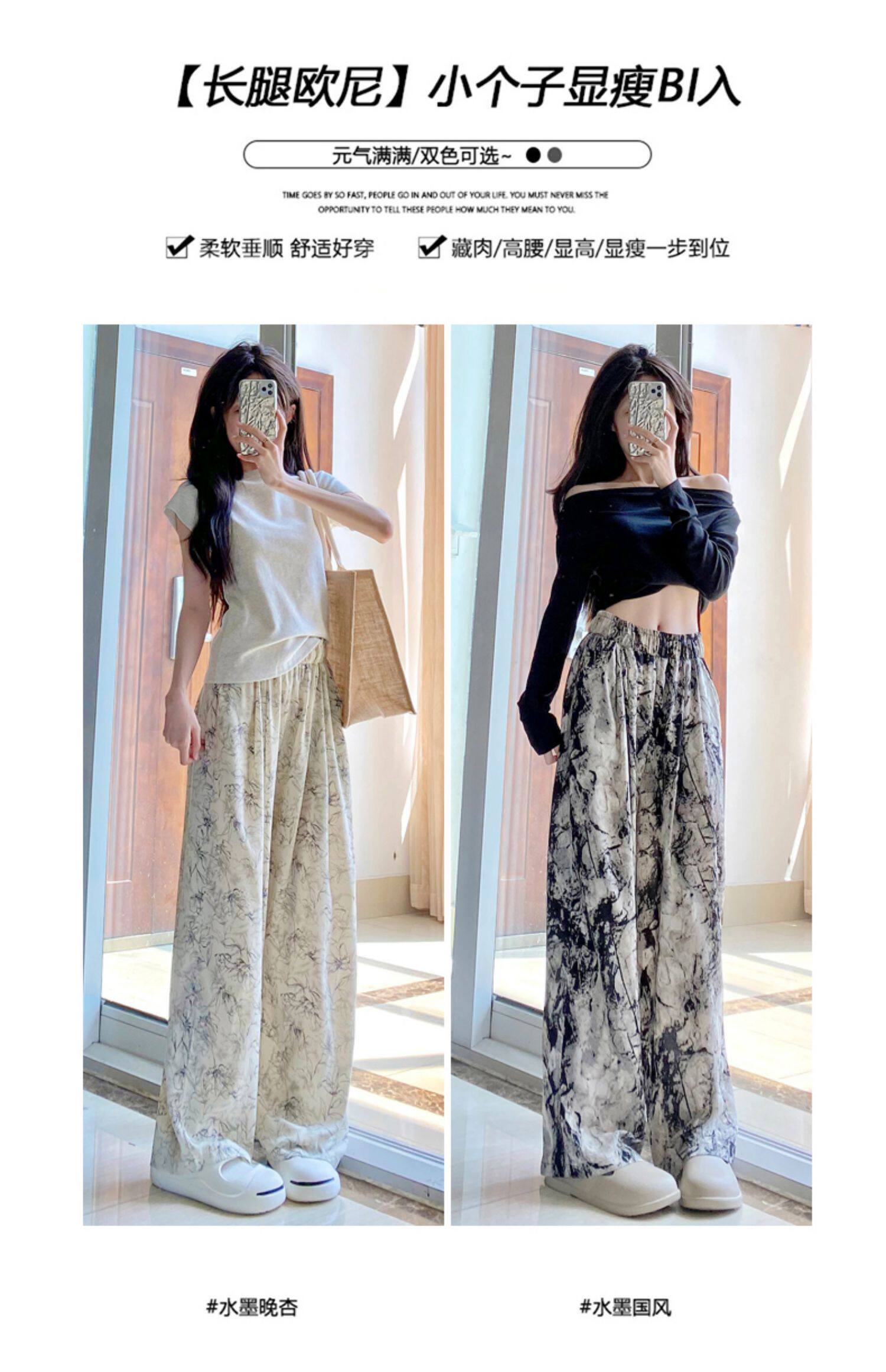 雪纺冰丝阔腿裤女夏季高腰显瘦慵懒休闲垂感扎染水墨国风防蚊防晒