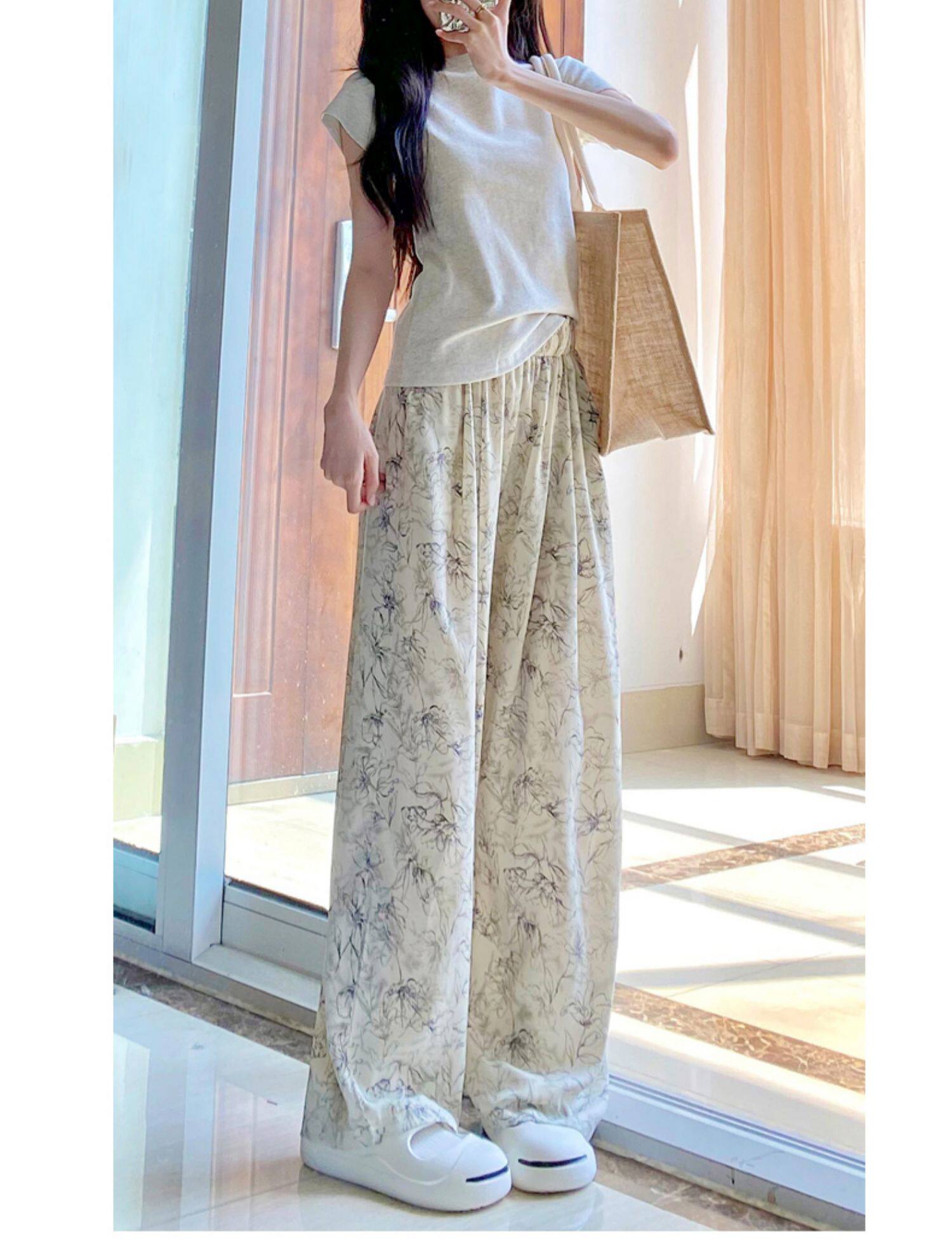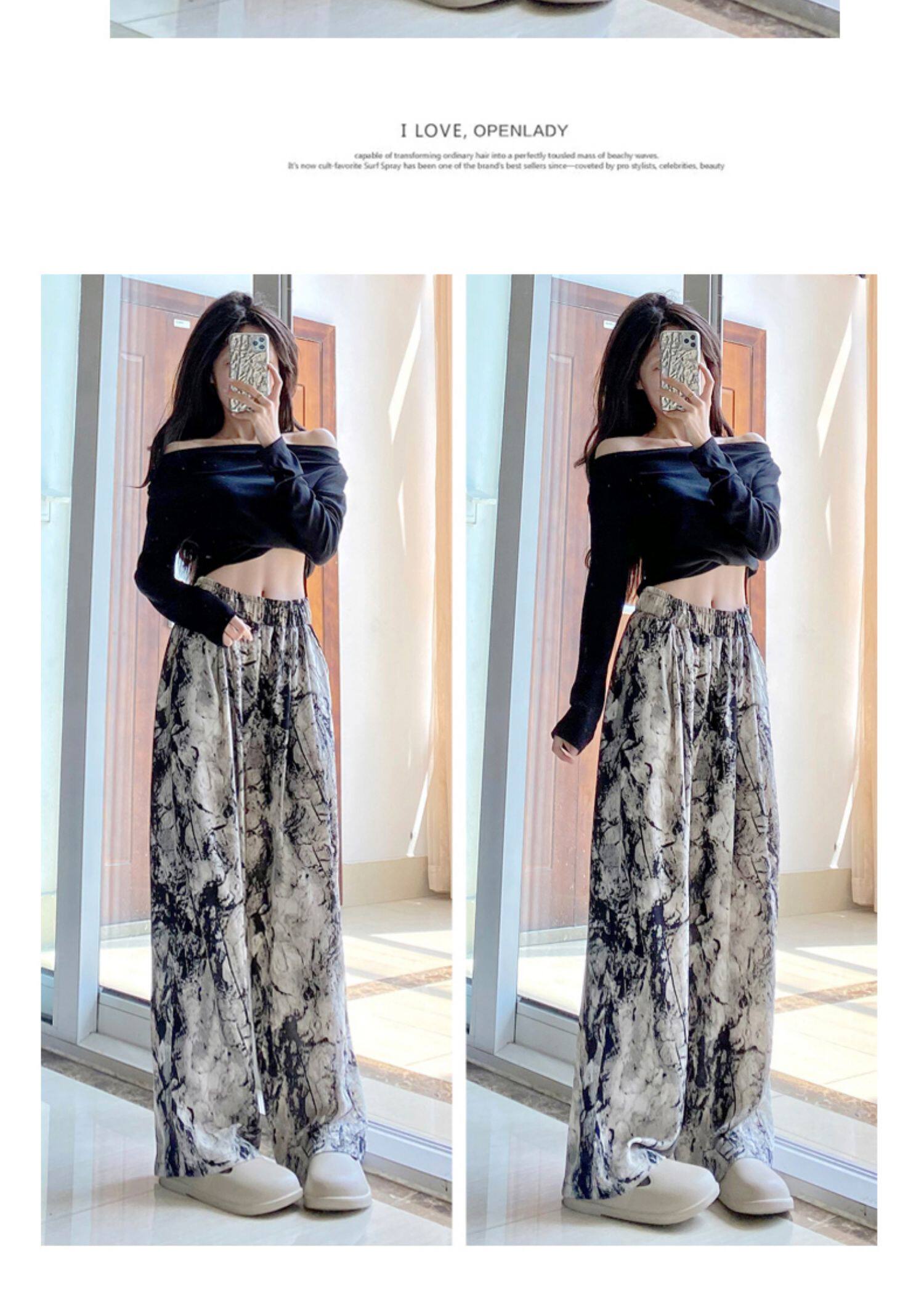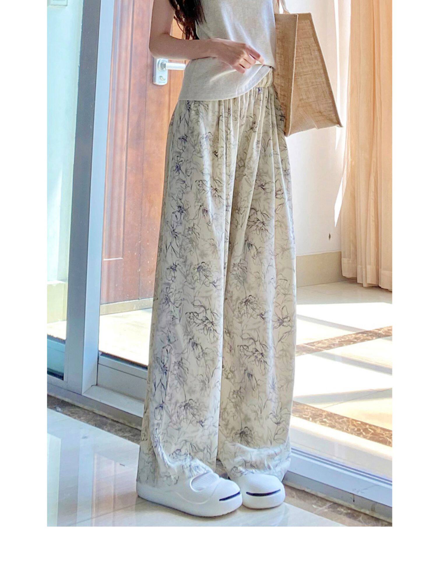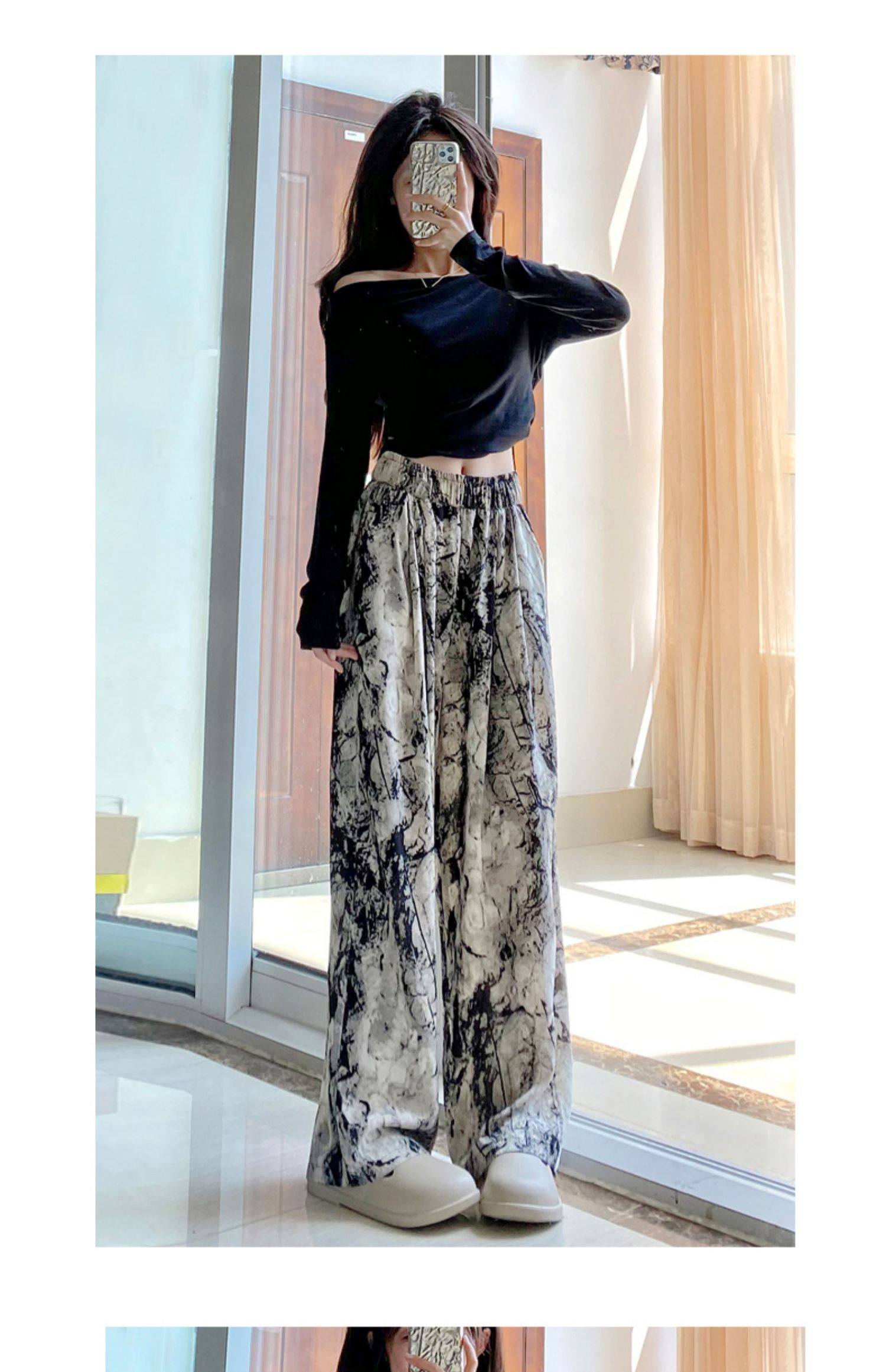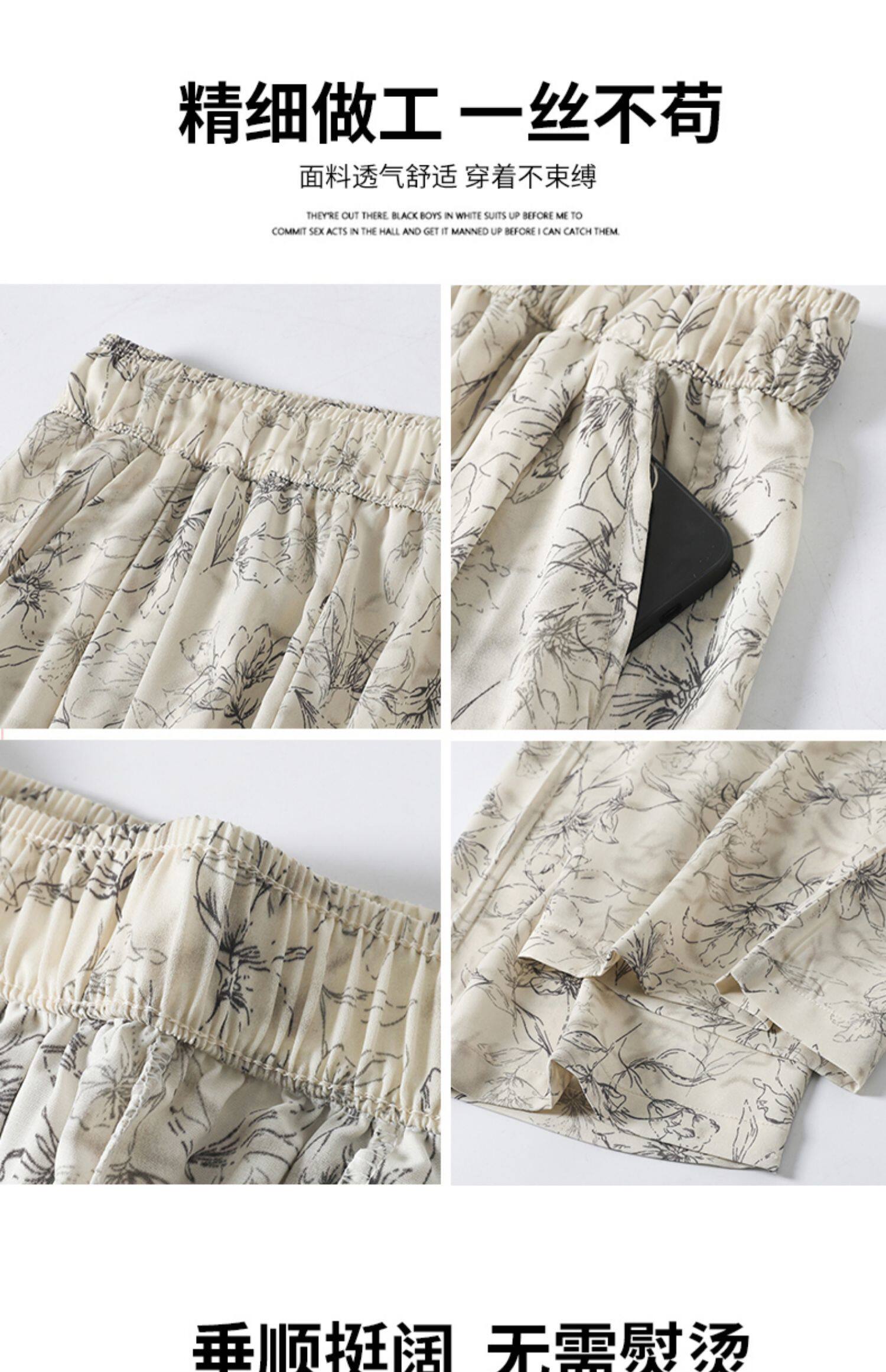 雪纺冰丝阔腿裤女夏季高腰显瘦慵懒休闲垂感扎染水墨国风防蚊防晒