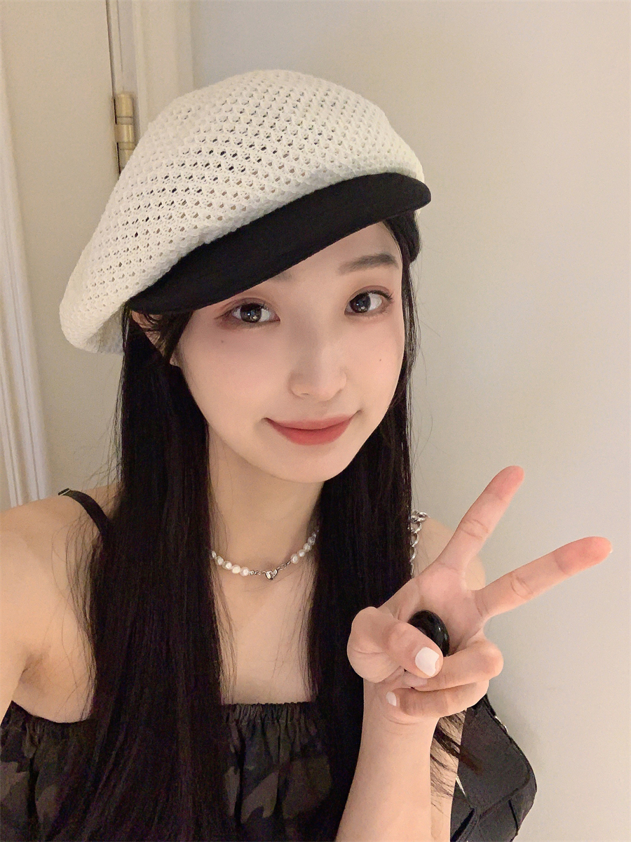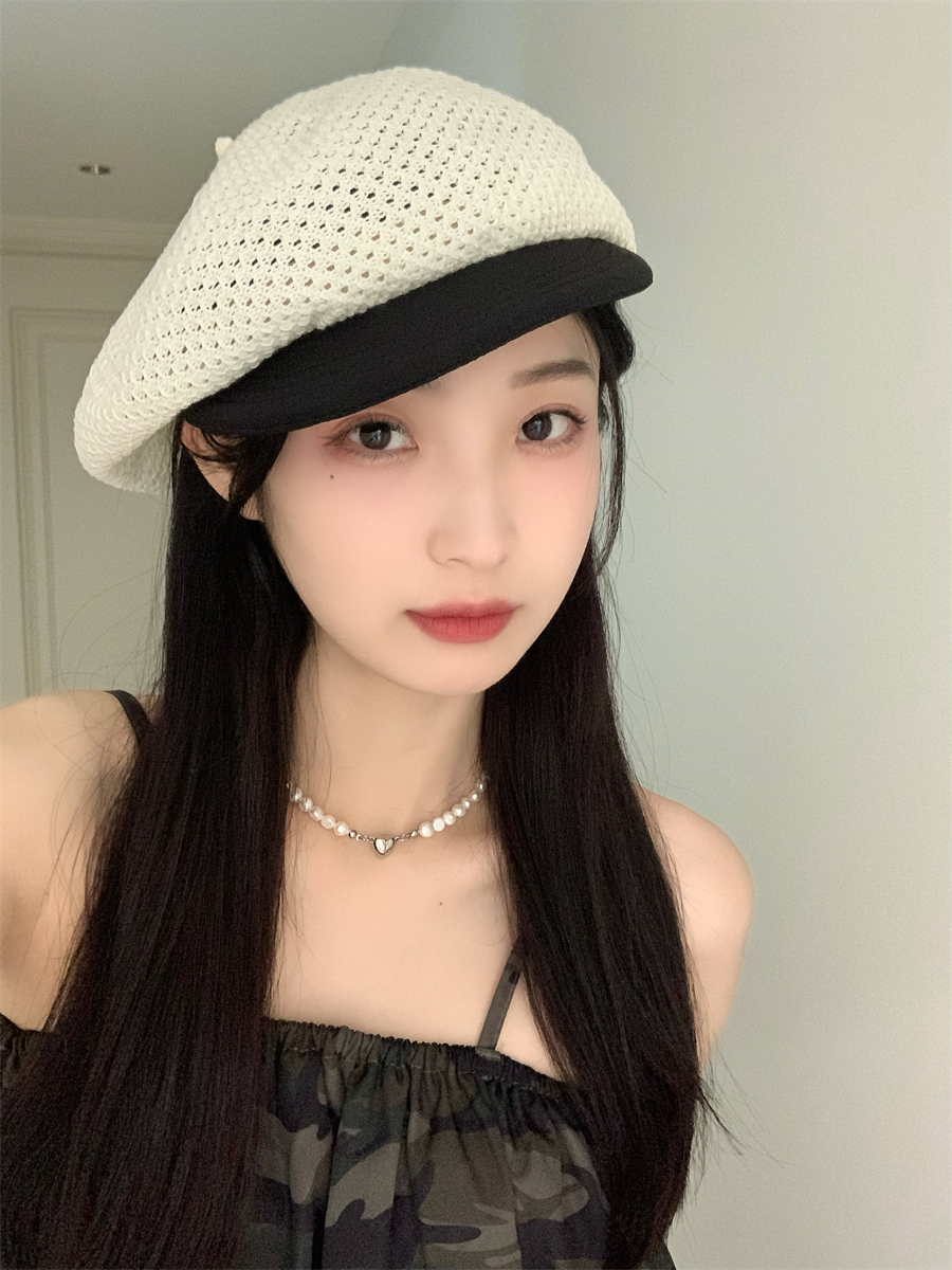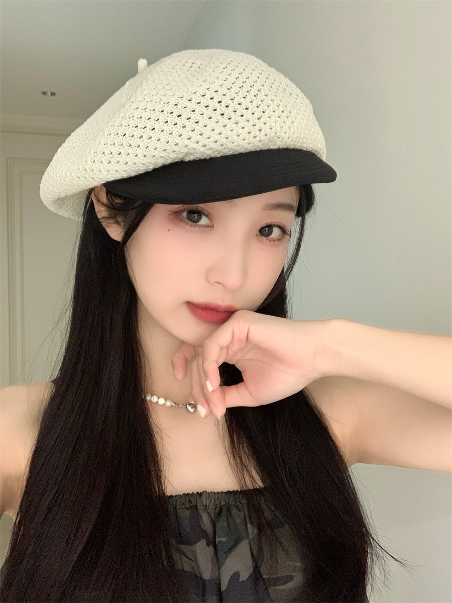 气质调性~夏季新款镂空透气贝雷帽女韩版百搭甜美复古时尚八角帽