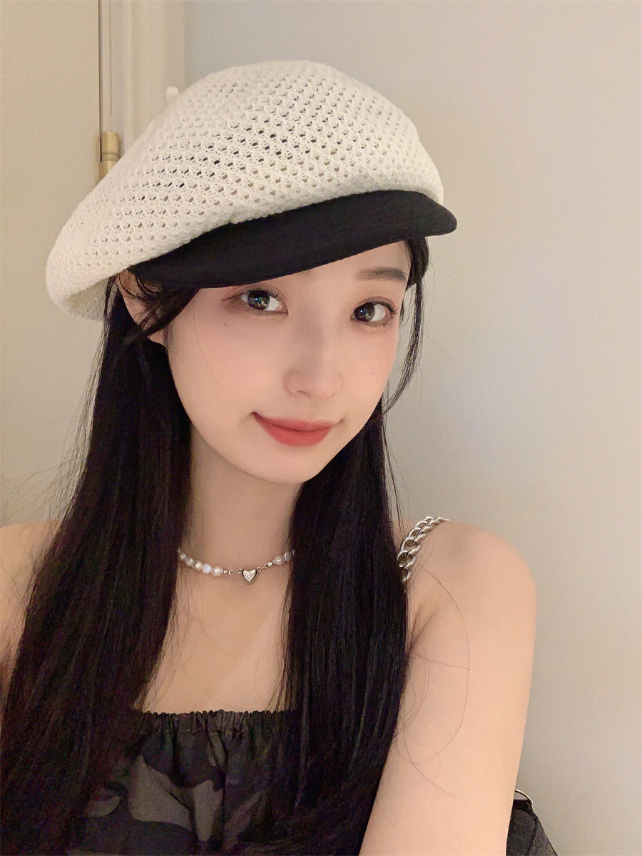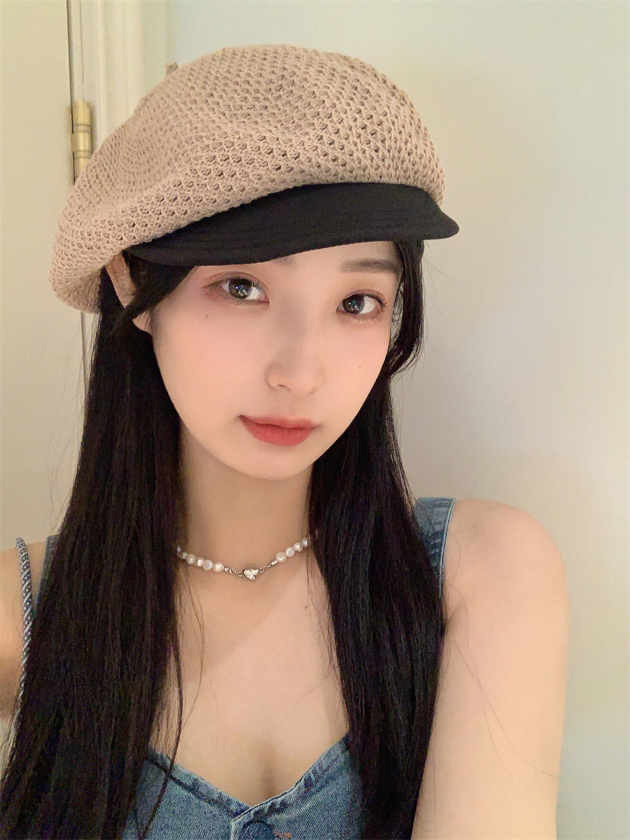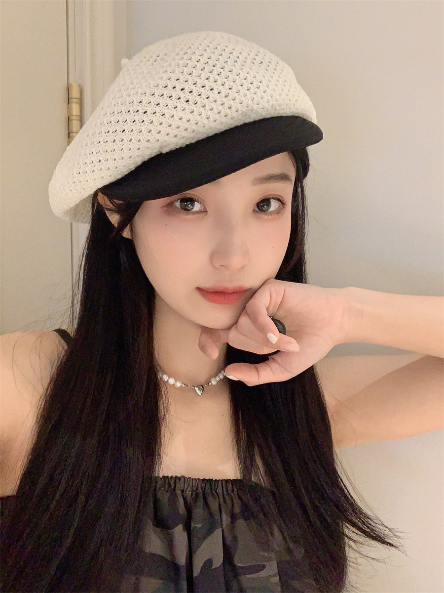 气质调性~夏季新款镂空透气贝雷帽女韩版百搭甜美复古时尚八角帽