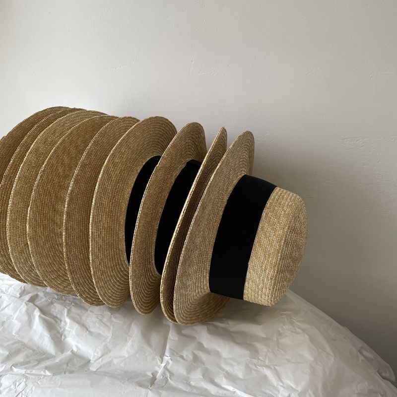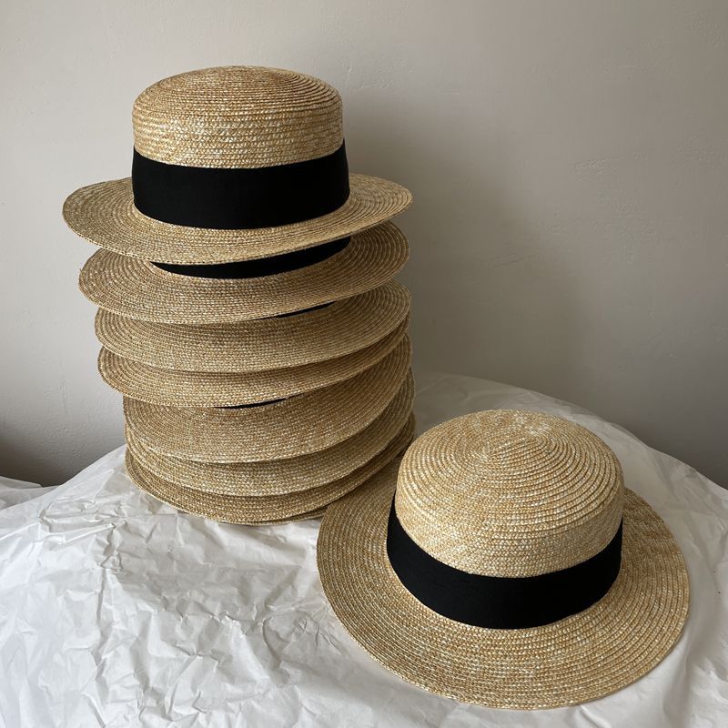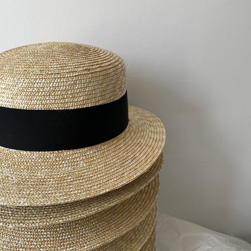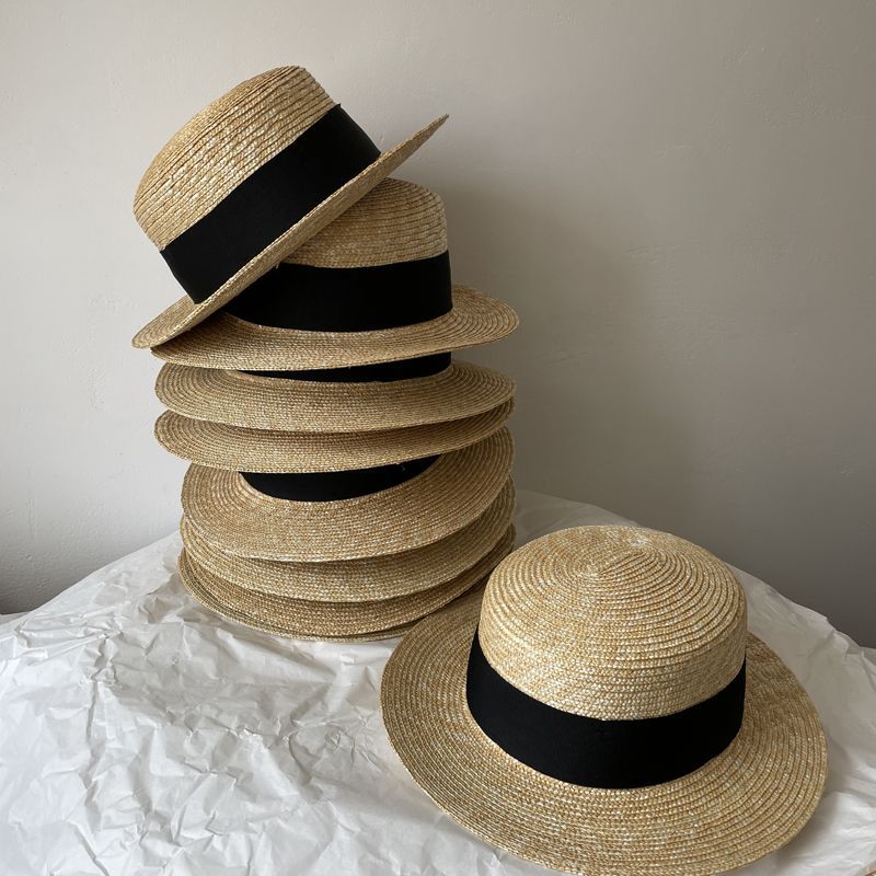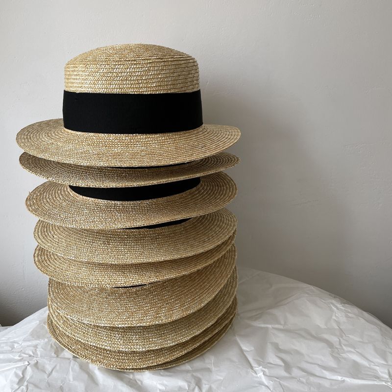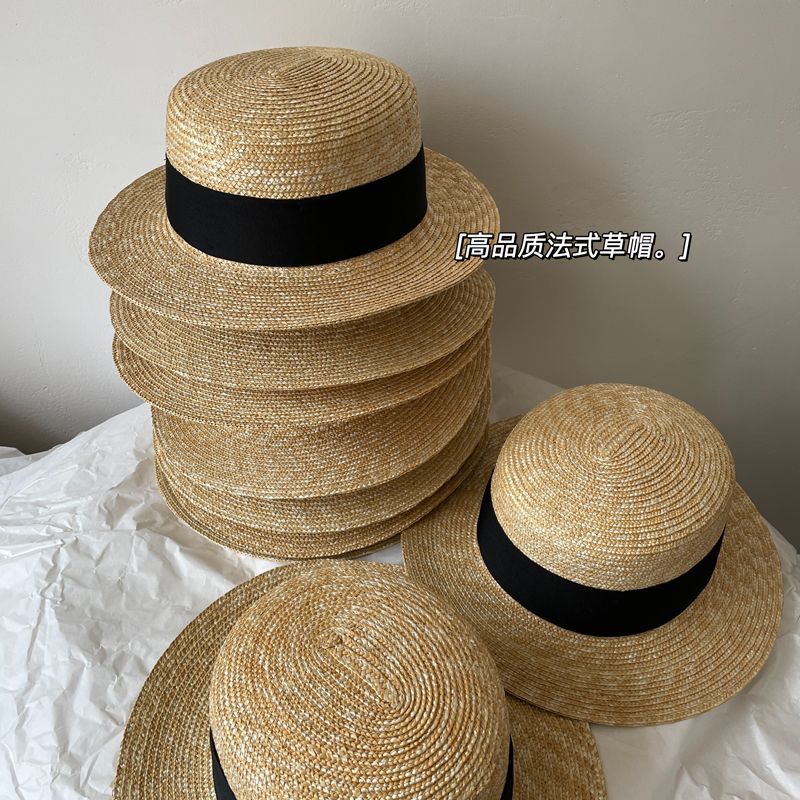 大头围法式礼帽高品质麦秆平沿帽女夏季出游防晒遮阳帽平顶帽显瘦