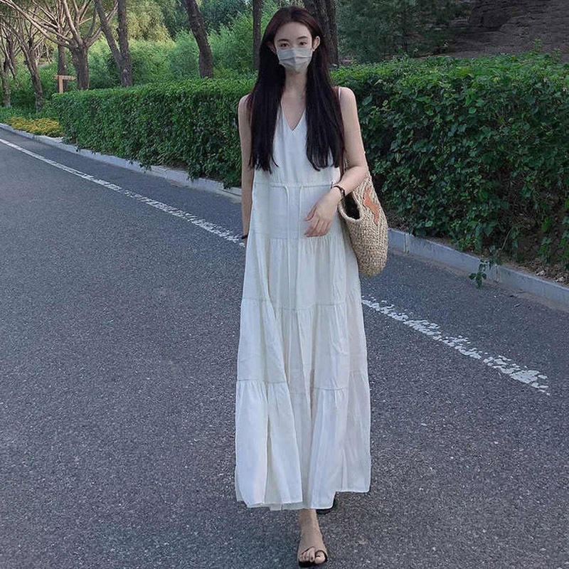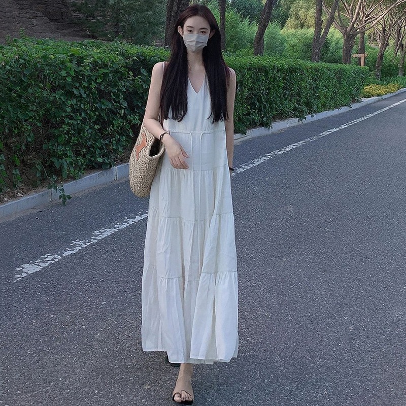 女装法式白色吊带裙海边连衣裙女2023夏季新款裙子甜美气质长裙子