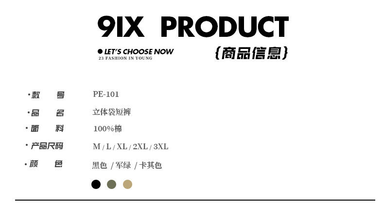 9IX男装/cityboy日系大口袋中裤宽松轻户外机能夏季短裤男